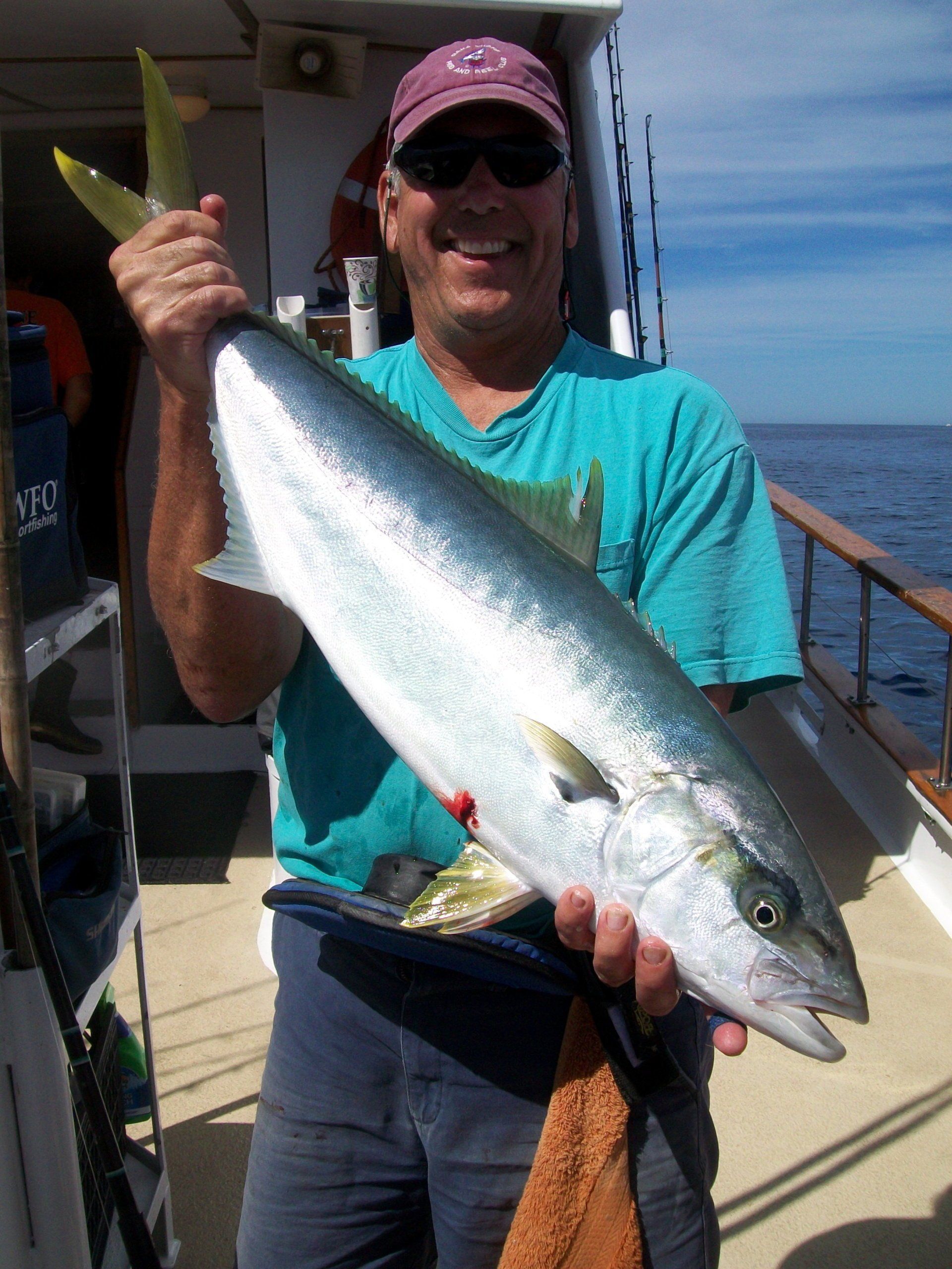 We trolled all the way to San Clemente Island. At about 1400 hours, we had a kelp paddy stop which yielded a few smaller YT. At 3:30, we had another paddy stop which brought a nice YFT on board and some smaller YT.