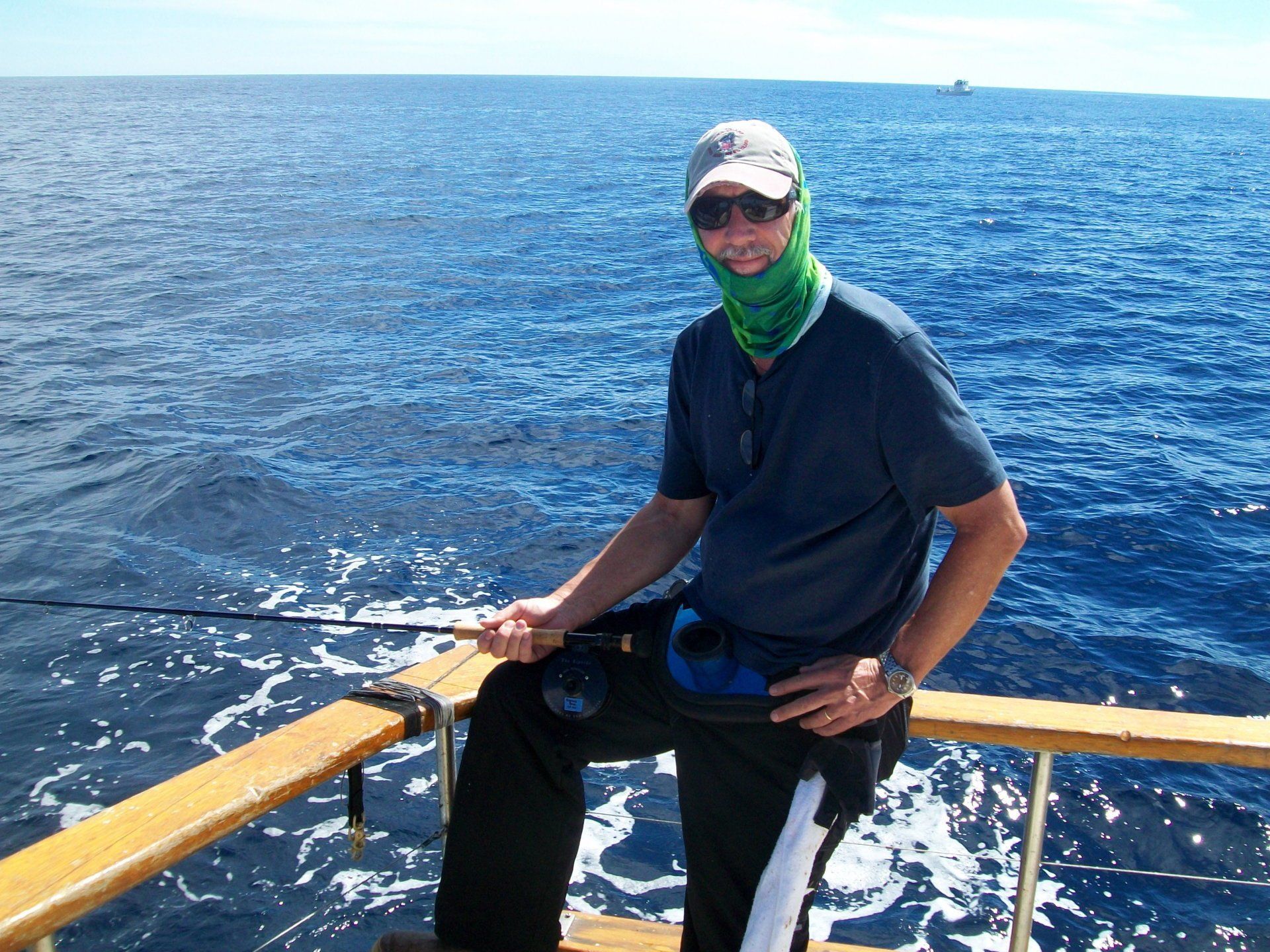 We left the bait receiver at about 10:30. The captain was Bruce Smith, second captain was Cha Chi, the cook was Joel and the deck crew was JB and Mike. After gathering in the galley for the usual pre-trip meeting, it was announced that we would head to Tanner Bank, about 10 hours drive away. This seemed to be the best option for larger BFT and YT. The other options consisted of looking for YFT on paddies along the way in warmer waters and possibly going into SCI on Saturday for YT and Calicos. The weather was downright balmy as we cleared the headlands and promised to be a mild warm weekend on the water, even as far out as we were headed.