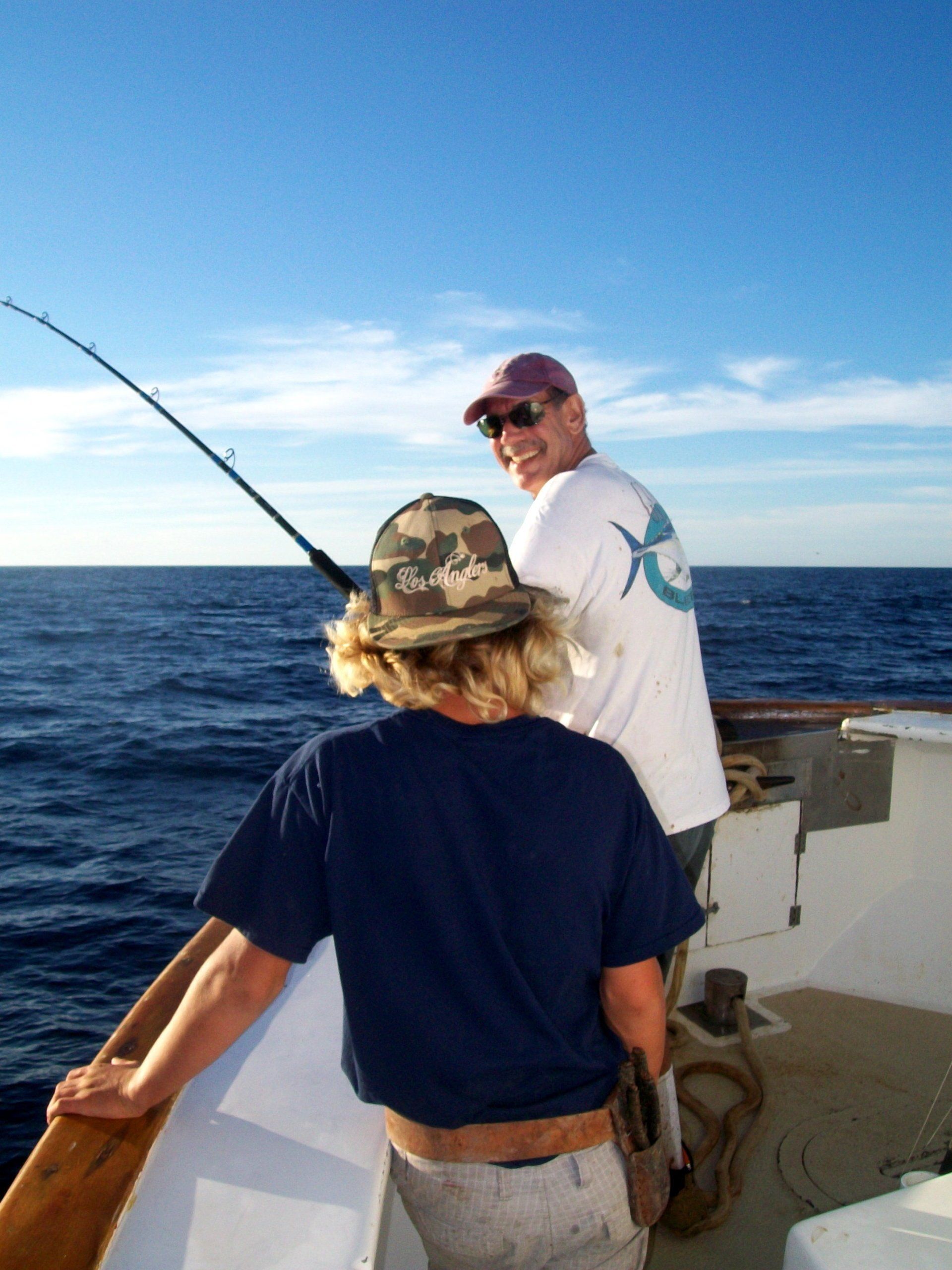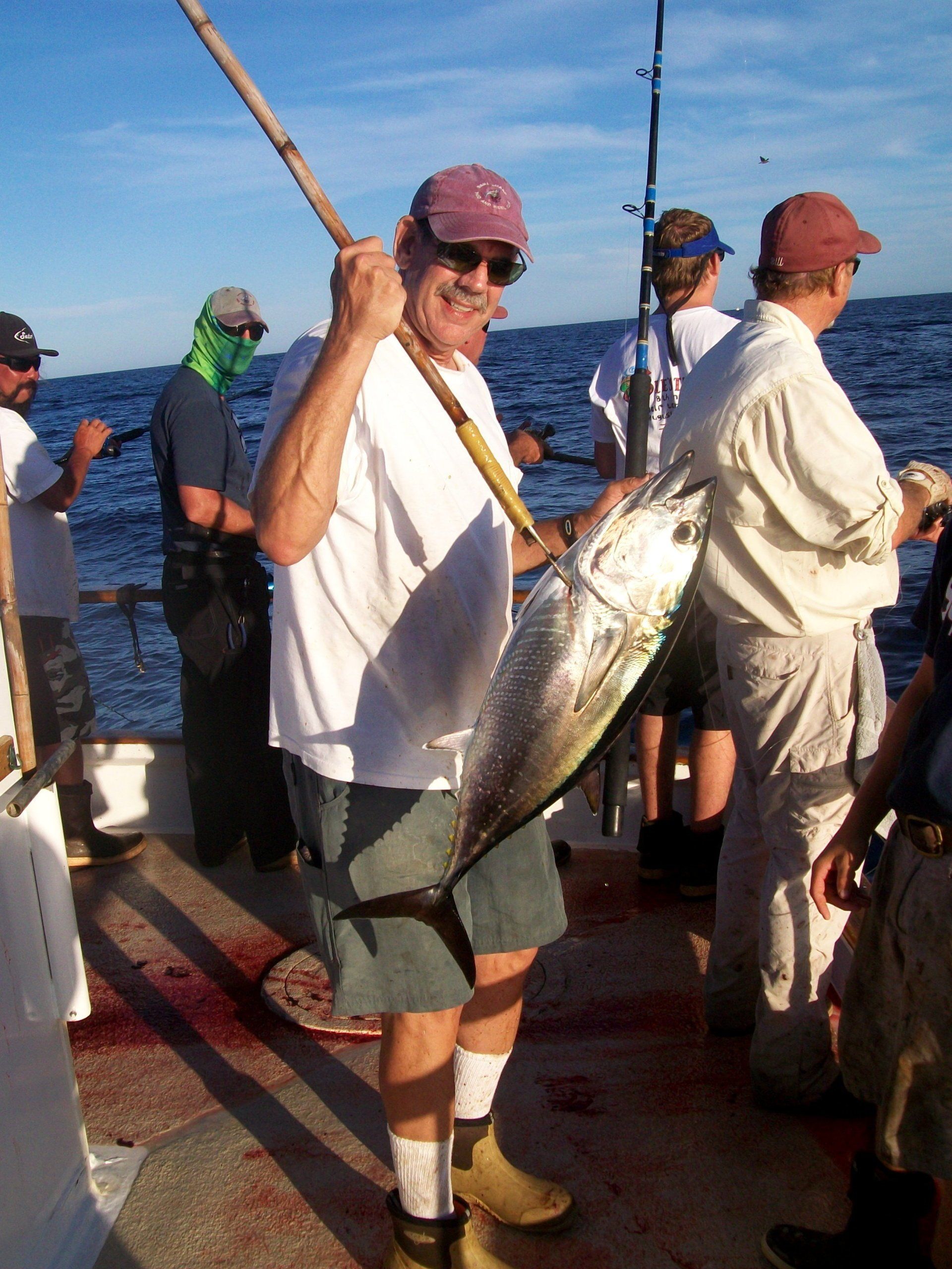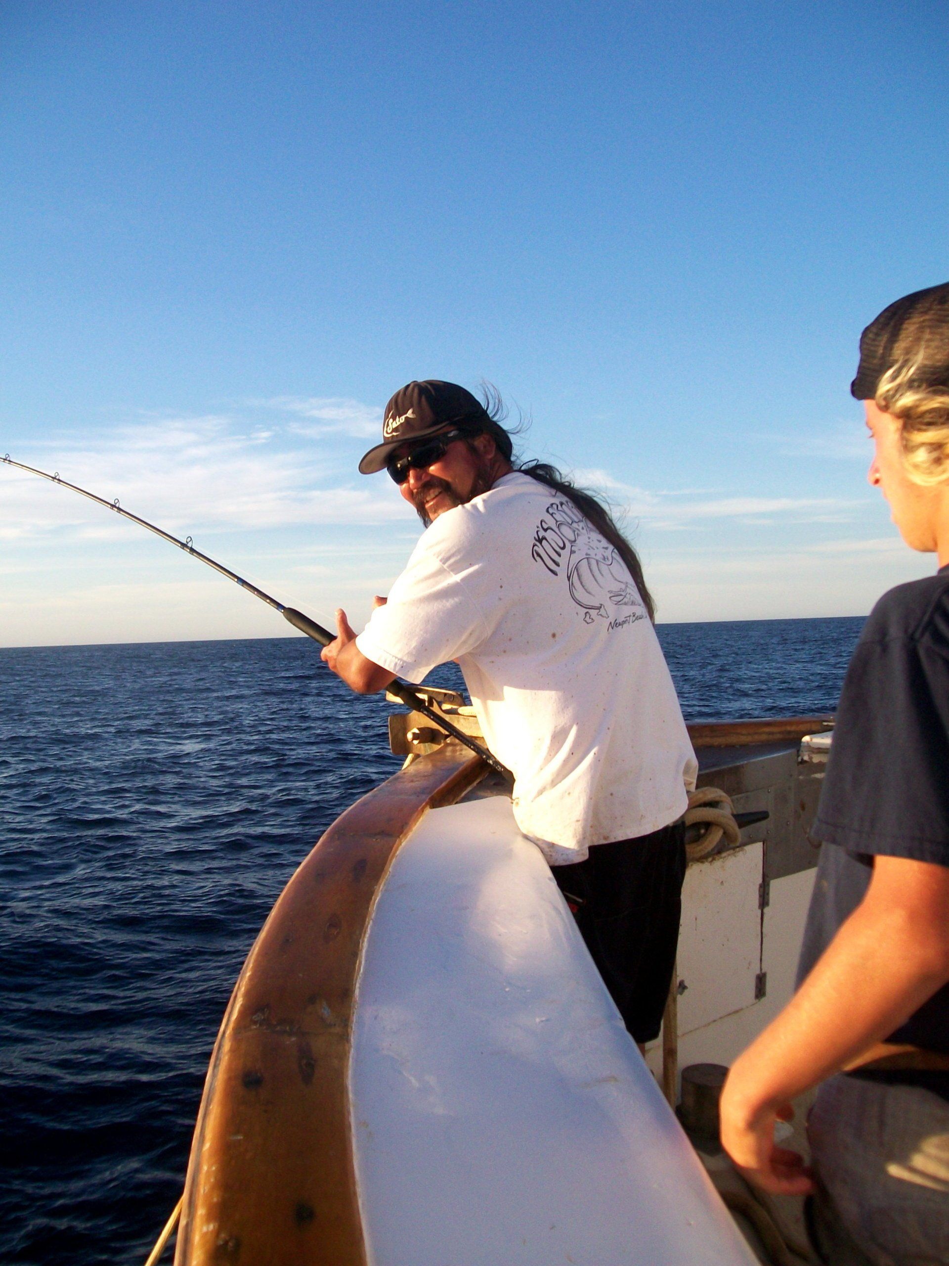 At about 0400, Luke met with some resistance trying to roust everyone from their bunks to again try to catch mackerel. The bait turned out to be more of the smaller variety in the 4-6 inch range. It was decided to put as much of it in the bait tanks as possible to use as chum and possibly bait for calicos. This could save the sardines for our primary bait. After a few hours of bait catching, we had several hundred mackerel. Special thanks to Bill and Murphy who sat on the bait tanks and unhooked bait until their hands hurt.