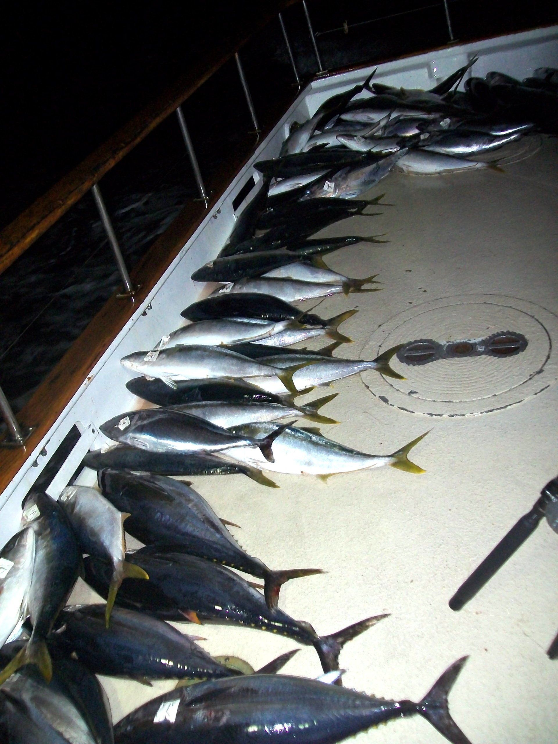 One late jig strike in particular yielded a few YFT and some YT. It was made interesting by one of the trollers forgetting he was trolling, forgetting to wind in his outfit and throwing in a bait on the slide. This caused a fairly large fishing line macramé and a lot of choice language. In that fisherman’s best interests, it was decided not to name him in this gazette, but his initials are Andy Woodfill. After deliberation of the club leadership, they meted out a punishment that landed Andy in “trolling jail”. He seemed to take his punishment in stride and was even later seen sleeping through the next mandatory assigned trolling rotation.