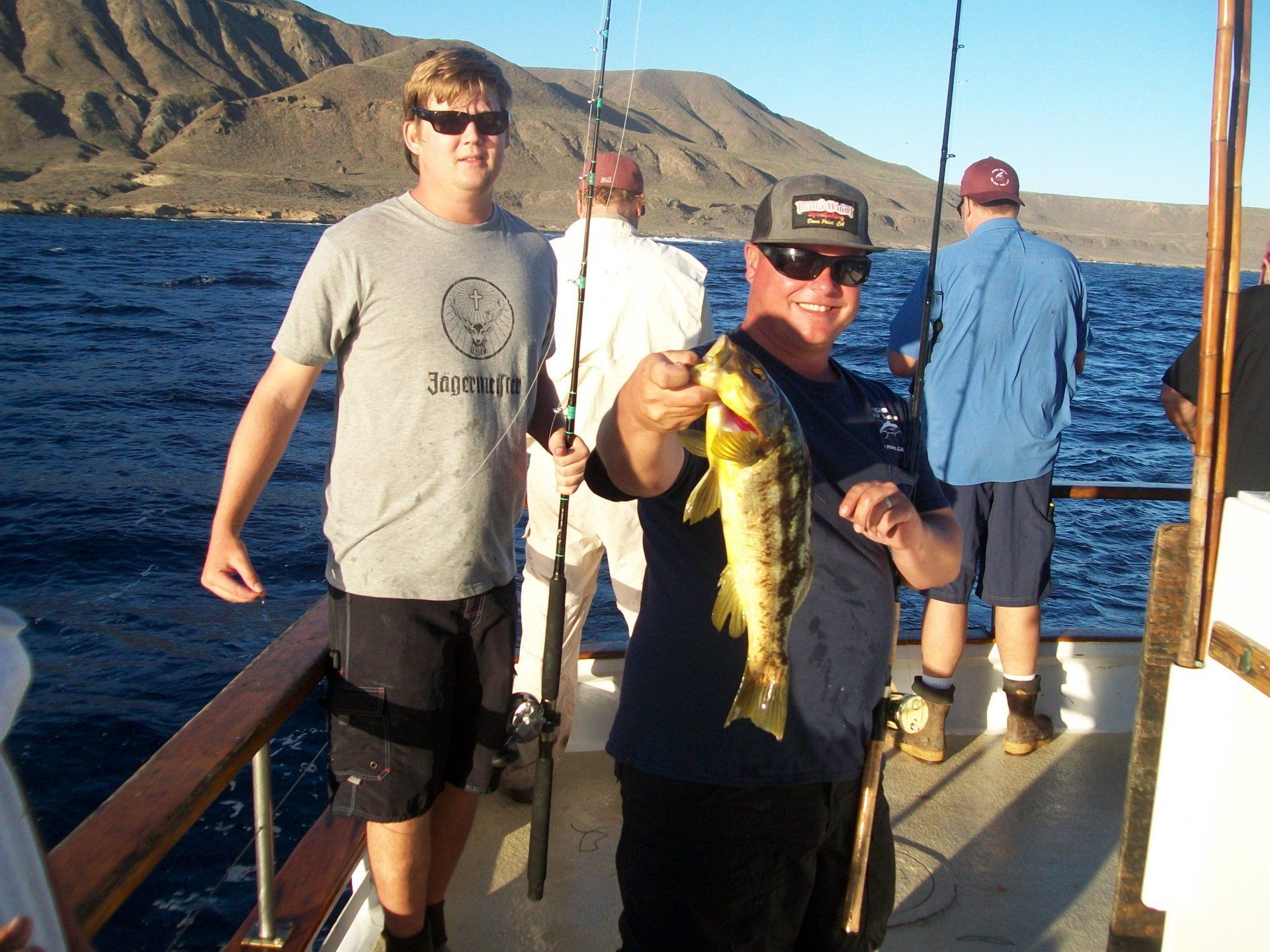 We arrived at SCI at shortly after 1700 and began to fish for our club’s favorite fish the Calico Bass. We anchored inshore and used sardines and those smaller mackerel as baits. We found an incredible bite on the Calicos. The fish were biting fast and furious and many described it as “F’ing Epic”. Yours truly was even hooking them with a surface iron. Most of them were larger than 4 pounds. A couple of those fish were sure to be possible contenders for the Calico trophy. We quit fishing at about 7:30 and sat down for cocktails and dinner. The dinner was something special consisting of prime rib, baked potato, broccoli and salad. It was quite a treat.