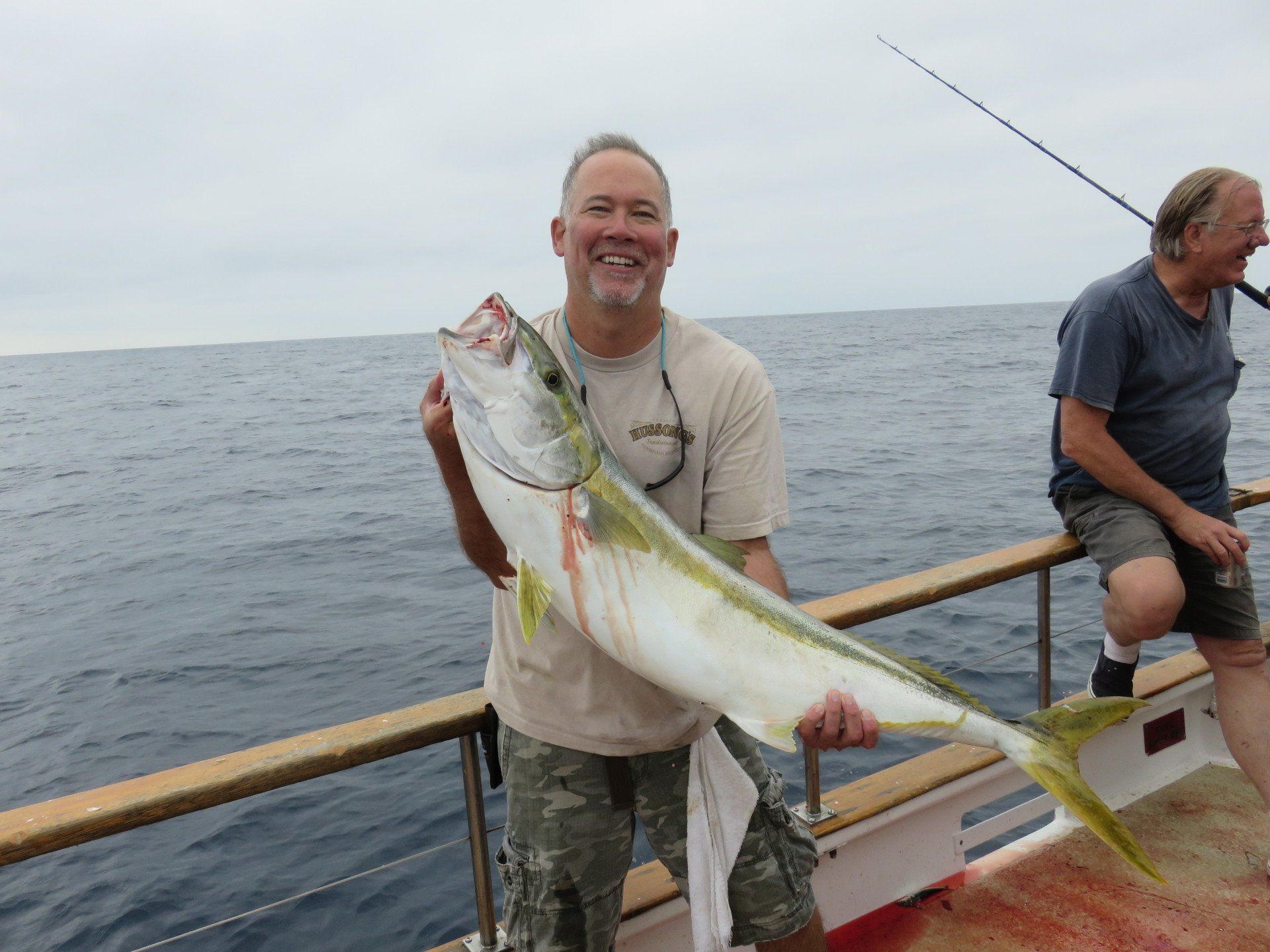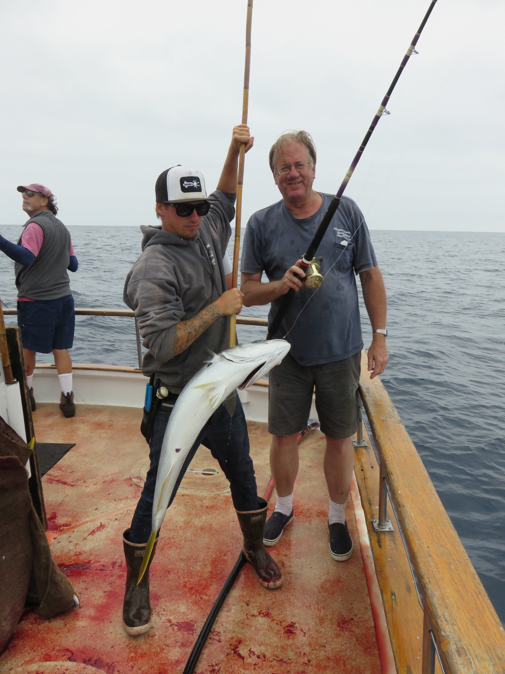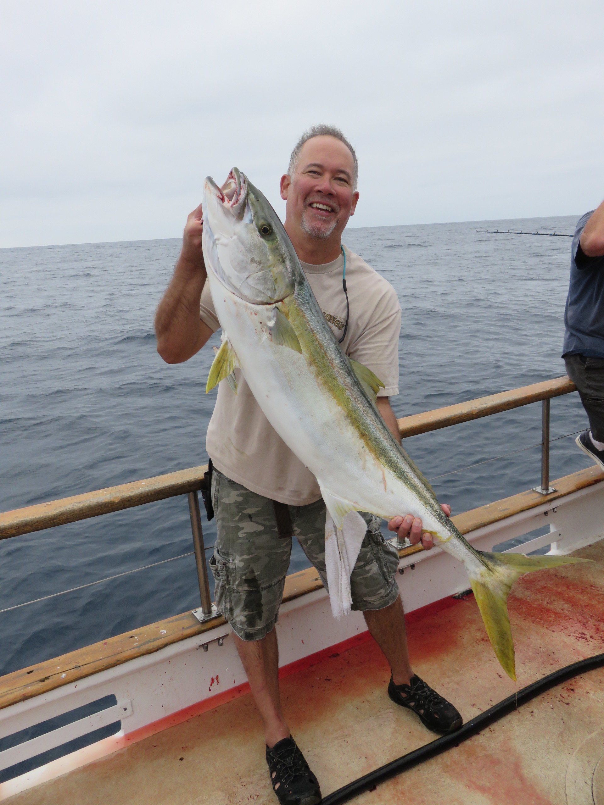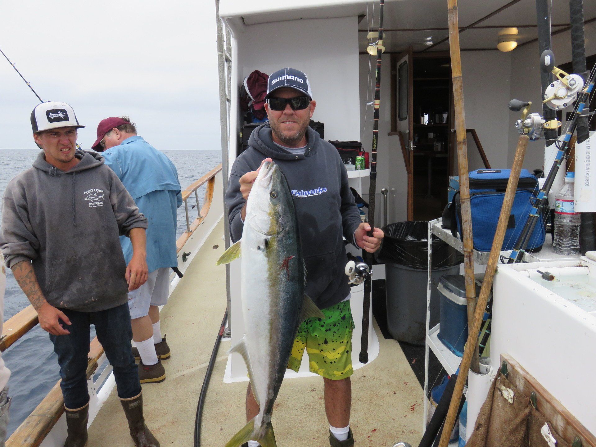 Trip #4: Boat: Thunderbird 2 day Departs: Thursday August 7th Fishing: August 8th, 9th Returns: August 9th pm Trip 4 started as usual with people arriving at Newport Landing at all hours of the day with anticipation of fishing. The preliminary reports from Gary Thompson were all too familiar to what we’ve seen this year. Bait was going to be an issue. And last but not least, was the fish seemed to pop up one day and then disappear the next. Nevertheless, everyone was ready to go. Friday morning saw us anchored at the usual cove off SCI. Weather was OK; fishable, but not a lot of fish. But the ones we caught were quality yellowtail and white sea bass. The sea lions provided ample entertainment …err I mean frustration. We hopped around to a few spots picking up the occasional calico but not much. Day 1 jackpot went to Alex Arthur (Justin Becker’s Guest) with the patch going to Nick Burson for some chunky YT’s Day 2 started much as it did Day 1 but the weather was worse than Day 1. We looked here and there with only 3 yellowtail to show for our efforts. Eventually, the Thunderbird turned towards offshore waters to try our luck at some bluefin. Unfortunately, the fish didn’t get the memo and we saw neither sign or had any bites. Mr, “Hey that’s my fish” Tom Hill was the lucky jackpot and patch winner for Day 2 with a 15# YT. So, there you have it, not a, “Hey you missed a great trip” kind ‘a trip but per usual, the members of our club all seemed to enjoy doing what we do. It’s not always about the fish; it’s about the people and the experience. LOL! Who am I kidding…we all want more fish. Until next time, step to the right/left and take up your slack.