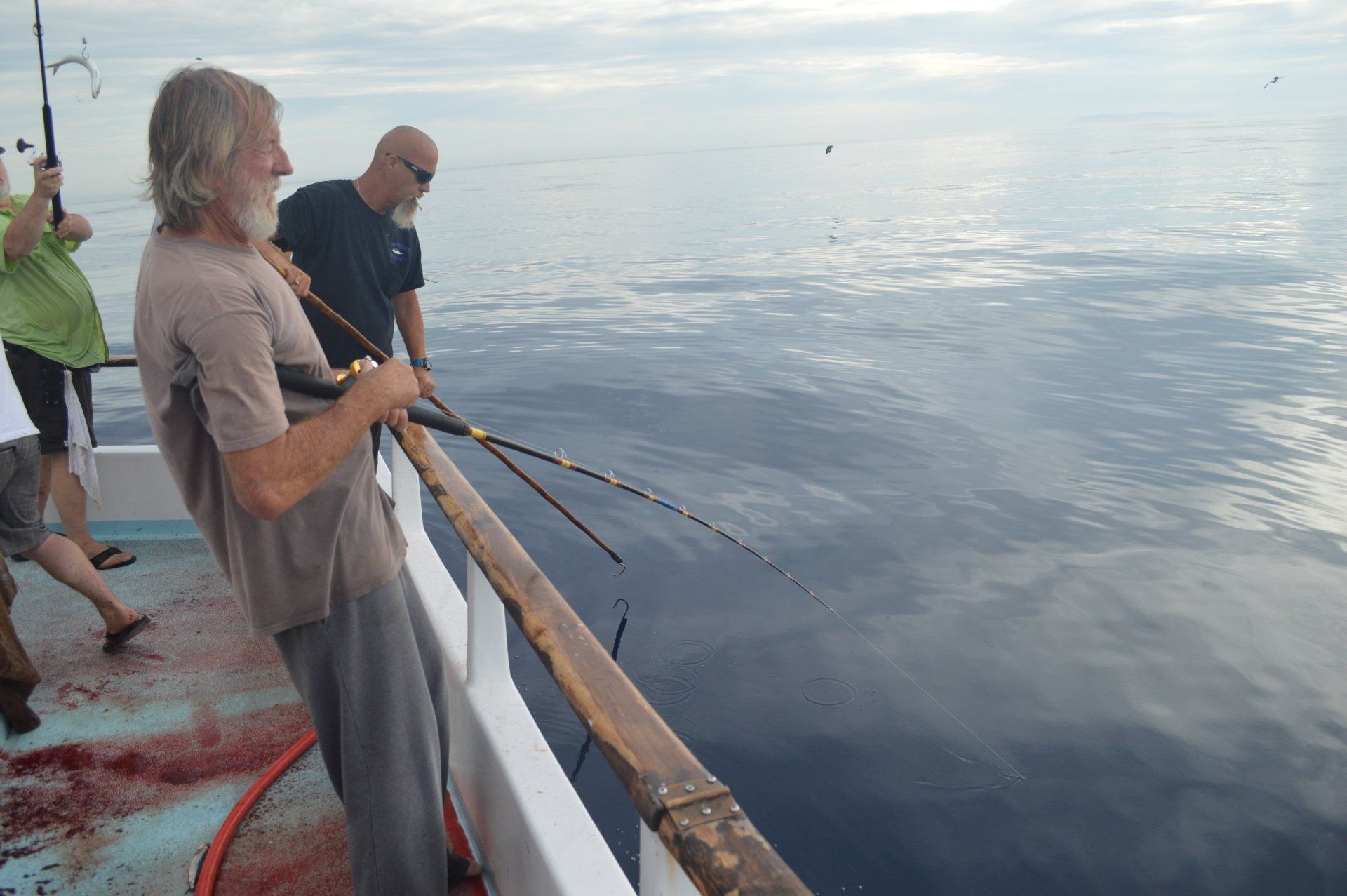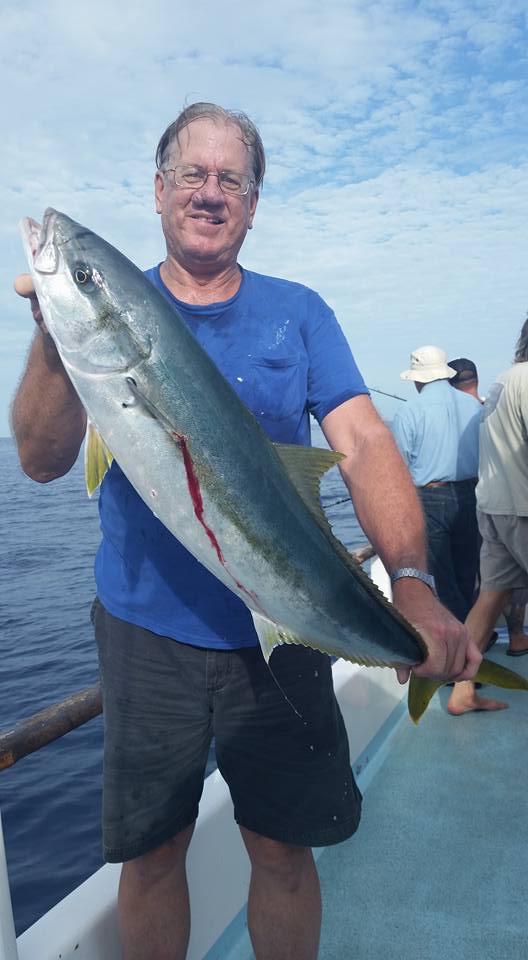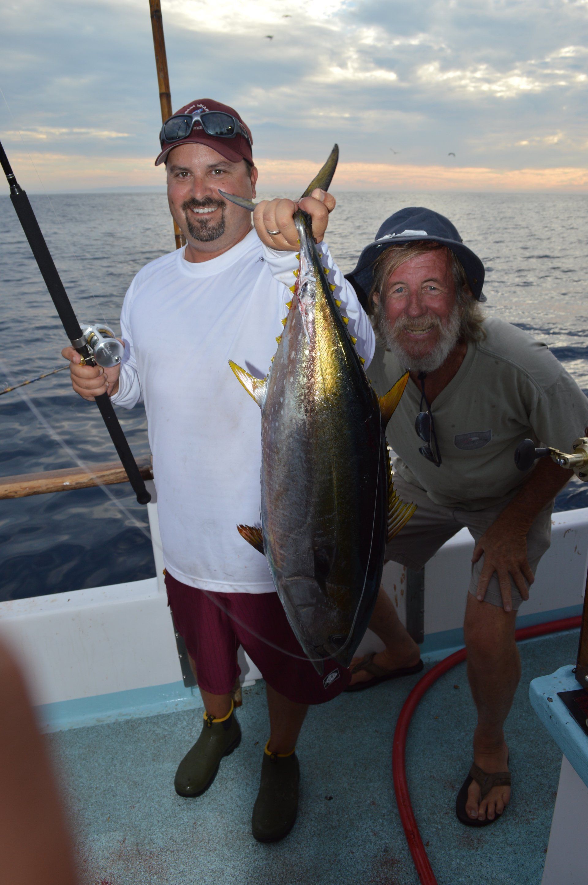 At 6:00 p.m., we rolled onto a kelp where Gary hooked a dorado, but lost it when it broke off during a jump. We found one kelp where we were able to pick off a few small yellowtail, skipjack tuna and 12 yellow fin; the largest of all the fish was less than 10 pounds. After that stop, we headed for the dock.