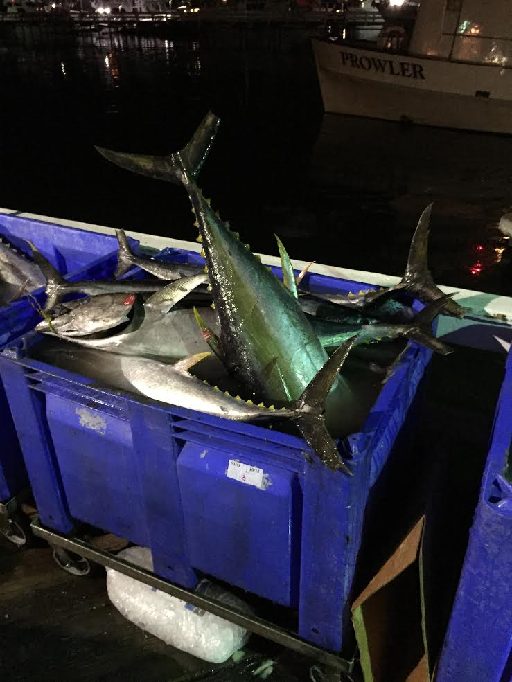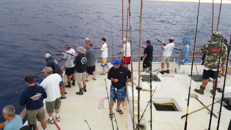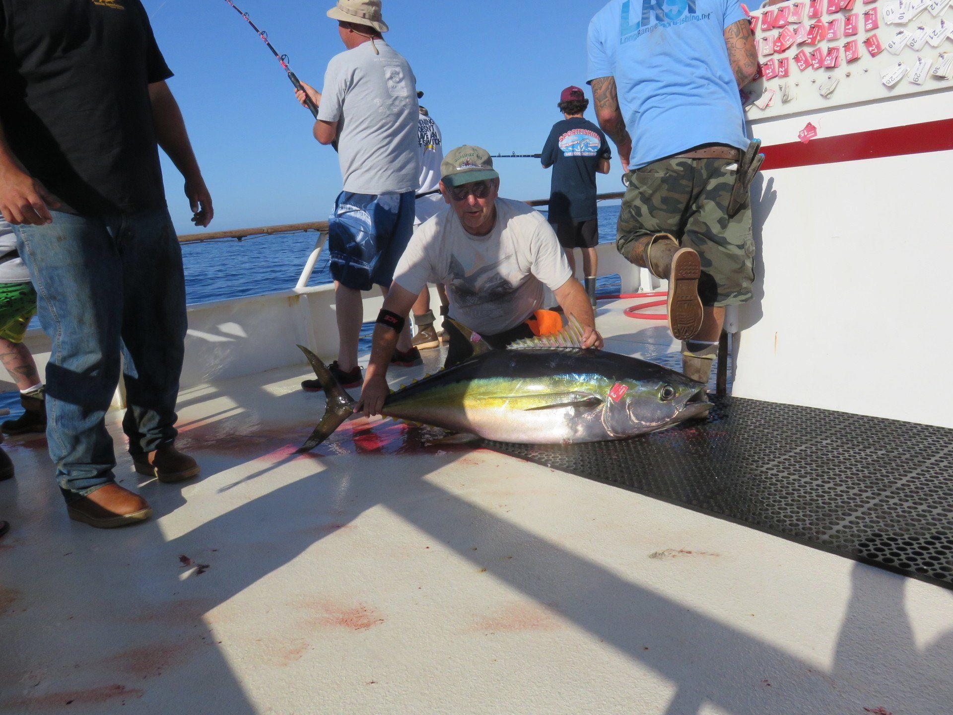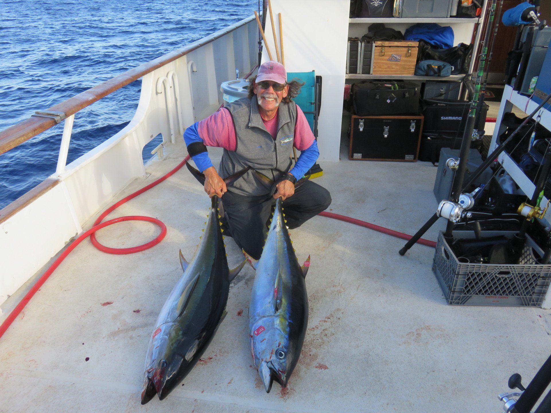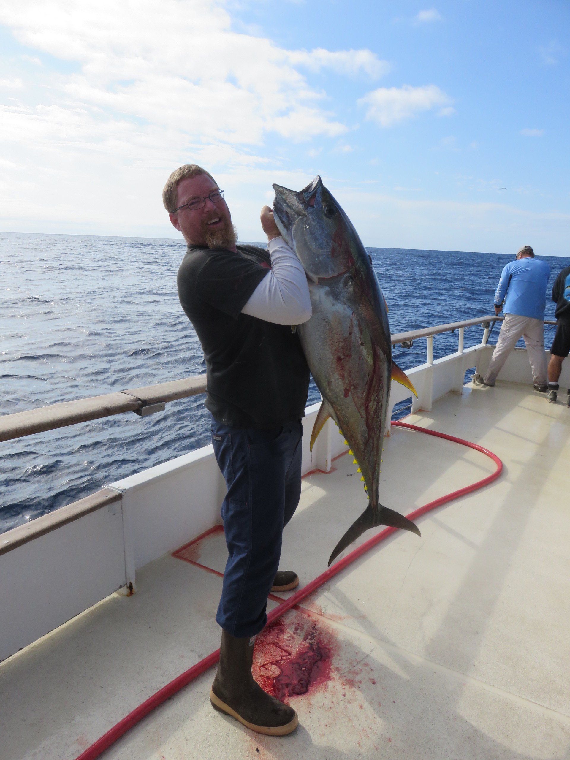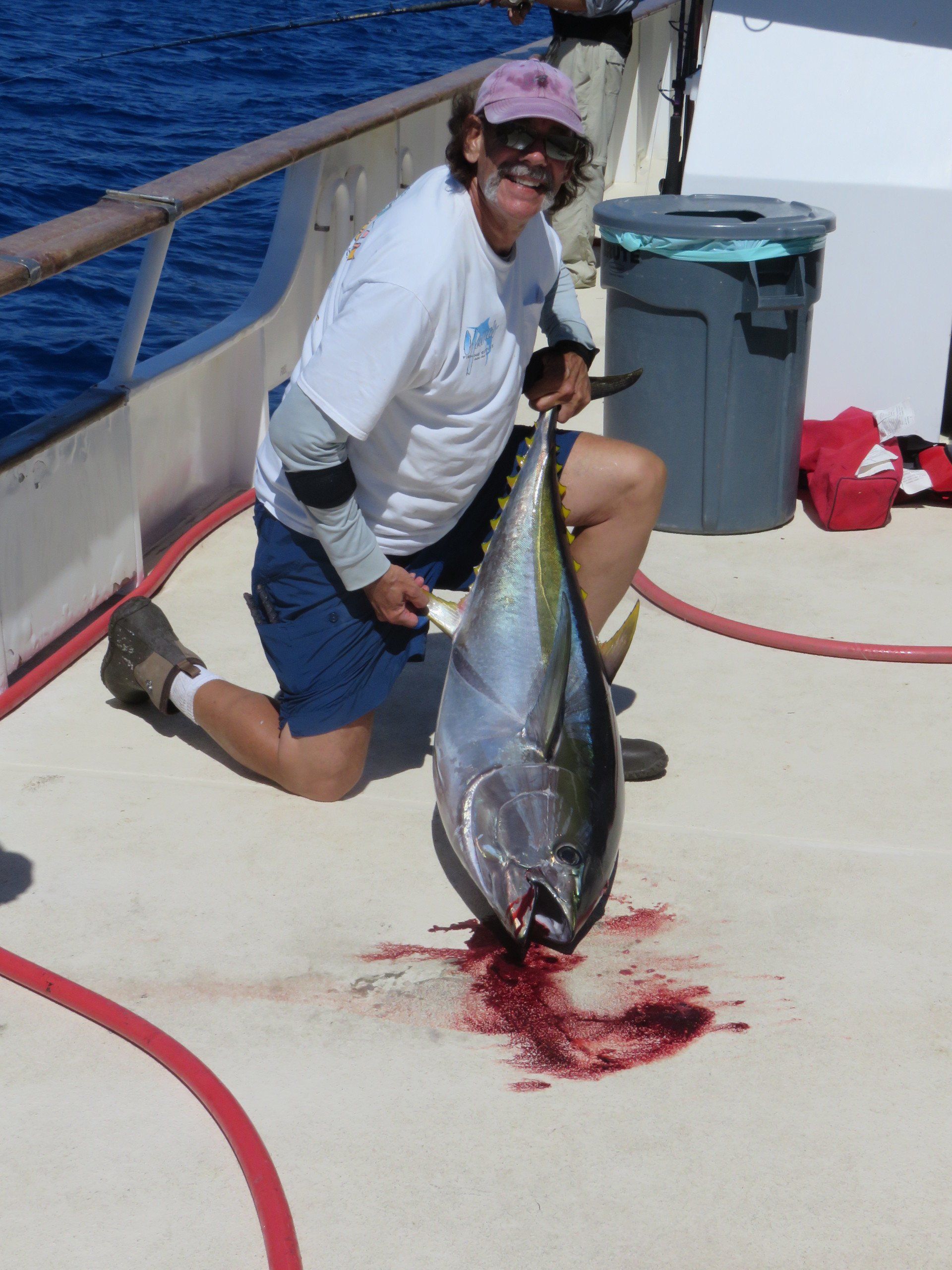 The next day was not much better as we continued to look for YFT that wanted to bite. We ended up with 22 YFT and 3 YT. For the day and half of fishing we had a total 38 YFT and 5 YT. Bill Parks was hot with 4 fish. So was Tom Hill with 3 fish. Luke got bit fine but had trouble keep hooks in the fish, he was 2 for 6 hook-ups with 4 pulled hooks. The DWRRC contingent was clearly setting the bar for the charter. We probably had close to 70% of the tuna.