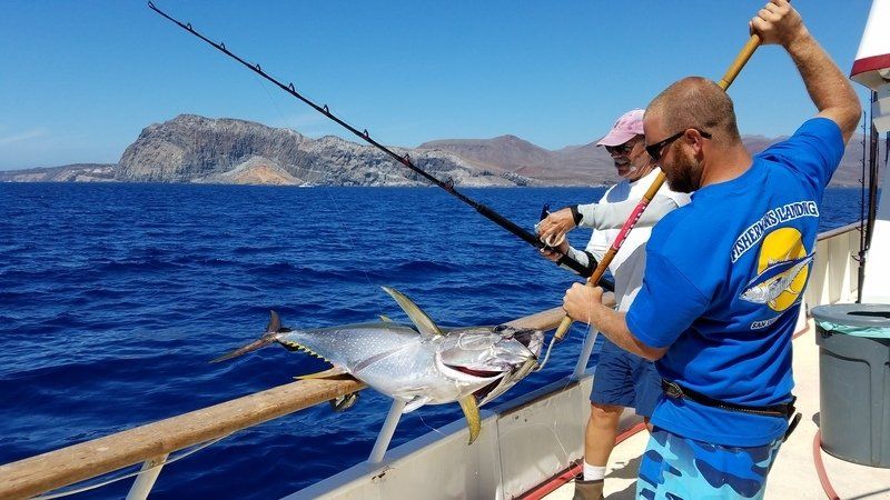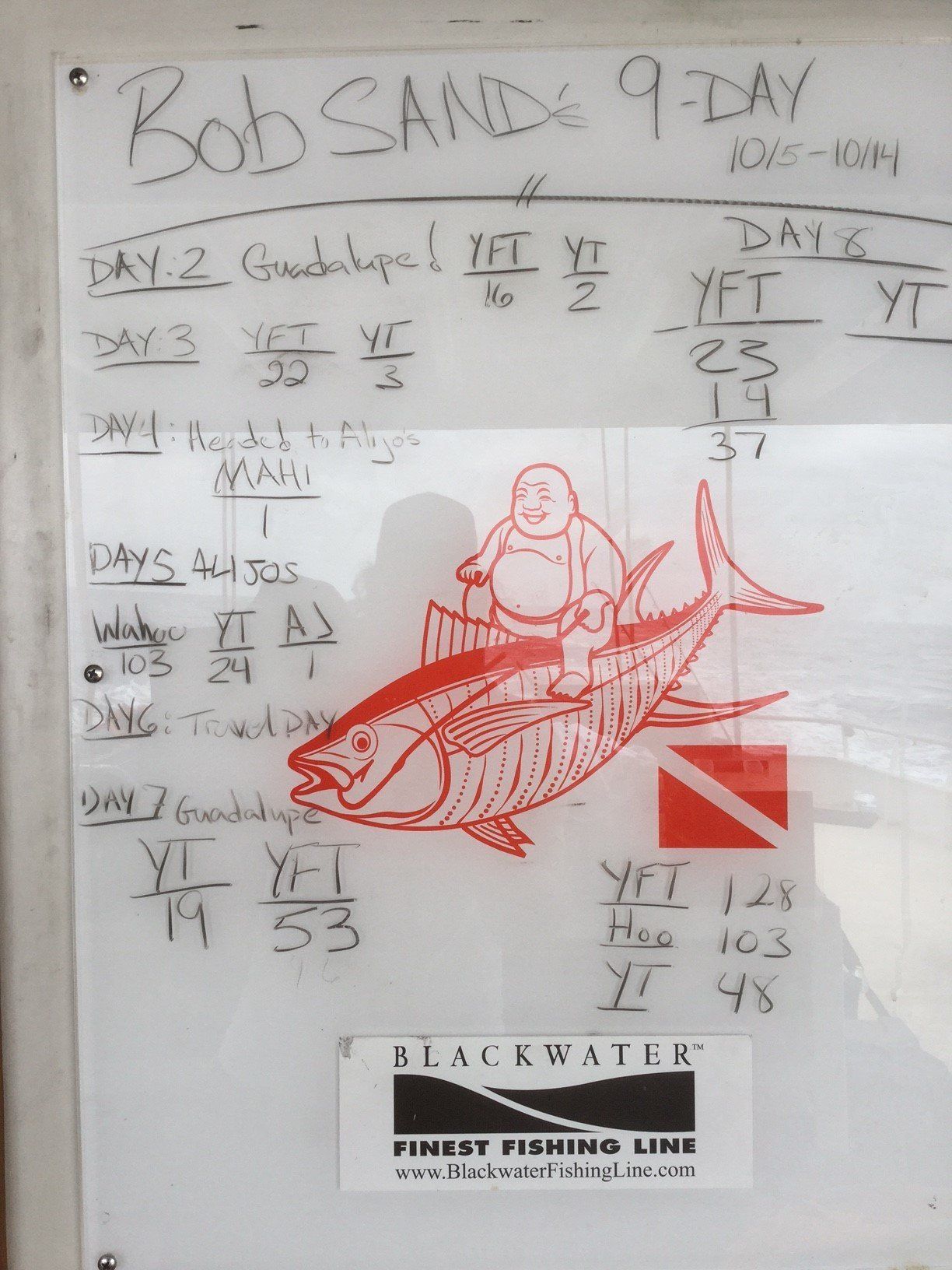 The Bob Sands charter was made up of some season veterans and a few first timers to long range fishing. Many had never been to Guadalupe. If you added Mike’s and Luke’s trips to Guadalupe together it might have equaled the rest of the anglers combined. Even though both had been to the “Lupe” many times in the past their excitement was the same as the rest of the anglers. The thoughts of fishing for 3 or 4 days for quality YFT, then big YT at night plus Wahoo someplace made for an electric atmosphere!