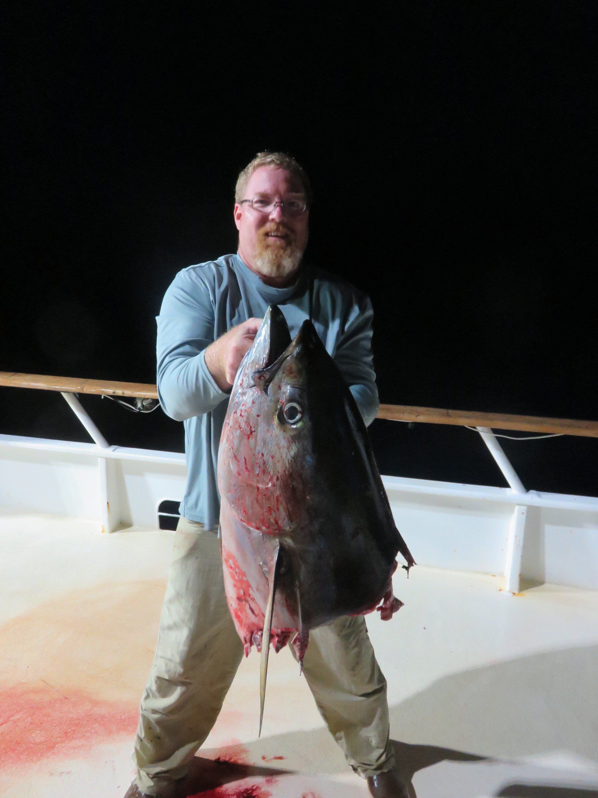 Our last day again started in the dark fishing for YT but the YT did not want to cooperate, we caught zero. The YFT were not as eager either primarily due to lack of current. At the end of the day we found a bunch that bite right into the dark which made the day respectable with 24 fish in the morning / early afternoon and another 14 fish that bit into the dark. Carl hooked two during the evening bite that worked him pretty good.