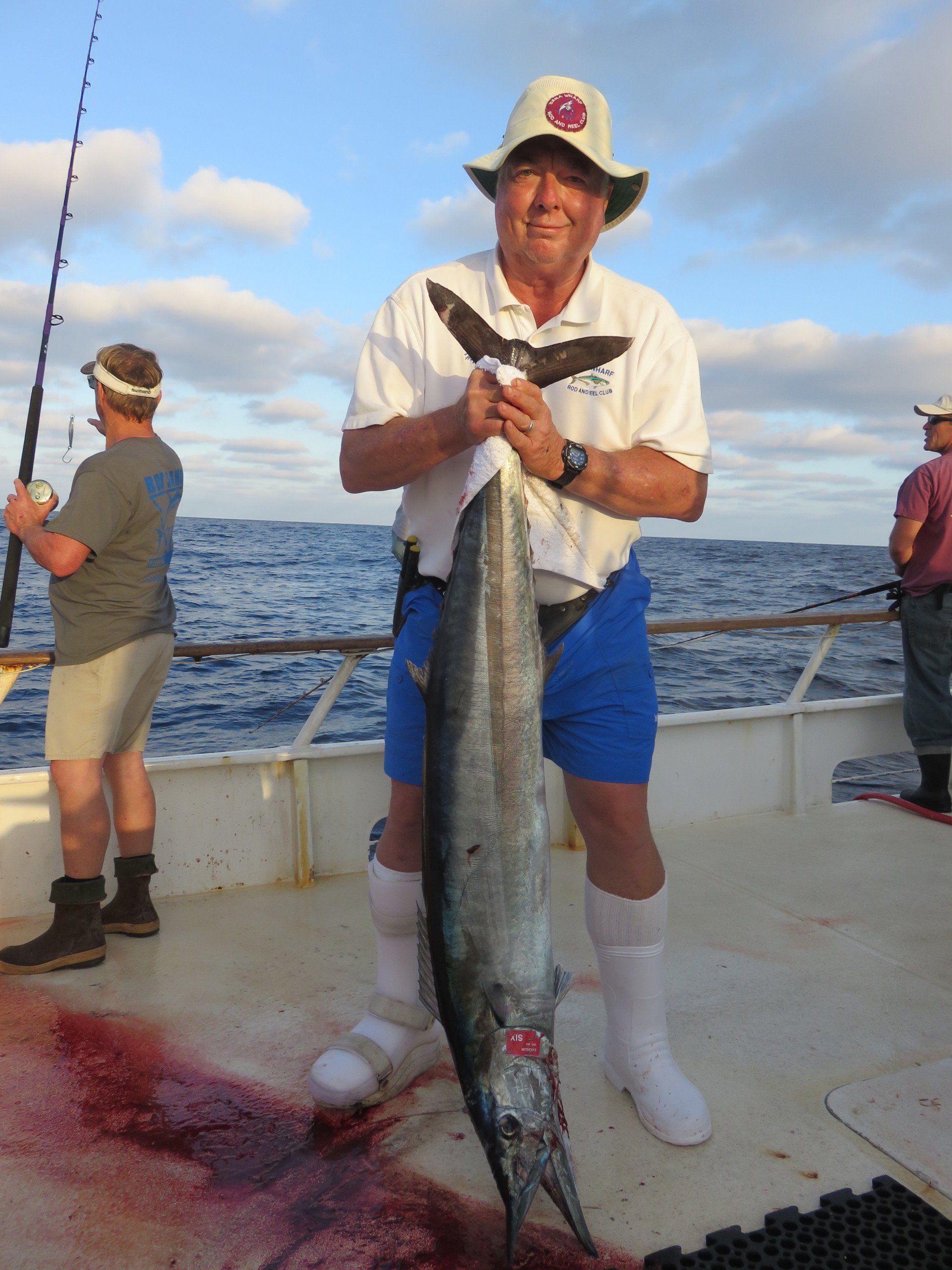 On Thursday October 6th nine members of the Dana Wharf Rod and Reel Club joined seventeen other anglers on the Bob Sands 9 Day Charter on the Shogun. The nine were: Bill Parks, Hayden Claisse, Mike Trunk, Carl McKinley, Andy Woodfill, Cody Kelly, Chris Ramsey Jr, Tom Hill and Luke Burson. Five of this group (Bill, Mike, Andy, Tom and Luke) were on the Shogun trip last December that was called the best big tuna trip ever to Guadalupe Island. This trip had 4 more days so the expectations were more time at Guadalupe plus Wahoo fishing at either the area called the “Ridge” or Alijos Rocks. As the trip prepared to depart there was plenty of excitement for YFT and Wahoo. The Shogun had just returned from Guadalupe where they caught quality YFT and other long range boats had been successful catching Wahoo at both the “Ridge” and the “Rocks.”