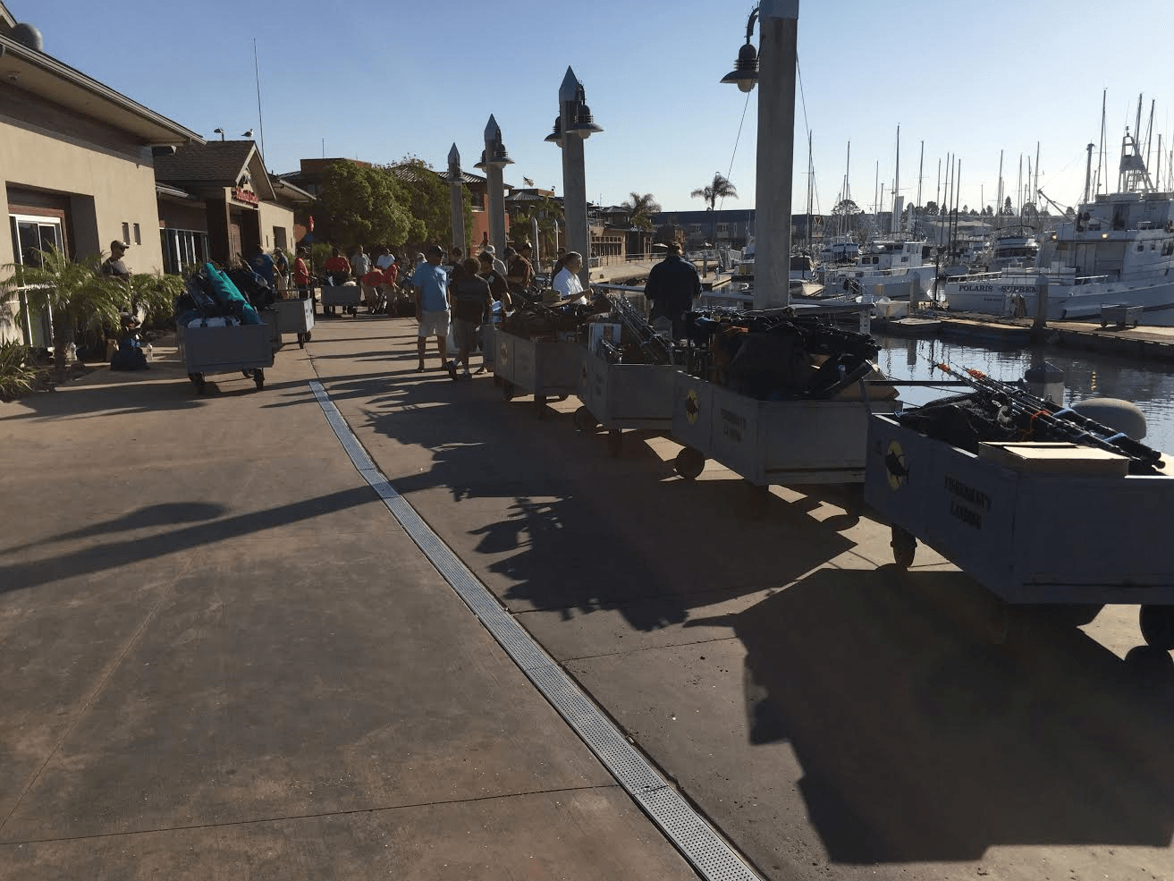 Trip #8: Boat: Thunderbird 1.5 day Departs: Thursday, October 2th Fishing: October 3th, 4th Returns: October 4th pm Thunderbird Crew: Capt. Jeff Capt. Chris Jose Nate Goofy Cast of Characters: Bill Parks Steve Morgan Riley Dyer Jim Bertella Justin Becker Jacob Richards Luke Burson Paul Morgan Mike Allen (Scribe) Patrick Thunyakij Bruce Granse Kevon Kong Michael Harris Ryan Burson Oscar Ochoa Ed Chutney Jeff Allen Andrew Ron Shrout Murphy Parks Romeo Ochoa James Harris Ozzie Baktiari Arriving for a trip in the month of October at Newport Landing is a far easier experience then one would have in the summer months of June – September. The dread of driving through the neighborhood in hopes of an empty space large enough to accommodate the larger trucks that many of the club members own seems to dissipate as the offerings are far more plentiful. While the welcomed views of summer also tend to be less abundant, the ensemble of club members arrived with plenty of time to catch-up on some conversations and enjoy a beverage or two.