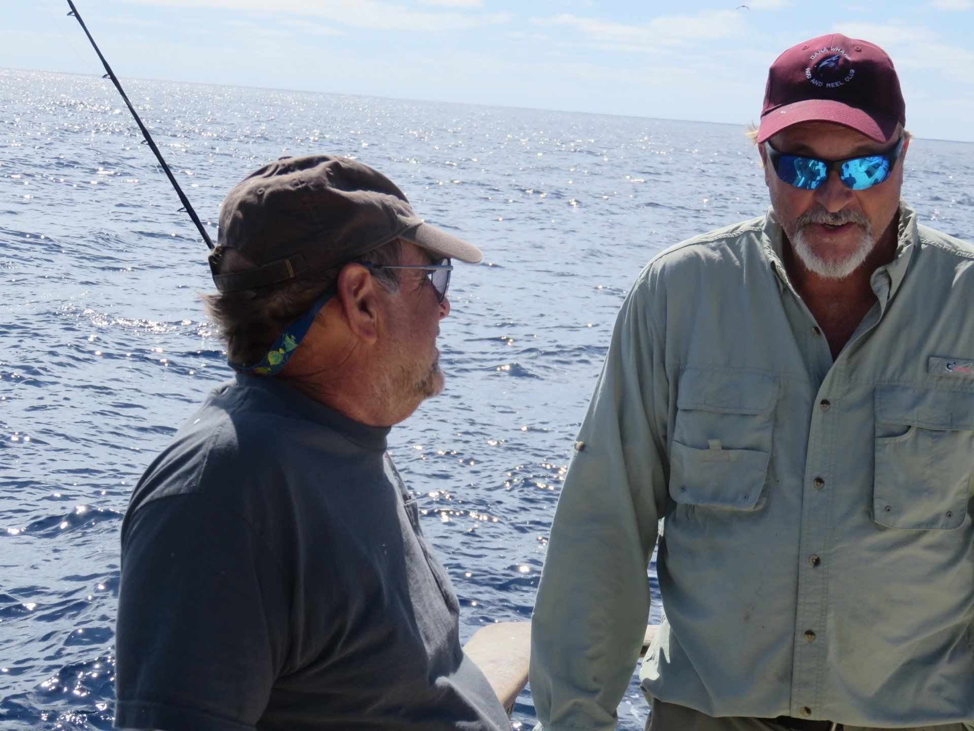 Wahoo fishing was a constant topic of discussion during the first few days. The co-charter master was working hard to convince the group that Wahoo fishing was in our future. It was a little complicated as explained by Russell during the seminar on Friday. The Wahoo on the Ridge had shut off but there were reports of good fishing at the Rocks. The problem with the Rocks is that it can fish one or two boats at a time. The long range fleet works together to rotate in and out so everyone gets a shot at the Rocks. It seems this working together had recently been compromised with ill-feeling toward the three boats with Guadalupe permits. The Shogun is one of those boats. The three boats (other are the Royal Polaris and Royal Star) were no longer part of the “work together” part which put our Wahoo fishing in jeopardy. Our best shot would be to leave Guadalupe on Saturday night, travel all day Sunday to the Rocks, fish all day Monday, leave at dark and travel all day Tuesday back to Guadalupe. Once back at the Lupe we would have Wednesday and Thursday to fish for YFT and YT. For that to work we needed a very tight window to open up so we could slide into the Rocks after someone else left and before someone else was scheduled to arrive. Magically it worked out, the Excel left the Rocks on Saturday after having very good fishing and the Vagabond was not schedule to be there until Monday PM. All the other long range boats were fishing the Ridge. Russell worked with the Vagabond and we had a slot. Russell announced this to the group and the Wahoo speculation was over. Sunday was our travel day. Russell put on a Wahoo seminar in the morning and we spent the rest of the day rigging for the skinny speedsters. Some made wire leaders for bombs and bait. Others re-rigged bait outfits, jigs outfits, bomb outfits and heavy trolling outfits. We found one kelp that produced one Dorado. The day went by quickly. The Ramseys slept.