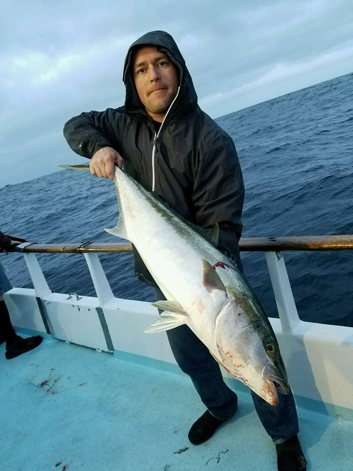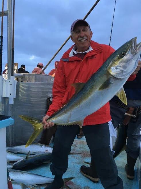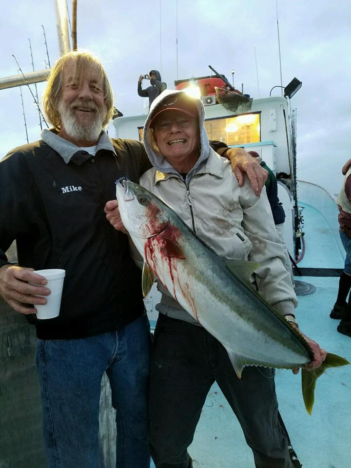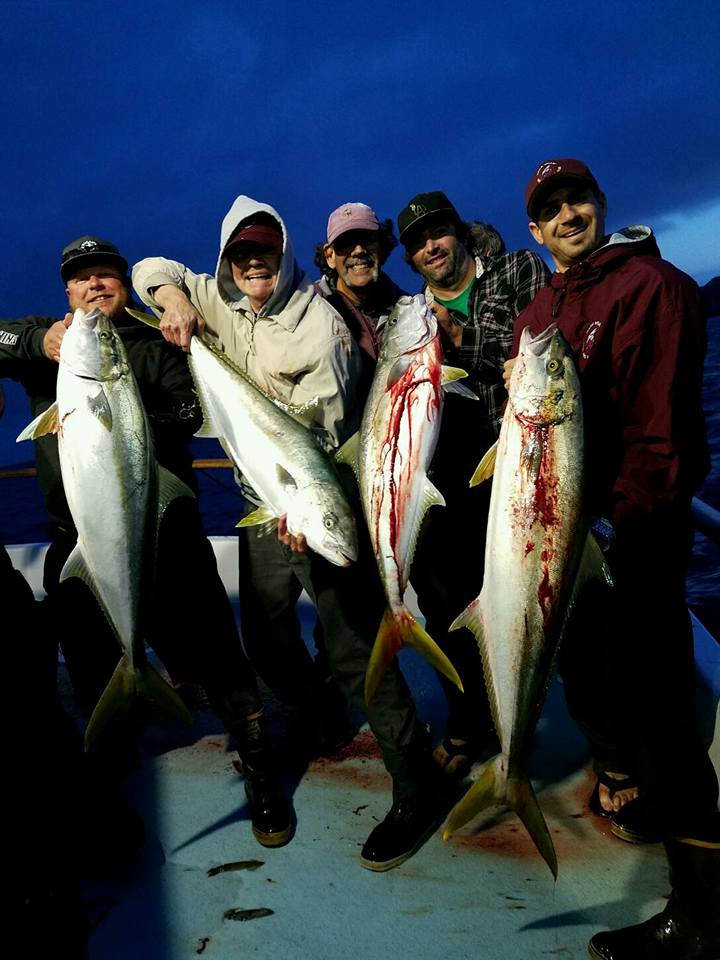 We tried early morning for WSB in mostly darkness with no success. Jeff announced a few YT were showing up on the scanner. Most of us started using dropper loops and at 6:30pm yours-truly was first to hookup on YT. We were off, one hookup after another for about the next hour and a half. It was extreme fun! By around 8:00 am we had put 34 high quality yellows on deck and later transported by the crew to that brand new brine tank. Our overall loss ratio was very low with significant contributions from the Jeff, Mike, Bryan, Steve and Goofy untangling. Thanks, guys and we will do it again soon!