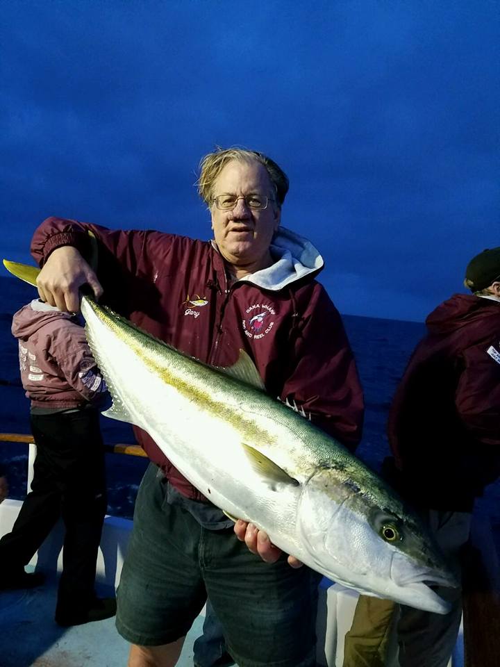 Trip #3: Boat: Thunderbird 2 day Departs: Thursday July 24 Fishing: July 25 and 26 Returns: July 26 pm Trip 3 started as usual with people arriving at Newport Landing at all hours of the day and anticipation for fishing high. The preliminary reports from Gary Thompson were not great. Bait was going to be an issue. Anchovies were sick, too hot for squid, and no sardines. Nevertheless, everyone was ready to go. Due to some late cancellations (bummer), there were 21 passengers on the trip. Gary gave the pre-trip update before boarding with the news that we would make the ride down to Dana Wharf, where there were good sardines for bait. That was the good news. The bad news was that it was going to be a bumpy ride out and wind was going to be an issue, and we probably wouldn’t make it to San Clemente Island. Our initial destination would be Catalina. So, at 9pm off we went. Friday morning saw us anchored at China cove at Catalina. I haven’t been with the club long, but my understanding from some of the older members is that the club hasn’t fished Catalina in many years. I was up at 3:30ish and there were a few hearty souls trying to make squid bait. 2-3 at a time on squid jigs, and eventually we had a decent amount of squid to go along with the sardines. Possibly a good sign. Gradually all the fisherman got lines in the water, with most people dropping down by 5am, waiting for the fish to bite. Well, the yellowtail and white seabass were a no show. We did have a pretty incredible black seabass bite. A total of 6 were hooked, 3 broke off, and 3 were landed (all by Jim Bertella) and released. At 7:30 Captain Chris decided to make the move over to San Clemente Island. We looked for kelp patties and bluefin on the way. Again, fish were a no show (there’s a theme happening here). Made it to Clemente about 11:30. We spent the rest of the day fighting winds at Clemente. Most of the fishing was close to the island with catch and release calico fishing, although a few nice ones were kept. A few small yellowtail were caught on bait, and one on a surface iron. On any other trip these probably would have been released, but beggars can’t be choosers. Final count for day 1 was 9 yellowtail. Gary Thompson won jackpot. We anchored at Clemente for Friday night. Overnight the squid came up and we woke to plenty of squid in the bait tanks. We started fishing early Saturday morning by dropping down for yellowtail. Once again, the fish were a no show. It wasn’t for lack of trying. All the passengers dropped lines and were giving it the best effort. Enthusiasm remained high. A small halibut was caught, along with a few barracuda. At 7:30 we pulled anchor and started looking for bluefin. At 8, a small bluefin was caught on the troll by one of our guests. No other fish were willing to bite and we kept looking. No luck. At mid-morning, Chris set us up for some rockfishing drifts. Most of the fish caught were salmon grouper, but people at least had a shot to fill their bags. After the rockfishing, we were back on the troll. We covered a wide area of ground. I believe at one point we may have entered into Mexican waters. We saw no bluefin during the troll. Finally, we had to start heading back to the landing. As we were heading north, we saw one our first and last kelp patty. It would be our last stop for the trip. On the stop, one yellowtail was caught using a colt sniper. Like the yellowtail on day 1, it wasn’t big (generous to call it 8 pounds), but it was a keeper and the jackpot fish (sad but true). Final count for day 2 was 1 yellowtail, 1 bluefin on the troll, 1 halibut, and a couple of barracuda. Brian Drazba won jackpot. Despite the rough weather and challenging fishing conditions. Captain and crew were great as always. Never gave up. And I believe all club members and guests had a good time. We can’t always have great days and it just gets us ready for the next trip. Submitted respectfully, Brian Drazba