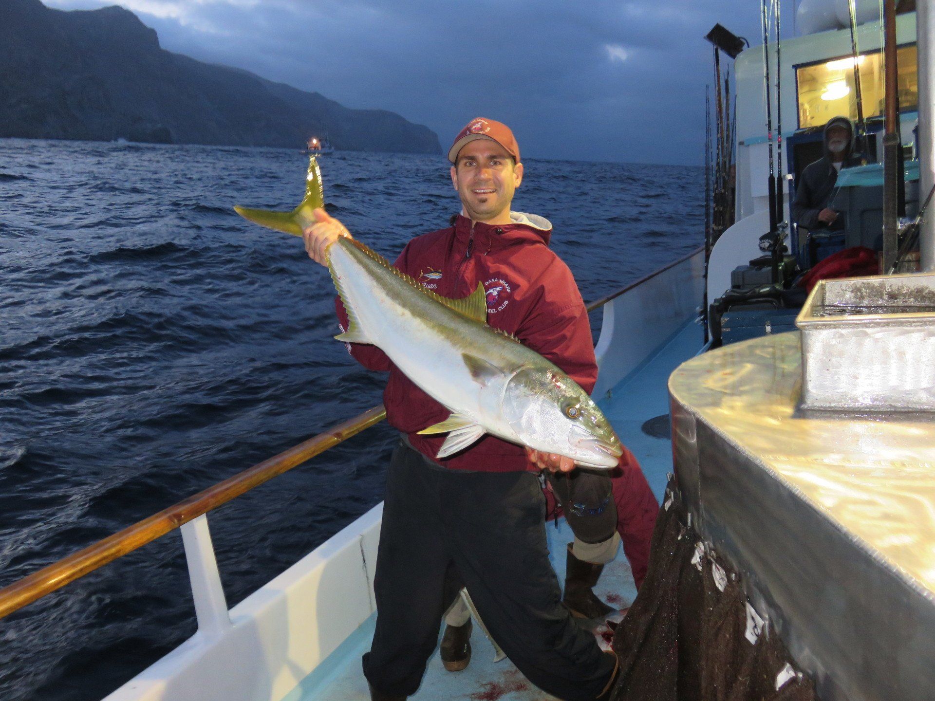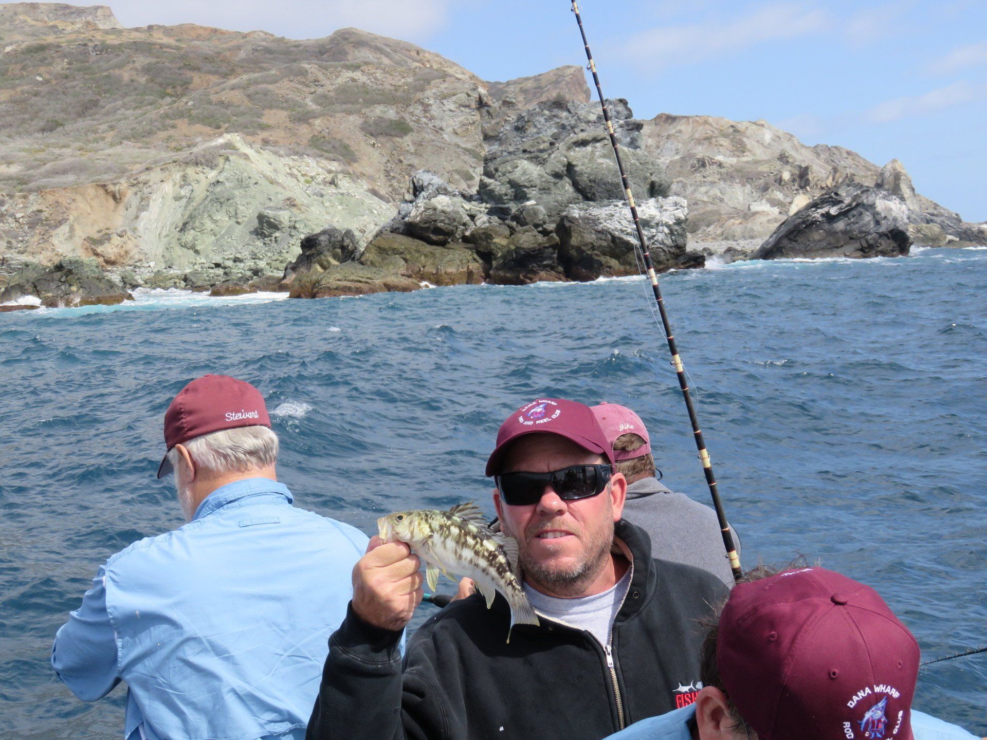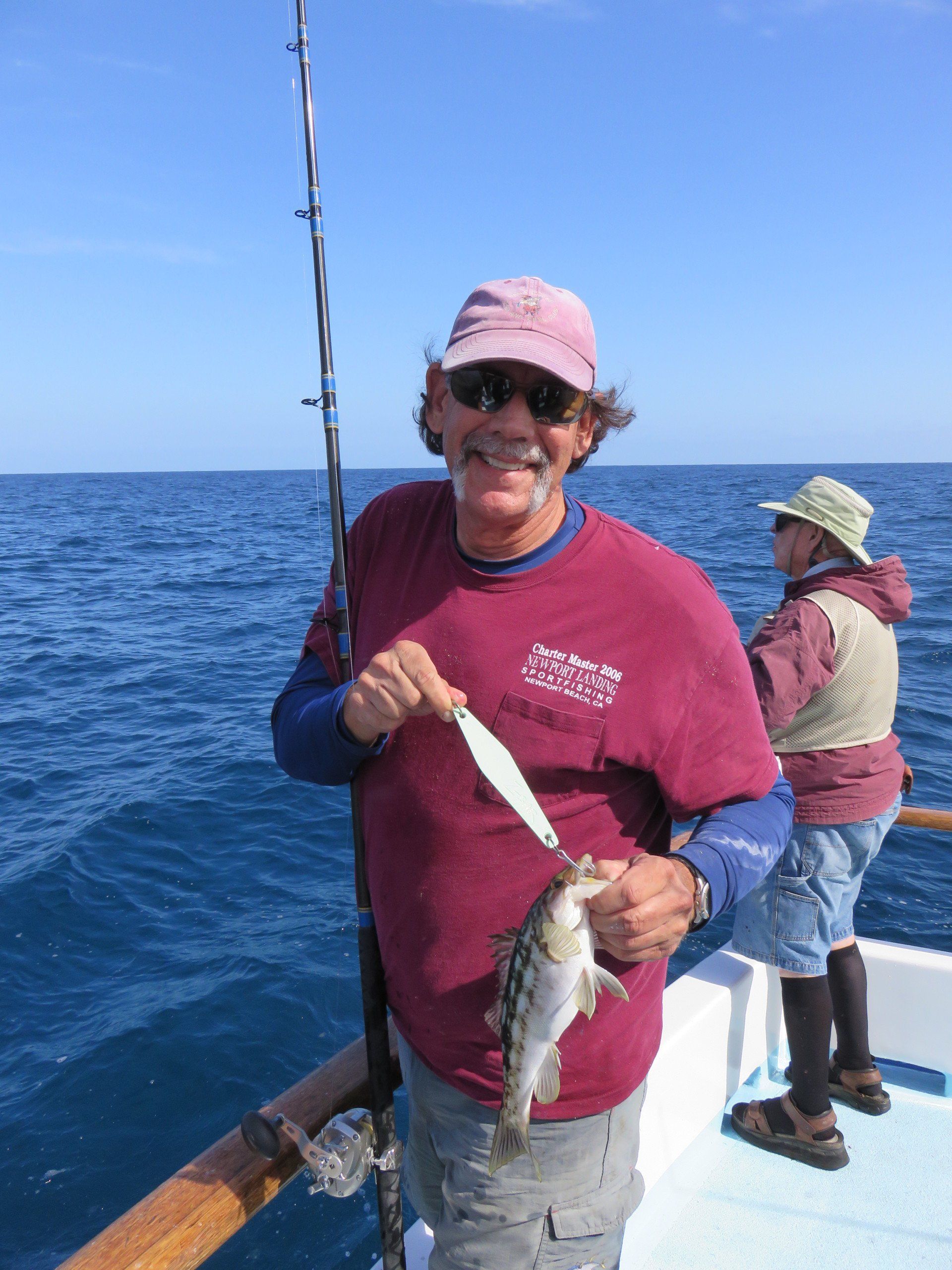 As the morning went on Jeff moved to try spots around West Cove and we picked up a few much smaller YT. Around Noon Jeff positioned the TB into a spot at West Cove in around 37 feet of water where we tried for WSB with no success. Leaving that location around 2pm Jeff worked his way around the backside, East End and completed the trip on the front side with a few more fish. All these fish were just starting out in business on a very small scale. We caught a varity of fish YT, bonito, barracuda, sheep head, perch, calicos, white fish and an eel. Final count was 50 YT, not a bad day. Goofy cooked up some bonito for the group and it was a delicious treat. It’s worth noting that Gary Thompson got unusually excited when he caught a small perch?
