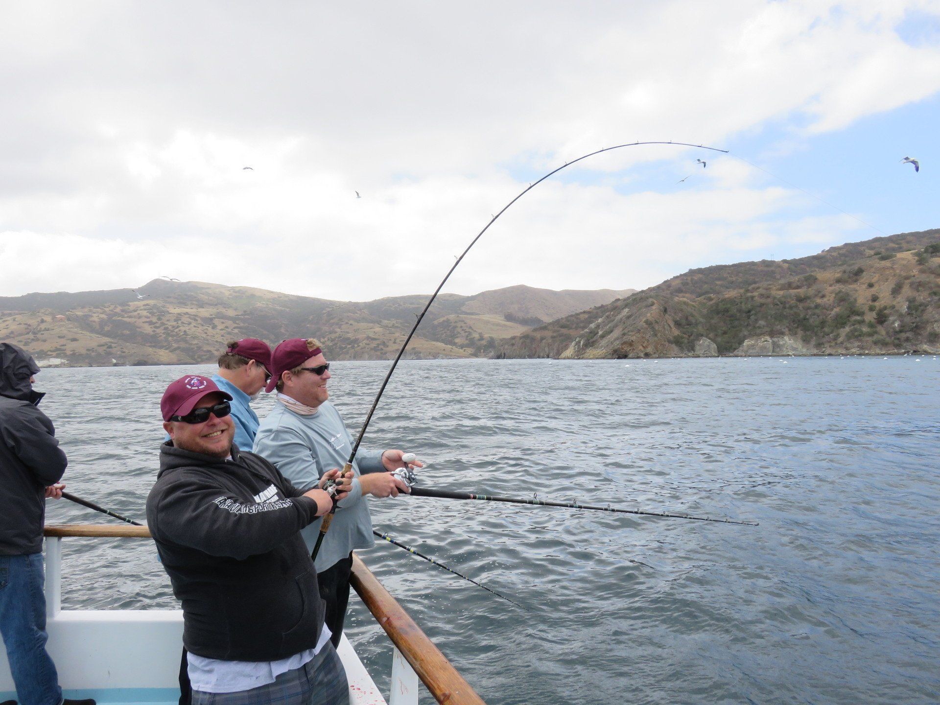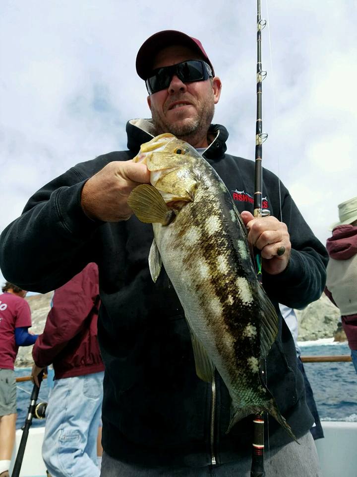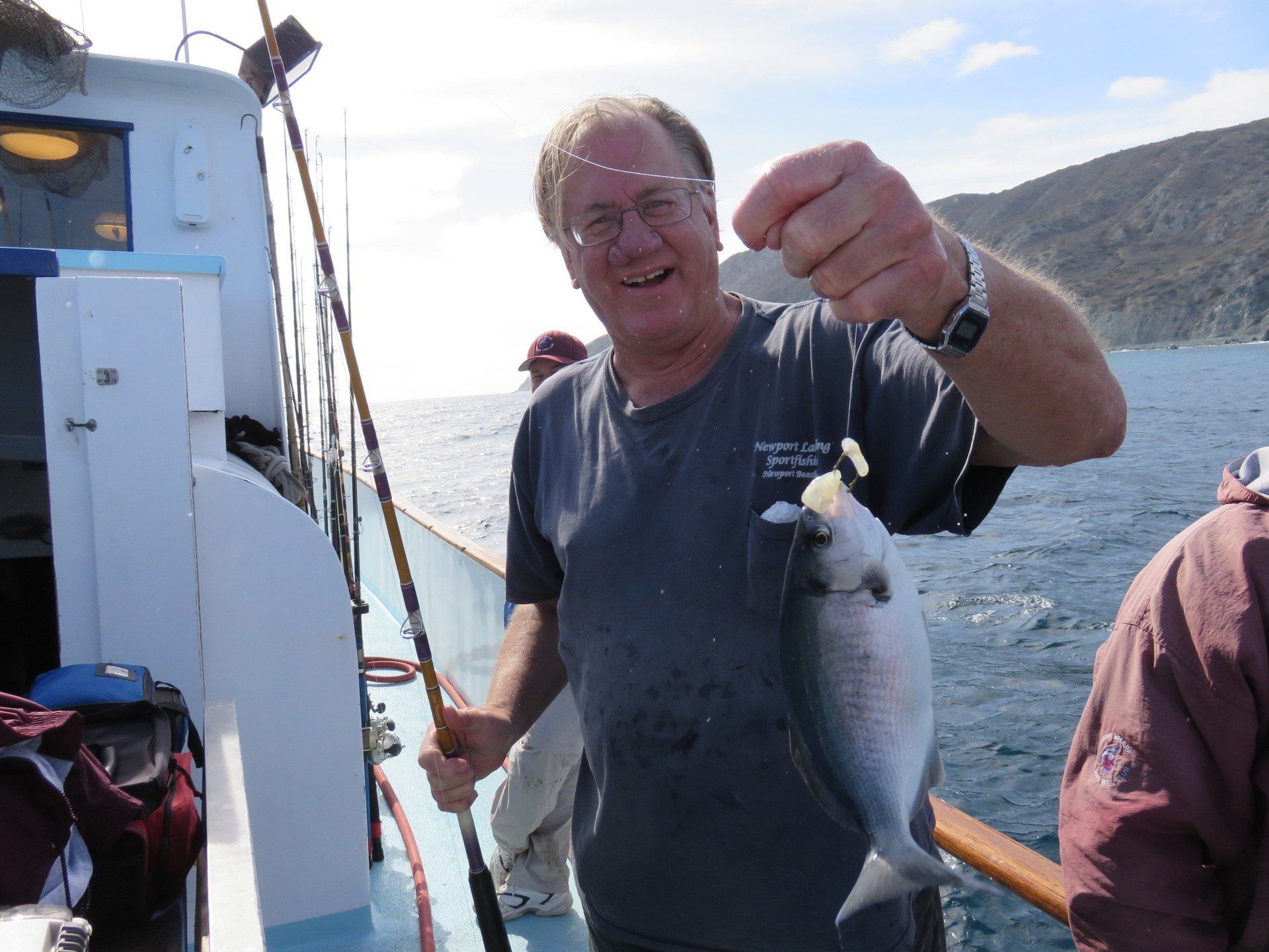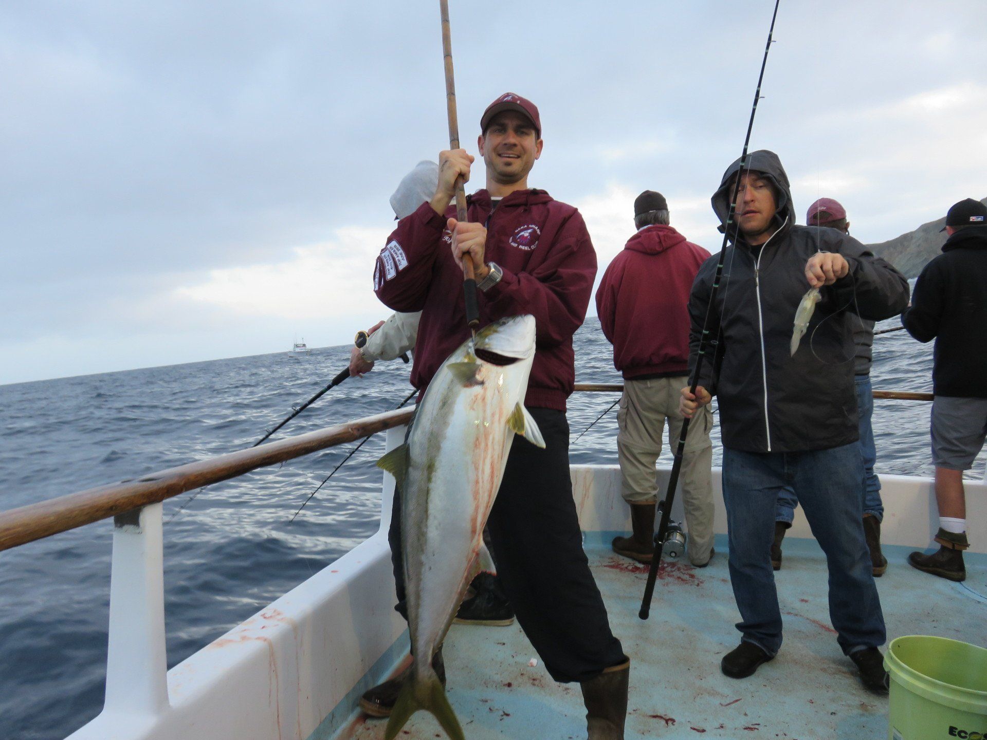 As the morning went on Jeff moved to try spots around West Cove and we picked up a few much smaller YT. Around Noon Jeff positioned the TB into a spot at West Cove in around 37 feet of water where we tried for WSB with no success. Leaving that location around 2pm Jeff worked his way around the backside, East End and completed the trip on the front side with a few more fish. All these fish were just starting out in business on a very small scale. We caught a varity of fish YT, bonito, barracuda, sheep head, perch, calicos, white fish and an eel. Final count was 50 YT, not a bad day. Goofy cooked up some bonito for the group and it was a delicious treat. It’s worth noting that Gary Thompson got unusually excited when he caught a small perch?
