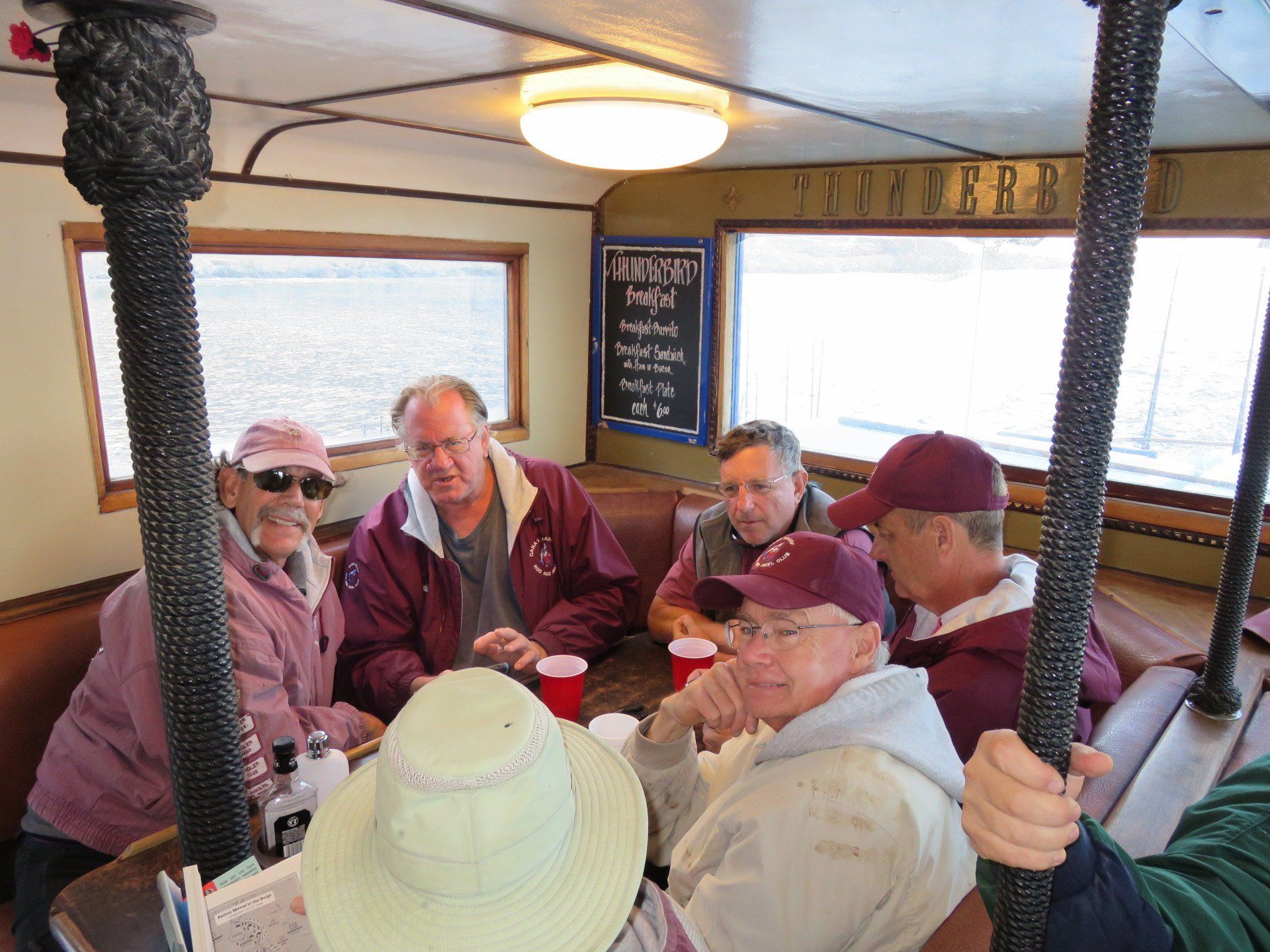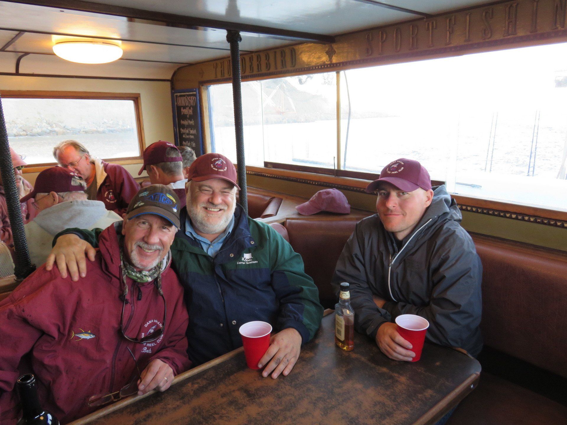 Trip #8: Boat: Thunderbird 1.5 day Departs: Thursday, October 2th Fishing: October 3th, 4th Returns: October 4th pm Thunderbird Crew: Capt. Jeff Capt. Chris Jose Nate Goofy Cast of Characters: Bill Parks Steve Morgan Riley Dyer Jim Bertella Justin Becker Jacob Richards Luke Burson Paul Morgan Mike Allen (Scribe) Patrick Thunyakij Bruce Granse Kevon Kong Michael Harris Ryan Burson Oscar Ochoa Ed Chutney Jeff Allen Andrew Ron Shrout Murphy Parks Romeo Ochoa James Harris Ozzie Baktiari Arriving for a trip in the month of October at Newport Landing is a far easier experience then one would have in the summer months of June – September. The dread of driving through the neighborhood in hopes of an empty space large enough to accommodate the larger trucks that many of the club members own seems to dissipate as the offerings are far more plentiful. While the welcomed views of summer also tend to be less abundant, the ensemble of club members arrived with plenty of time to catch-up on some conversations and enjoy a beverage or two.