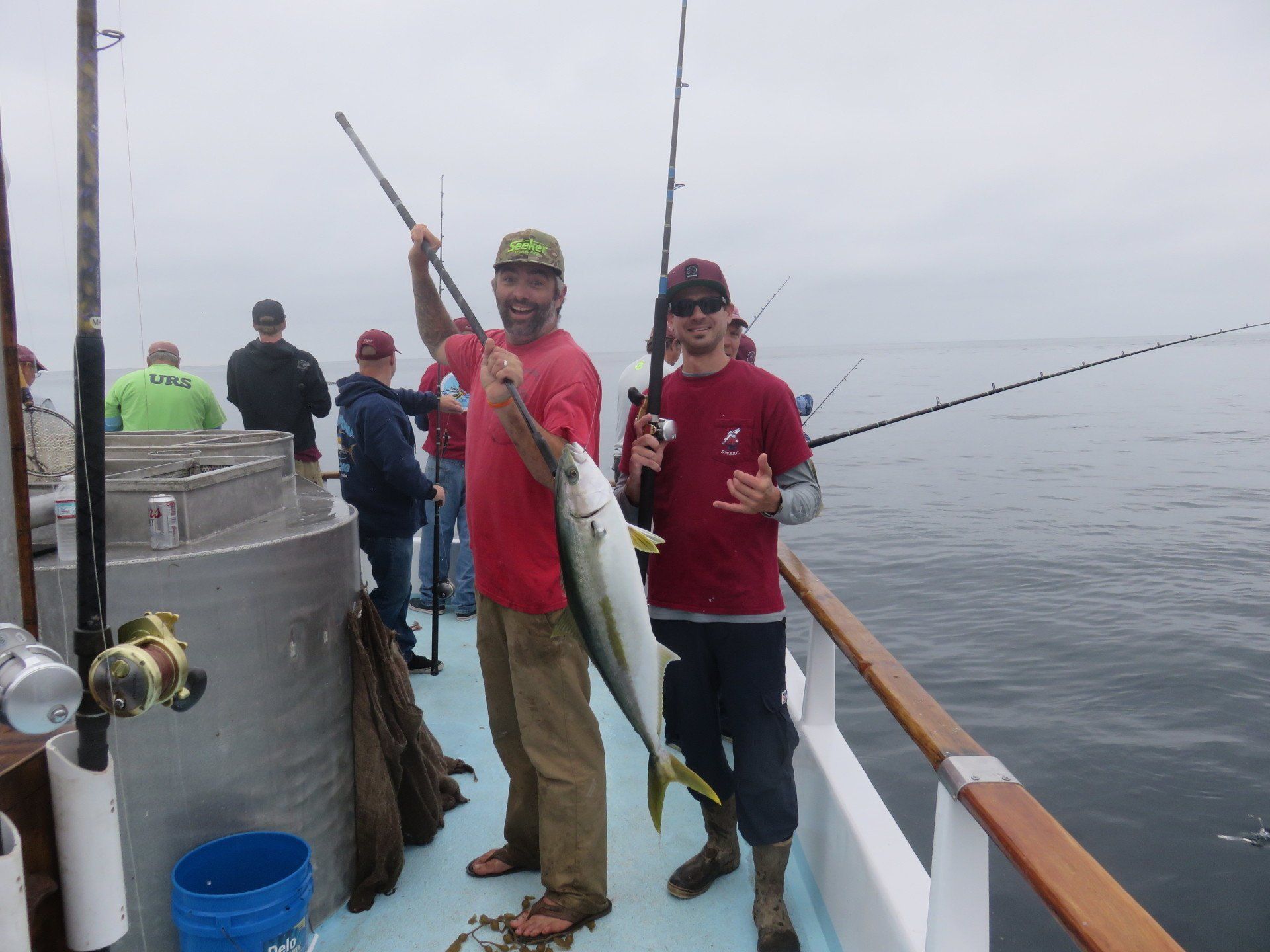 Trip #4: Boat: Thunderbird 2 day Departs: Thursday August 7th Fishing: August 8th, 9th Returns: August 9th pm Trip 4 started as usual with people arriving at Newport Landing at all hours of the day with anticipation of fishing. The preliminary reports from Gary Thompson were all too familiar to what we’ve seen this year. Bait was going to be an issue. And last but not least, was the fish seemed to pop up one day and then disappear the next. Nevertheless, everyone was ready to go. Friday morning saw us anchored at the usual cove off SCI. Weather was OK; fishable, but not a lot of fish. But the ones we caught were quality yellowtail and white sea bass. The sea lions provided ample entertainment …err I mean frustration. We hopped around to a few spots picking up the occasional calico but not much. Day 1 jackpot went to Alex Arthur (Justin Becker’s Guest) with the patch going to Nick Burson for some chunky YT’s Day 2 started much as it did Day 1 but the weather was worse than Day 1. We looked here and there with only 3 yellowtail to show for our efforts. Eventually, the Thunderbird turned towards offshore waters to try our luck at some bluefin. Unfortunately, the fish didn’t get the memo and we saw neither sign or had any bites. Mr, “Hey that’s my fish” Tom Hill was the lucky jackpot and patch winner for Day 2 with a 15# YT. So, there you have it, not a, “Hey you missed a great trip” kind ‘a trip but per usual, the members of our club all seemed to enjoy doing what we do. It’s not always about the fish; it’s about the people and the experience. LOL! Who am I kidding…we all want more fish. Until next time, step to the right/left and take up your slack.