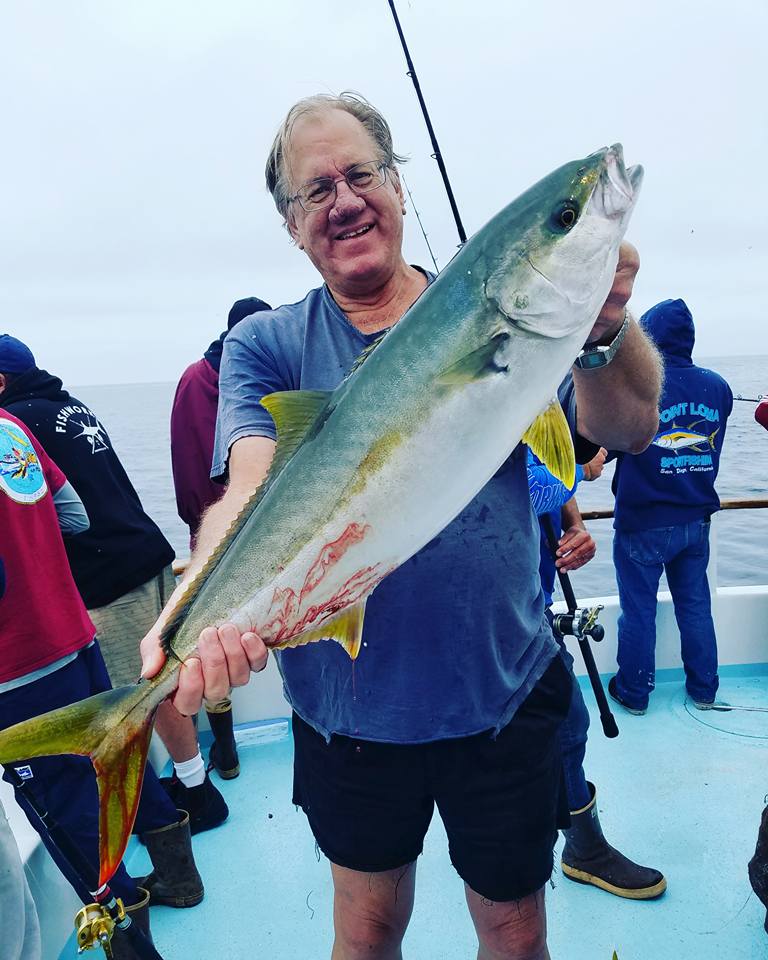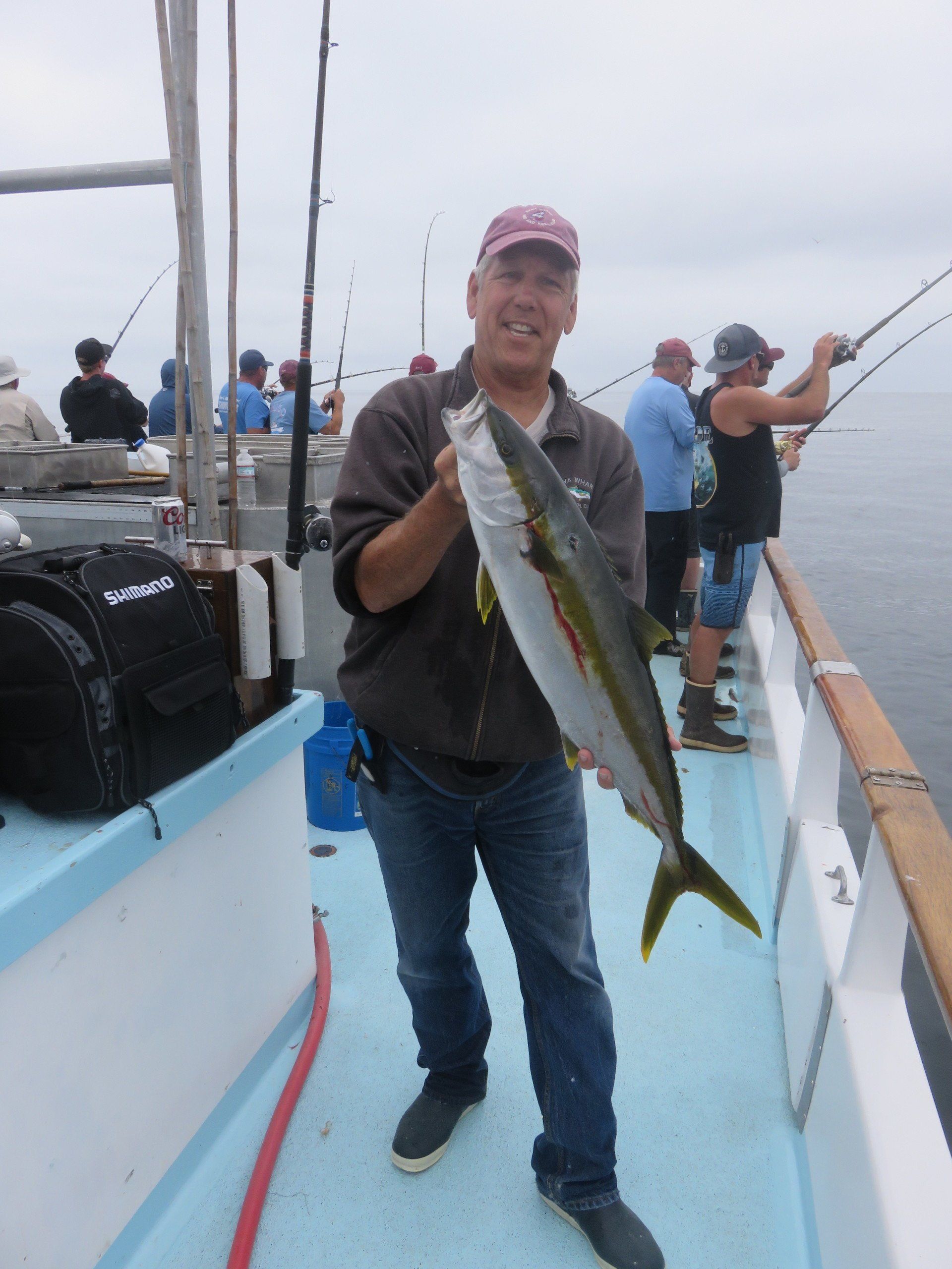 We progressed in our fish chasing day,and as is normal, some anglers get bit more and some get bit less. The kind-hearted soul Roy hooked and handed off a fish to his guest Dave S. Dave worked the fish hard and boated a very nice yellowtail. As it turned out, it was not only the fish of the day but might have been a contender for YT of the year. It bottomed out the scale, so it appears it was more than 35 pounds. It was so kind of Roy to give his jackpot fish to someone else. We should all strive to be so gracious….right…? In all seriousness, Roy was very gracious in handing off and very nice fish and even with all the ribbing, he was well pleased how things worked out for Dave. Nice host.
