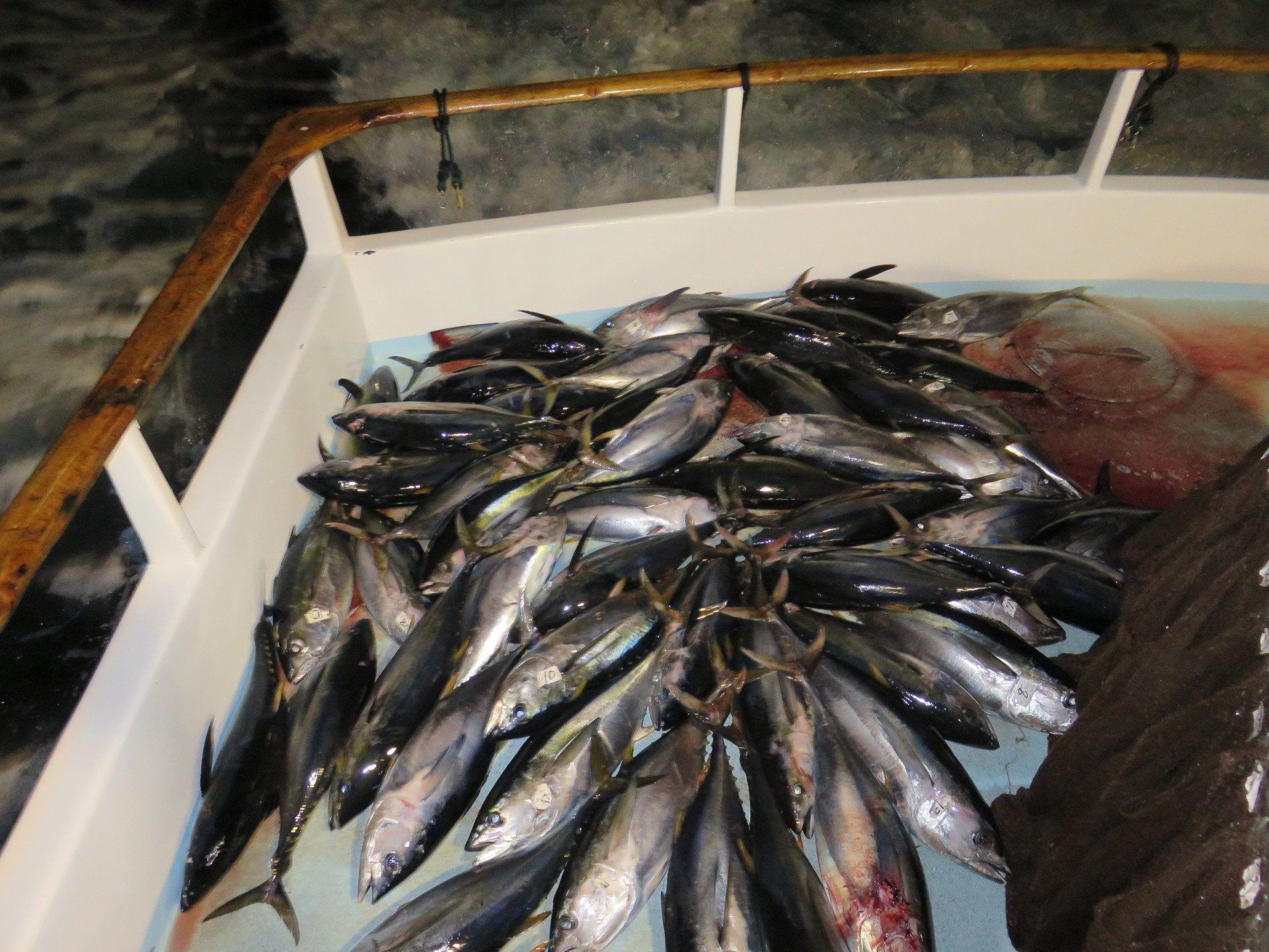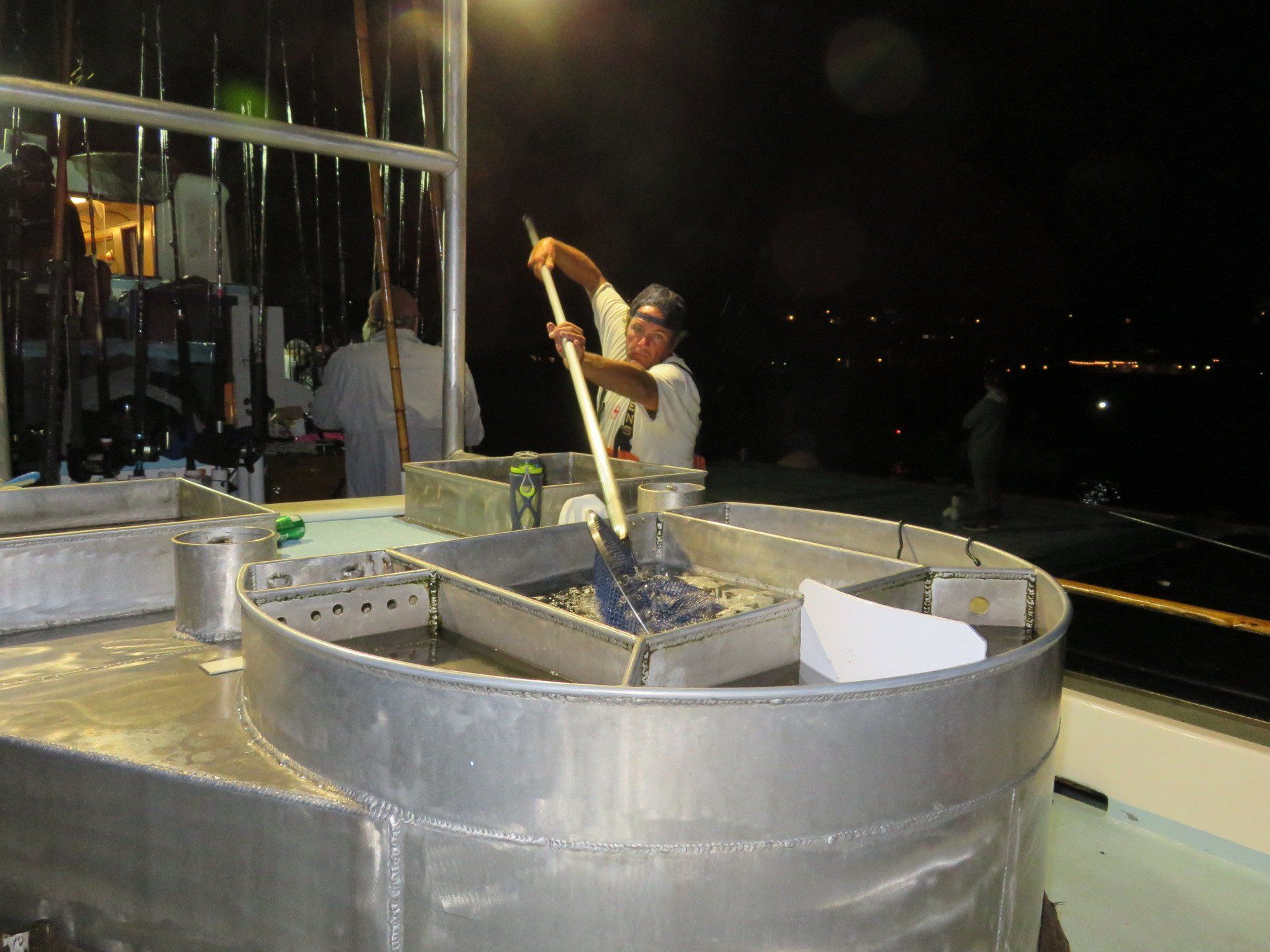 Day 2, morning. We (not this guy, still catchin z's) made bait around 4am and boy was it pathetic. I believe the end count was 4 squid and 4 or 5 macks...which really sucked because all of our healthy bait from yesterday was either used or on it's last fins.