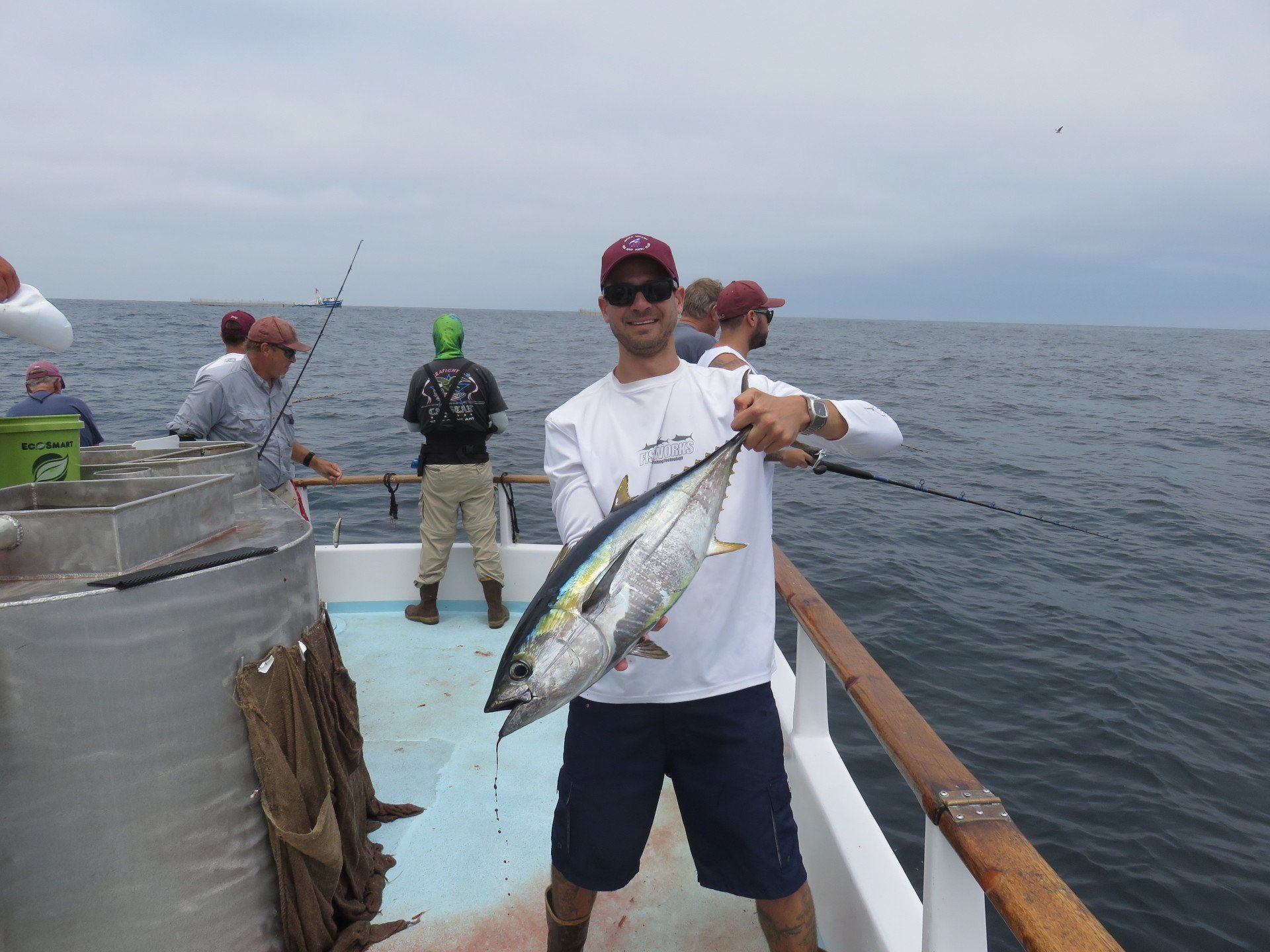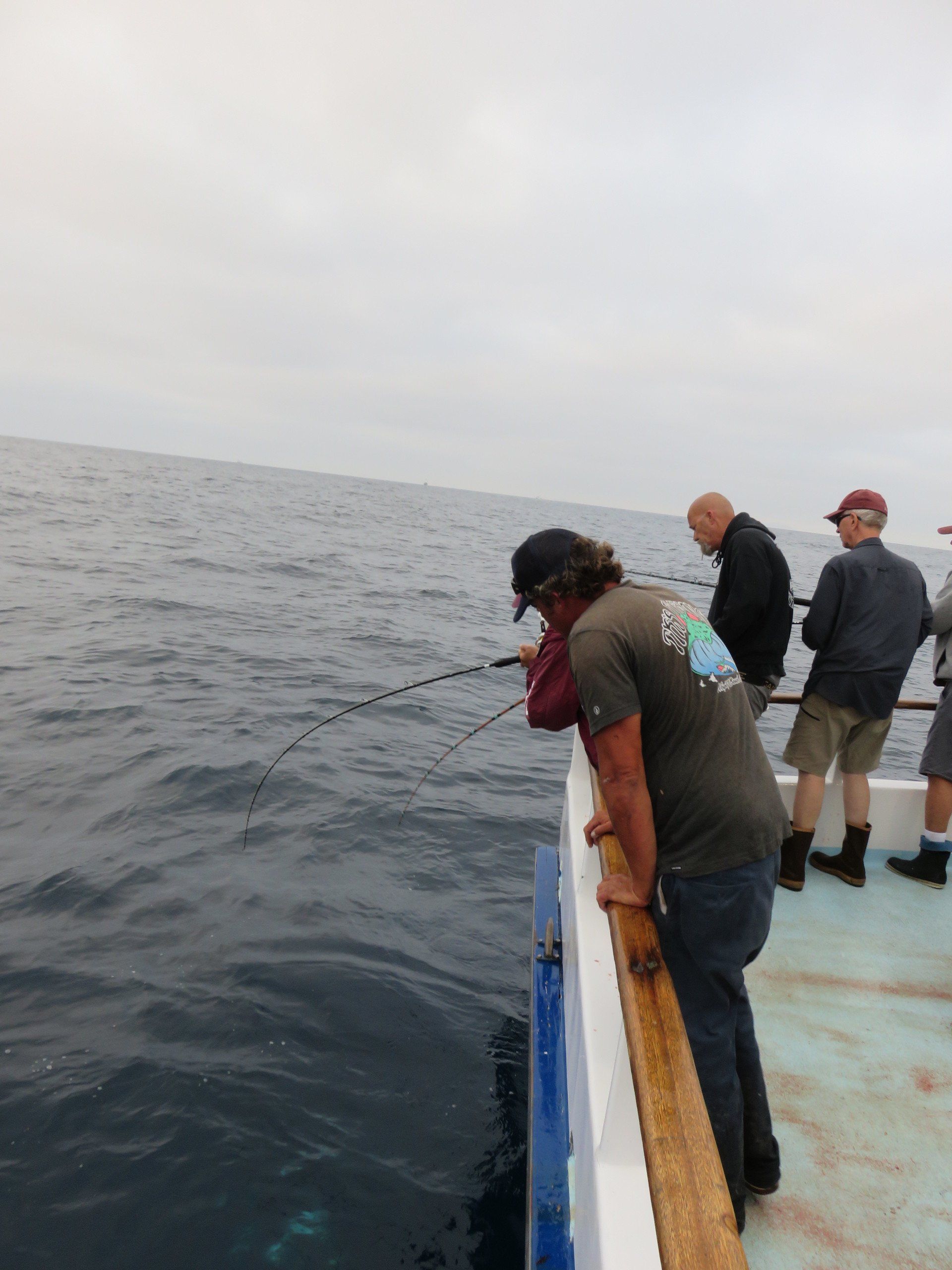 Trip #3: Boat: Thunderbird 2 day Departs: Thursday July 24 Fishing: July 25 and 26 Returns: July 26 pm Trip 3 started as usual with people arriving at Newport Landing at all hours of the day and anticipation for fishing high. The preliminary reports from Gary Thompson were not great. Bait was going to be an issue. Anchovies were sick, too hot for squid, and no sardines. Nevertheless, everyone was ready to go. Due to some late cancellations (bummer), there were 21 passengers on the trip. Gary gave the pre-trip update before boarding with the news that we would make the ride down to Dana Wharf, where there were good sardines for bait. That was the good news. The bad news was that it was going to be a bumpy ride out and wind was going to be an issue, and we probably wouldn’t make it to San Clemente Island. Our initial destination would be Catalina. So, at 9pm off we went. Friday morning saw us anchored at China cove at Catalina. I haven’t been with the club long, but my understanding from some of the older members is that the club hasn’t fished Catalina in many years. I was up at 3:30ish and there were a few hearty souls trying to make squid bait. 2-3 at a time on squid jigs, and eventually we had a decent amount of squid to go along with the sardines. Possibly a good sign. Gradually all the fisherman got lines in the water, with most people dropping down by 5am, waiting for the fish to bite. Well, the yellowtail and white seabass were a no show. We did have a pretty incredible black seabass bite. A total of 6 were hooked, 3 broke off, and 3 were landed (all by Jim Bertella) and released. At 7:30 Captain Chris decided to make the move over to San Clemente Island. We looked for kelp patties and bluefin on the way. Again, fish were a no show (there’s a theme happening here). Made it to Clemente about 11:30. We spent the rest of the day fighting winds at Clemente. Most of the fishing was close to the island with catch and release calico fishing, although a few nice ones were kept. A few small yellowtail were caught on bait, and one on a surface iron. On any other trip these probably would have been released, but beggars can’t be choosers. Final count for day 1 was 9 yellowtail. Gary Thompson won jackpot. We anchored at Clemente for Friday night. Overnight the squid came up and we woke to plenty of squid in the bait tanks. We started fishing early Saturday morning by dropping down for yellowtail. Once again, the fish were a no show. It wasn’t for lack of trying. All the passengers dropped lines and were giving it the best effort. Enthusiasm remained high. A small halibut was caught, along with a few barracuda. At 7:30 we pulled anchor and started looking for bluefin. At 8, a small bluefin was caught on the troll by one of our guests. No other fish were willing to bite and we kept looking. No luck. At mid-morning, Chris set us up for some rockfishing drifts. Most of the fish caught were salmon grouper, but people at least had a shot to fill their bags. After the rockfishing, we were back on the troll. We covered a wide area of ground. I believe at one point we may have entered into Mexican waters. We saw no bluefin during the troll. Finally, we had to start heading back to the landing. As we were heading north, we saw one our first and last kelp patty. It would be our last stop for the trip. On the stop, one yellowtail was caught using a colt sniper. Like the yellowtail on day 1, it wasn’t big (generous to call it 8 pounds), but it was a keeper and the jackpot fish (sad but true). Final count for day 2 was 1 yellowtail, 1 bluefin on the troll, 1 halibut, and a couple of barracuda. Brian Drazba won jackpot. Despite the rough weather and challenging fishing conditions. Captain and crew were great as always. Never gave up. And I believe all club members and guests had a good time. We can’t always have great days and it just gets us ready for the next trip. Submitted respectfully, Brian Drazba