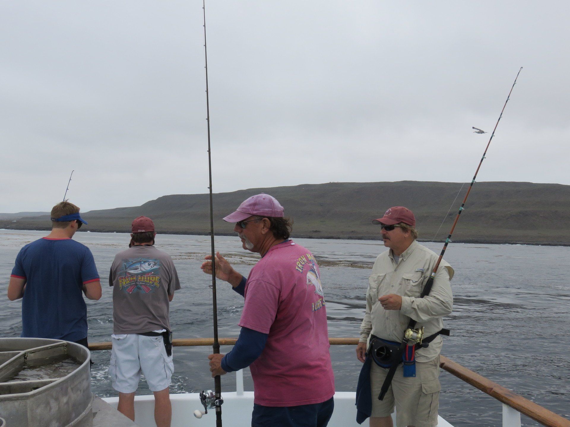 Trip #8: Boat: Thunderbird 1.5 day Departs: Thursday, October 2th Fishing: October 3th, 4th Returns: October 4th pm Thunderbird Crew: Capt. Jeff Capt. Chris Jose Nate Goofy Cast of Characters: Bill Parks Steve Morgan Riley Dyer Jim Bertella Justin Becker Jacob Richards Luke Burson Paul Morgan Mike Allen (Scribe) Patrick Thunyakij Bruce Granse Kevon Kong Michael Harris Ryan Burson Oscar Ochoa Ed Chutney Jeff Allen Andrew Ron Shrout Murphy Parks Romeo Ochoa James Harris Ozzie Baktiari Arriving for a trip in the month of October at Newport Landing is a far easier experience then one would have in the summer months of June – September. The dread of driving through the neighborhood in hopes of an empty space large enough to accommodate the larger trucks that many of the club members own seems to dissipate as the offerings are far more plentiful. While the welcomed views of summer also tend to be less abundant, the ensemble of club members arrived with plenty of time to catch-up on some conversations and enjoy a beverage or two.