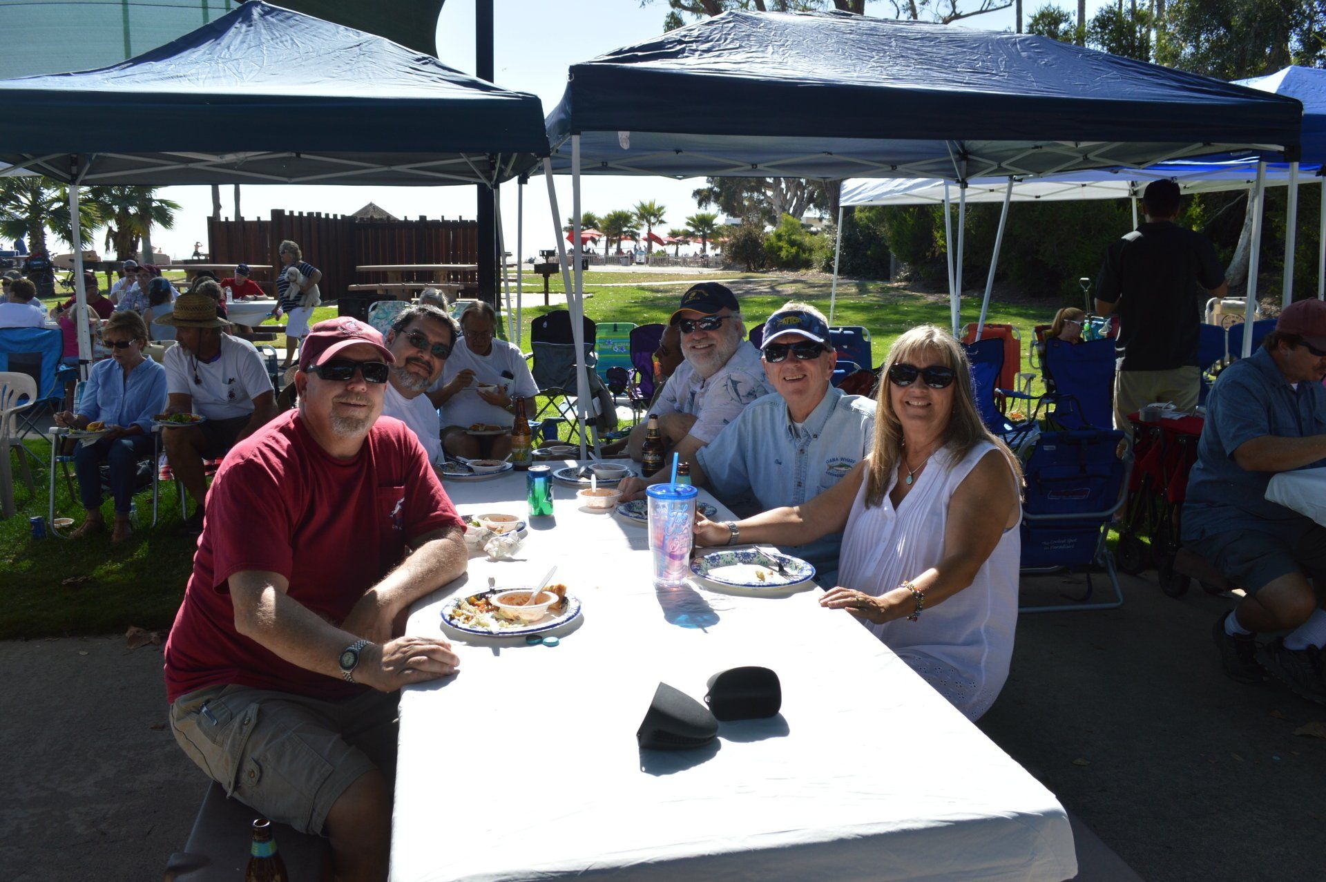Trip #8: Boat: Thunderbird 1.5 day Departs: Thursday, October 2th Fishing: October 3th, 4th Returns: October 4th pm Thunderbird Crew: Capt. Jeff Capt. Chris Jose Nate Goofy Cast of Characters: Bill Parks Steve Morgan Riley Dyer Jim Bertella Justin Becker Jacob Richards Luke Burson Paul Morgan Mike Allen (Scribe) Patrick Thunyakij Bruce Granse Kevon Kong Michael Harris Ryan Burson Oscar Ochoa Ed Chutney Jeff Allen Andrew Ron Shrout Murphy Parks Romeo Ochoa James Harris Ozzie Baktiari Arriving for a trip in the month of October at Newport Landing is a far easier experience then one would have in the summer months of June – September. The dread of driving through the neighborhood in hopes of an empty space large enough to accommodate the larger trucks that many of the club members own seems to dissipate as the offerings are far more plentiful. While the welcomed views of summer also tend to be less abundant, the ensemble of club members arrived with plenty of time to catch-up on some conversations and enjoy a beverage or two.