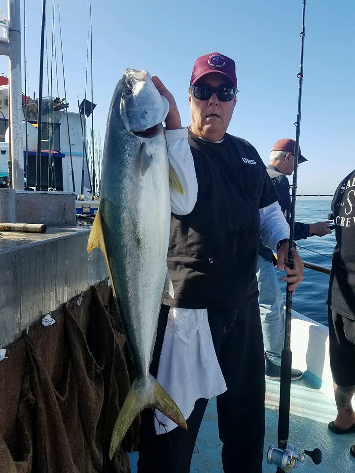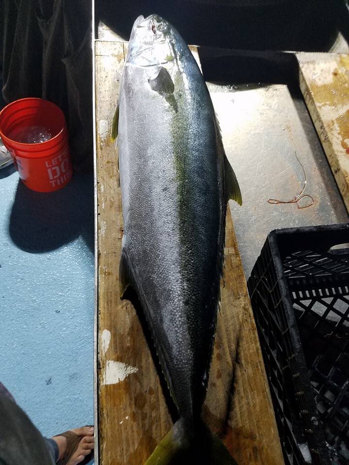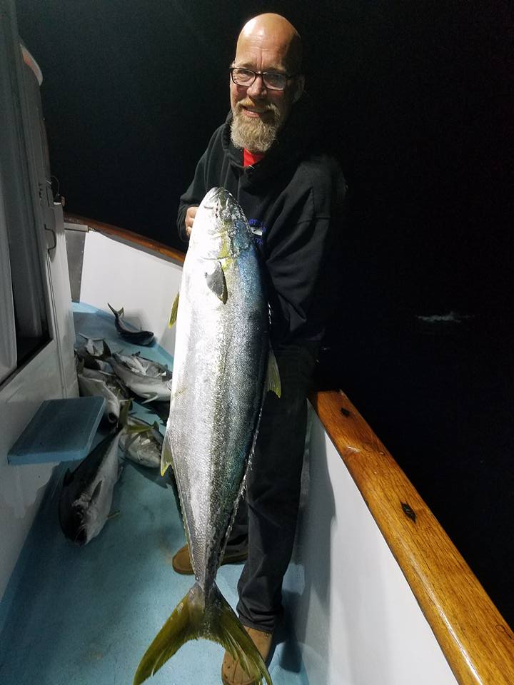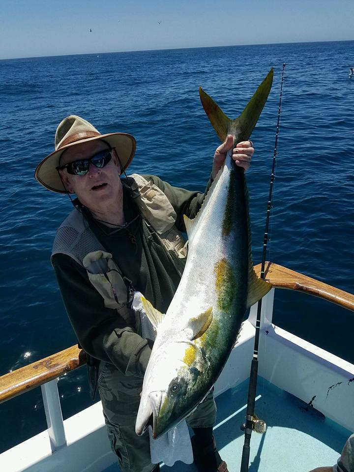 8:00 am- Got 5 scoops of squid from the outrider. Went up the line and did a drift for about an hour. Twenty more yellowtail. Steve- 30.8 pound yellowtail.