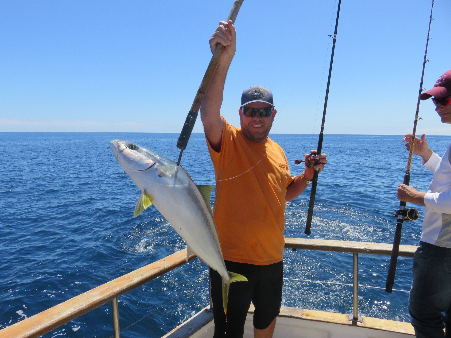 Trip #7: Boat: Thunderbird 2.5 day Departs: Tuesday, September 16th Fishing: September 17th, 18th Returns: September 19th am Thunderbird Crew: Jeff Markland- Captain Steve Raby- 2nd Captain Carmelo in the Galley Jose & Nate on deck The fishing schedule for 2025 has two 2 1/2 day trips and Trip #7 was the second one. Historically the 2 1/2 dayers fill quickly at the Annual Sign-Up Meeting. This was not the case this year as this trip only filled to about half during the Lottery and the rest of the spots were taken by guests. Here are the members who were on the trip: Gary Thompson, Steve Morgan, Mike Barton, Alex Mesko, Mike Higa, Bill Parks, John Lenker, Steve Lenker, Kyle Shimigawa, and Luke Burson (trip scribe). That is 10 members and the other 13 were all guests. The Club owns the following a big thank you for committing guests to this trip because without them this trip would have put a financial burden on the Club of $8,125. And the Club simply does not have those funds so the trip would have been cancelled. A special thank you to Mike Barton with 5 guests, Steve Lenker with 3, Mike Higa with 2, guests, Steve Morgan with 1 guest, Bryan Upcraft with 1 guest, and Luke Burson with 1 guest. And all the guests fit in perfectly and made it a good group to fish, sleep, and eat with for 2 1/2 days. As the trip approached Gary sent out information a week before with information about the trip. At that point the weather looked good and the fish counts were encouraging. As the trip got closer Gary sent out more information with the weather holding plus the Thunderbird getting limits on their weekend 2 1/2 dayer. All were feeling pretty optimistic about two things that had been missing on previous trips……nice weather and good fishing. On the day of departure, the usual members arrived early to ensure that they would board first to secure the tackle spots that are important to them, Others started to drift in throughout the afternoon. All were challenged with parking because of the local Wednesday street sweeping. Some were luckier than others but everyone found a parking spot. And then to our surprise the Thunderbird arrived close to 4 PM and it was obvious why…..very good fishing. To be specific they had back-to-back multi-day trips with limits of BF. And the buzz for all on the dock was pretty strong. They caught the fish at the Cortez, some at night near SCI but most during the day on bait. We asked about the bait and the group did not have good things to say. We quickly put two and two together that the fishing must be pretty good to do that well with poor bait. And another important item……NO STINKING FULL MOON! Jeff indicated we were headed back to Cortez and to save a little time we were going to take the direct course line around the east end of SCI. We’re expecting a flat smooth ride, we quickly learn that our course line had us in the rolley trough. It turned out to be anything but smooth. Our crew for the 2 1/2 trip was Jeff as our Captain, Steve as the 2nd Captain, Carmelo in the galley with Jose and Nat on deck. We have fished with them many times before so we knew we were in good hands for the 2 1/2 days. We stopped to load bait and to our surprise, that bait looked pretty good. The size could have been bigger as it was all medium to small-medium baits but it looked good. That even increased the anticipation of what was to come. As it turned out about 60% turned red while the rest was good bait. For the next two days, you really had to pick through what was in the hand wells to find the good ones. As we rolled into the “Bank” there was a pretty good electrical show to the west from about 3 AM to 5 AM plus some slight rain. And we could see some boats in the distance. We would learn that we would not be alone at Cortez Bank but because of the way the fish were spread out it would not make a difference. Jeff got the anchor down close to the position that they had success on the last trip and it took a little time for the fish to find us……and they did. It was a slow pick for the next 4 or 5 hours. Occasionally we would have 2 for 3 going but most of the time it was one at a time. The conditions were perfect, a strong current in the right direction and some breeze to keep the boat a little crossways to the current. Jeff said the conditions were perfect. As the morning continued there were two ways to get a bite: 1) hot bait close to the boat, or 2) long soak behind the boat. Although detailed records were not kept it seems that the hot baits close to the boat got 4 to 5 times the bites compared to the long soak. This getting bit close to the boat with hot baits was shared with all as it was working great for a few: light line (20#), small hooks (#6 or #8), the best bait in the well, and then give that bait 30 seconds, and if no bite wind in and do it again. And if the bait did not “swim” then cut your losses and wind in to do it again. Some fished that way and were rewarded, others continue to soak their baits. It was a little frustrating that so many were locked into soaking baits when the other method was working so well. It just must be too much work to change baits every 30 seconds and it is easier to soak them behind the boat. The few anglers who changed baits quickly did pretty very well while others did not……that’s fishing. The fish seem to leave us around 2 PM so Jeff decided to go looking in the direction of SCI. By heading back toward SCI we would have a shot at bigger fish at night. We ran all the way back to within 5 miles of SCI and never saw anything on the electronics. When it got dark the effort changed to working the area where the BF had been at night but after about 5 hours of looking without a single mark on the electronics Jeff decided to head back to Cortez to fish the same location we were in that morning. Carmelo prepared an excellent dinner of marinated chicken, basmati rice, and a Greek-style salad. And of course, it was finished 