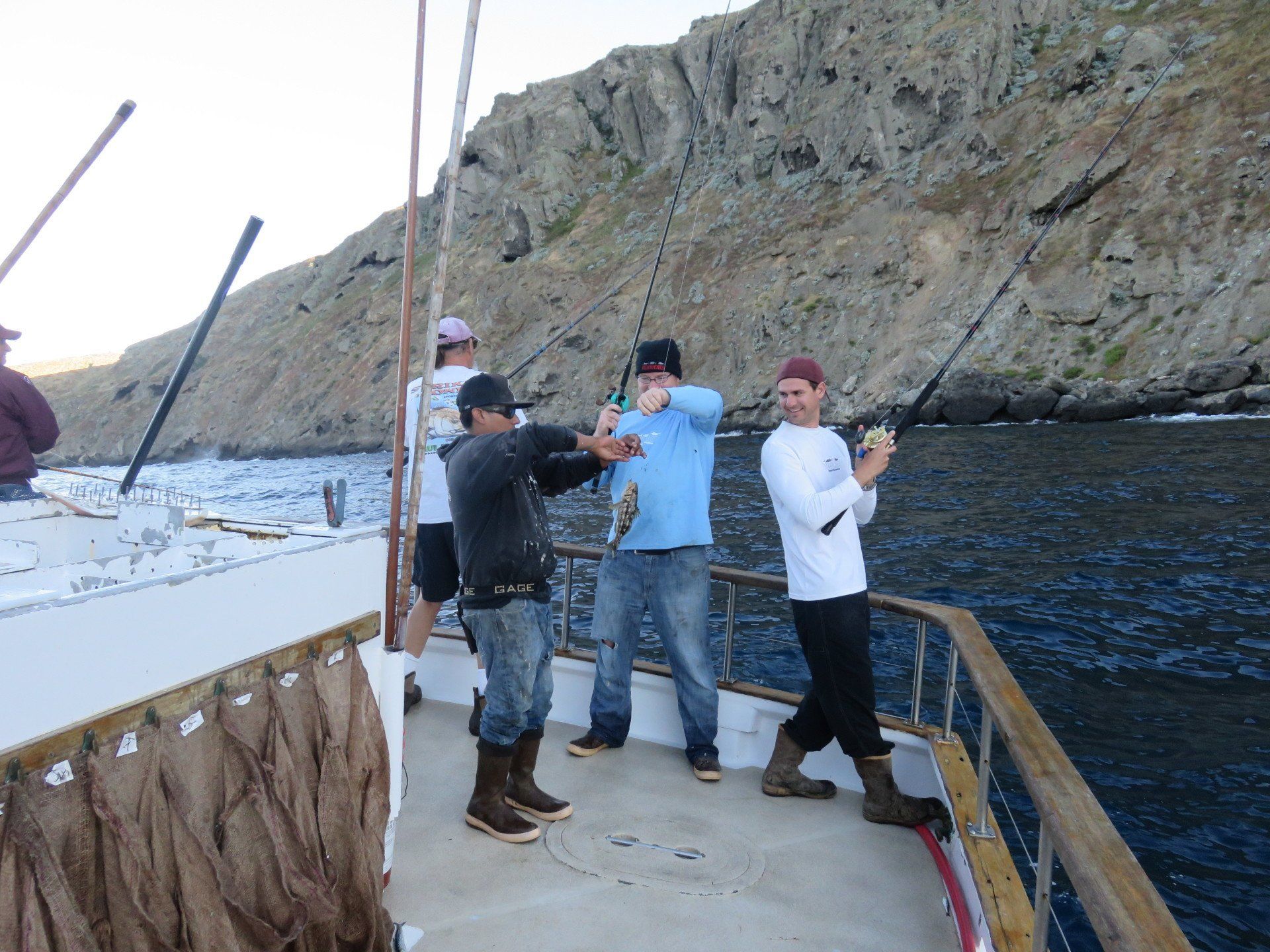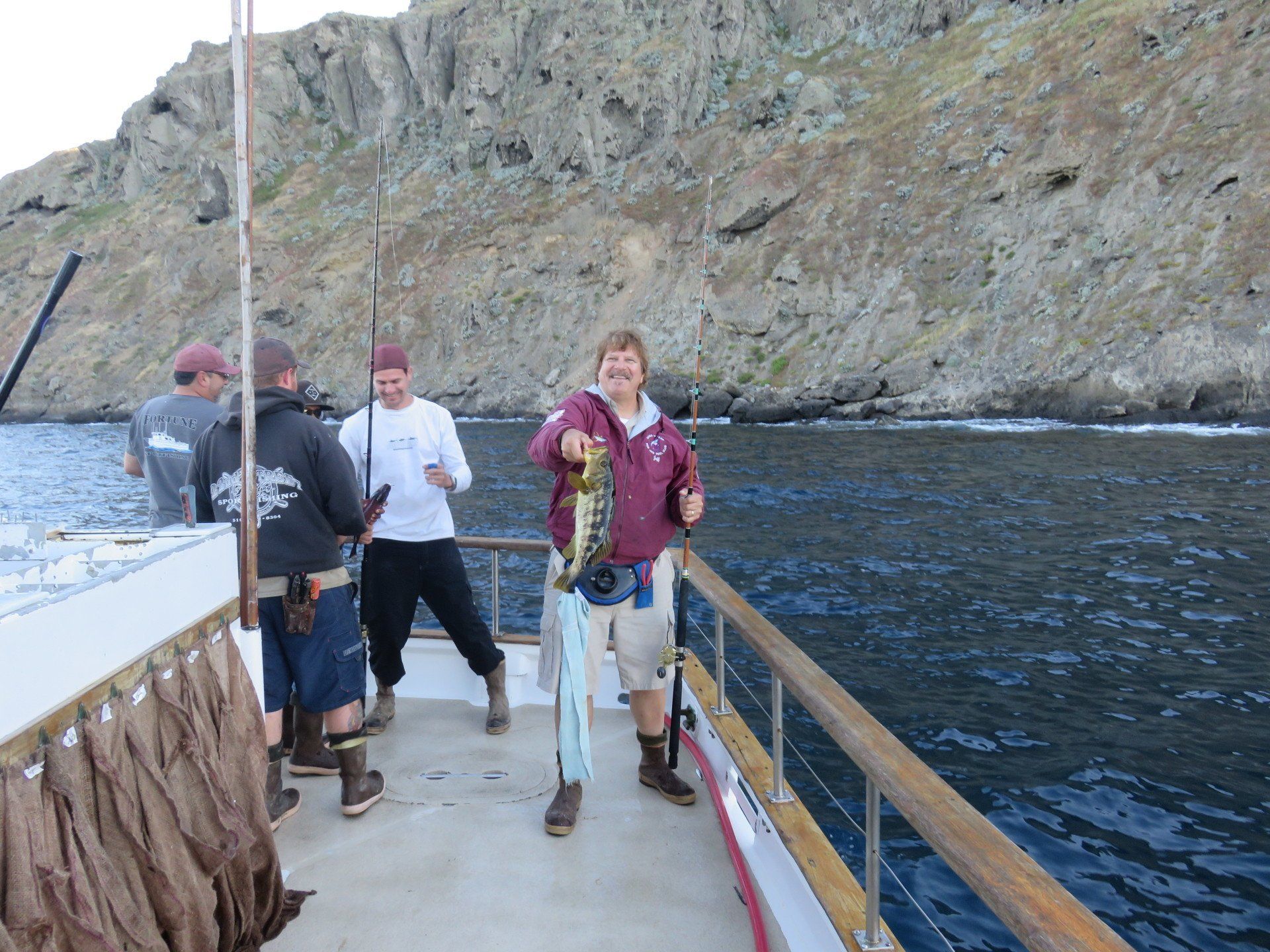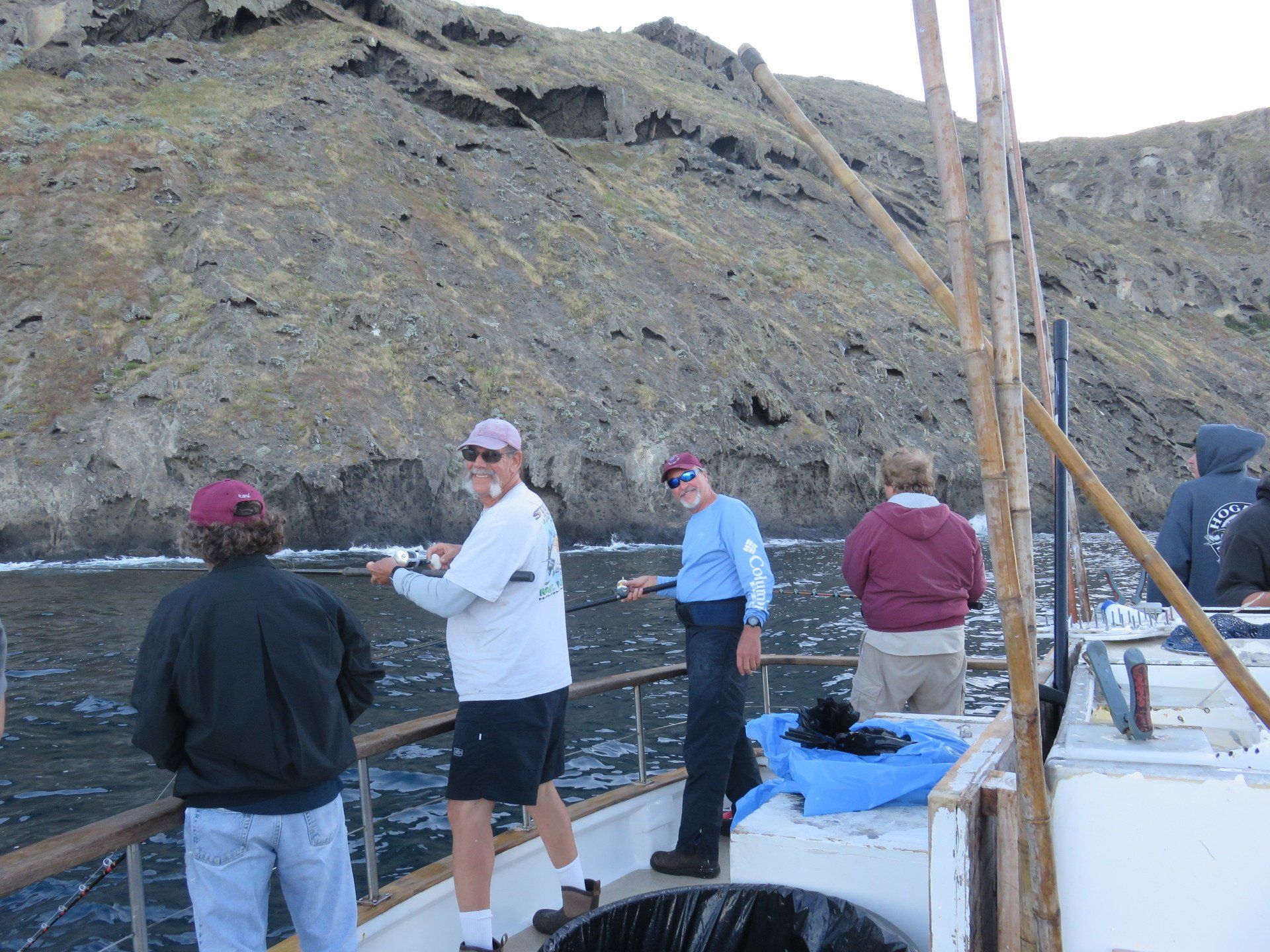 We started out our morning fishing dropper loops in hopes of catching some WSB and Yellowtail. The brave members sat out in the wind and rain until the rain finally lightened up and we picked up anchor. As we worked our way up the island searching for fish we came across big schools of bonito and a few quality sized calico bass. Tony landed the first yellow of the day on a swimbait, but decided to release it. Shortly after a few more yellowtail we caught with Mike and Chris being the lucky members. As we continued our way up the island we came across the thunderbird. A few members decided to moon Jeffrey and crew as we passed by. For the rest of the day we picked away at the calico bass that felt like biting, and caught plenty more bonito.