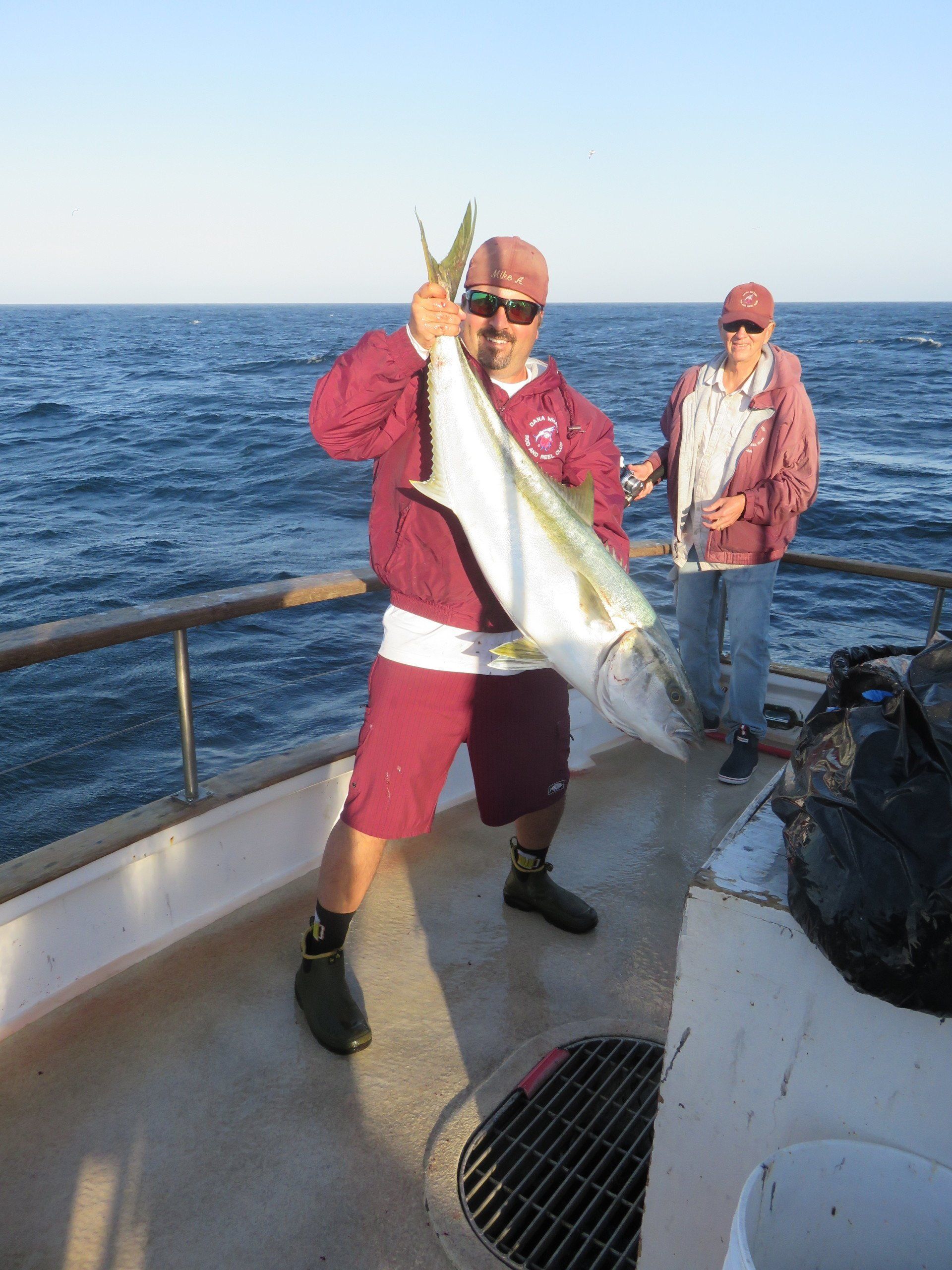 Trip #4: Boat: Thunderbird 2 day Departs: Thursday August 7th Fishing: August 8th, 9th Returns: August 9th pm Trip 4 started as usual with people arriving at Newport Landing at all hours of the day with anticipation of fishing. The preliminary reports from Gary Thompson were all too familiar to what we’ve seen this year. Bait was going to be an issue. And last but not least, was the fish seemed to pop up one day and then disappear the next. Nevertheless, everyone was ready to go. Friday morning saw us anchored at the usual cove off SCI. Weather was OK; fishable, but not a lot of fish. But the ones we caught were quality yellowtail and white sea bass. The sea lions provided ample entertainment …err I mean frustration. We hopped around to a few spots picking up the occasional calico but not much. Day 1 jackpot went to Alex Arthur (Justin Becker’s Guest) with the patch going to Nick Burson for some chunky YT’s Day 2 started much as it did Day 1 but the weather was worse than Day 1. We looked here and there with only 3 yellowtail to show for our efforts. Eventually, the Thunderbird turned towards offshore waters to try our luck at some bluefin. Unfortunately, the fish didn’t get the memo and we saw neither sign or had any bites. Mr, “Hey that’s my fish” Tom Hill was the lucky jackpot and patch winner for Day 2 with a 15# YT. So, there you have it, not a, “Hey you missed a great trip” kind ‘a trip but per usual, the members of our club all seemed to enjoy doing what we do. It’s not always about the fish; it’s about the people and the experience. LOL! Who am I kidding…we all want more fish. Until next time, step to the right/left and take up your slack.
