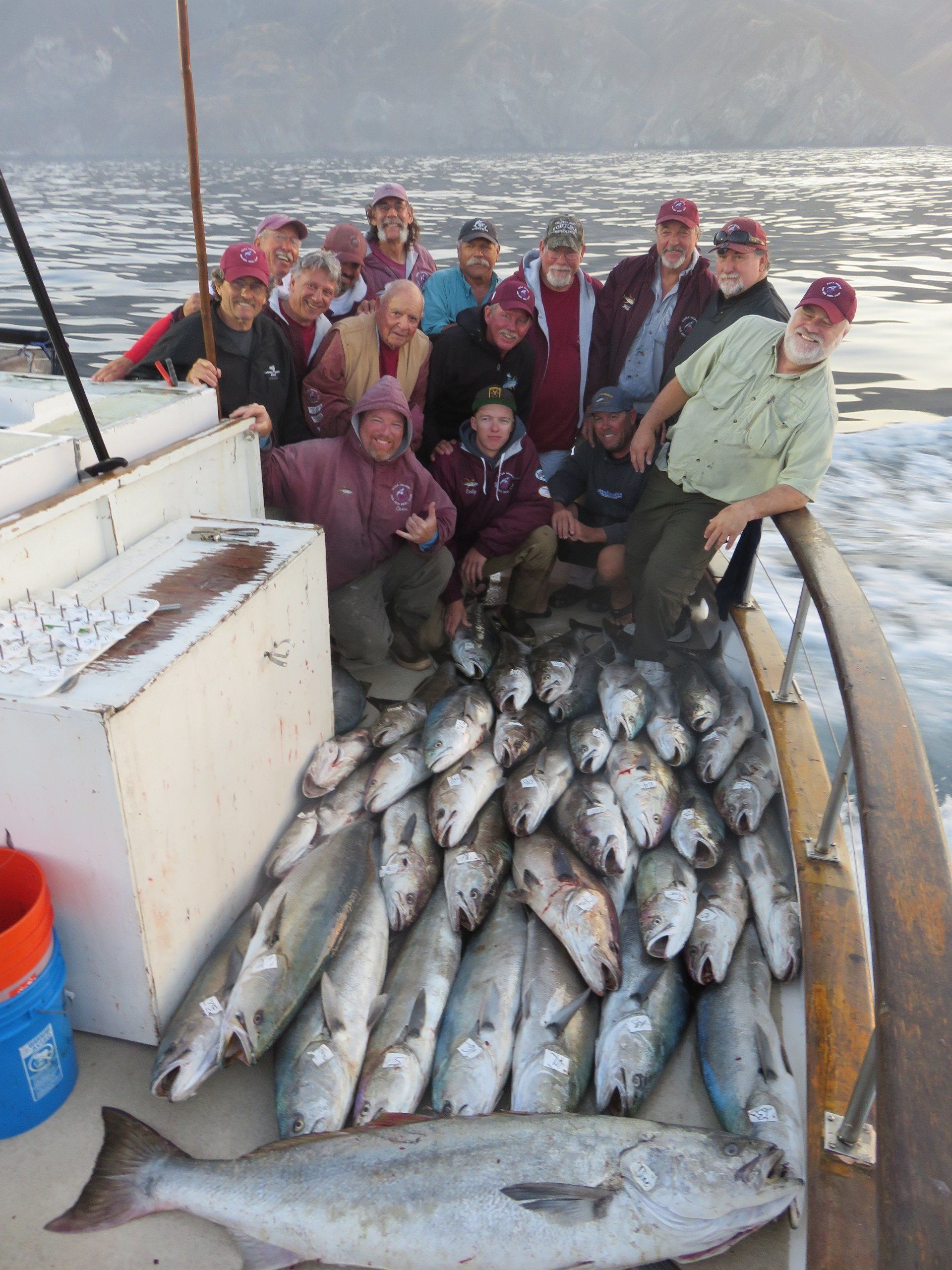 Trip #8: Boat: Thunderbird 1.5 day Departs: Thursday, October 2th Fishing: October 3th, 4th Returns: October 4th pm Thunderbird Crew: Capt. Jeff Capt. Chris Jose Nate Goofy Cast of Characters: Bill Parks Steve Morgan Riley Dyer Jim Bertella Justin Becker Jacob Richards Luke Burson Paul Morgan Mike Allen (Scribe) Patrick Thunyakij Bruce Granse Kevon Kong Michael Harris Ryan Burson Oscar Ochoa Ed Chutney Jeff Allen Andrew Ron Shrout Murphy Parks Romeo Ochoa James Harris Ozzie Baktiari Arriving for a trip in the month of October at Newport Landing is a far easier experience then one would have in the summer months of June – September. The dread of driving through the neighborhood in hopes of an empty space large enough to accommodate the larger trucks that many of the club members own seems to dissipate as the offerings are far more plentiful. While the welcomed views of summer also tend to be less abundant, the ensemble of club members arrived with plenty of time to catch-up on some conversations and enjoy a beverage or two.