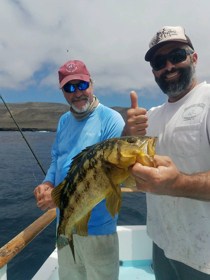 At 1:30 p.m. – we anchor off the Incinerator spot. We continue a steady pick on medium sized calicos and one barracuda (that Jeff prompted filleted for lunch). The kelp here was very thick – but that didn’t stop Luke and some others from asking Jeff to let out some more scope so we could fish literally inside the kelp forest. We continued to pick at the bass…and to get tangled in the kelp for the next hour.