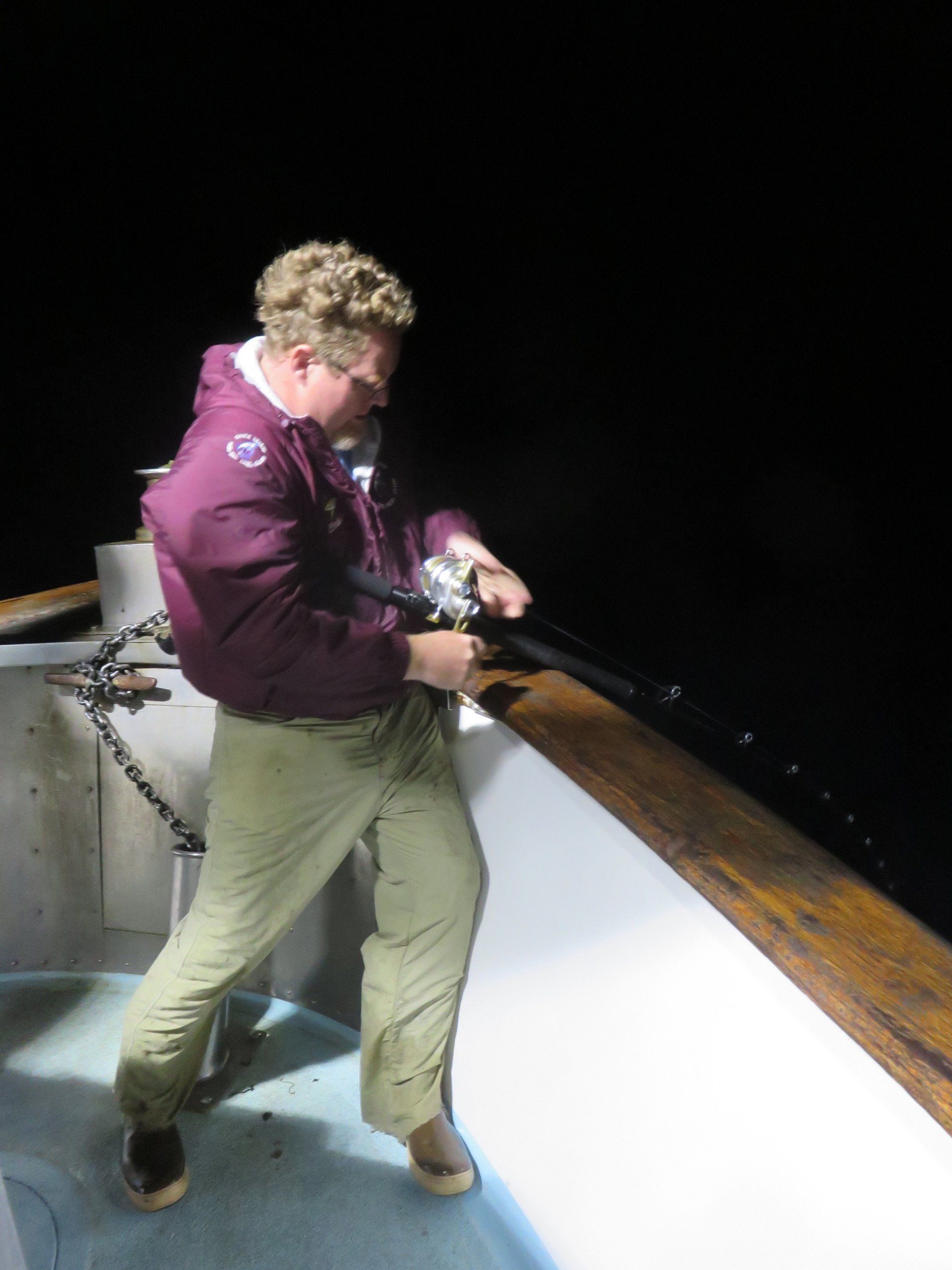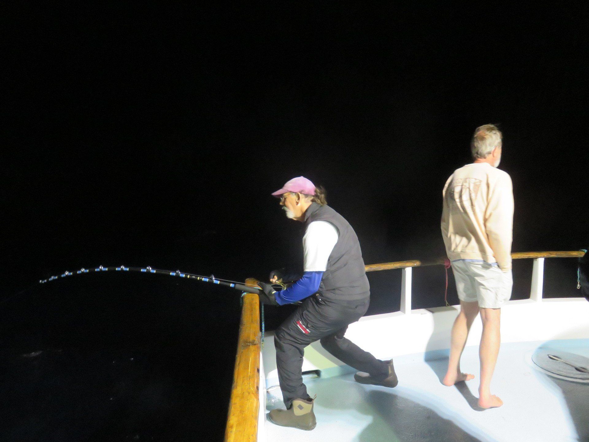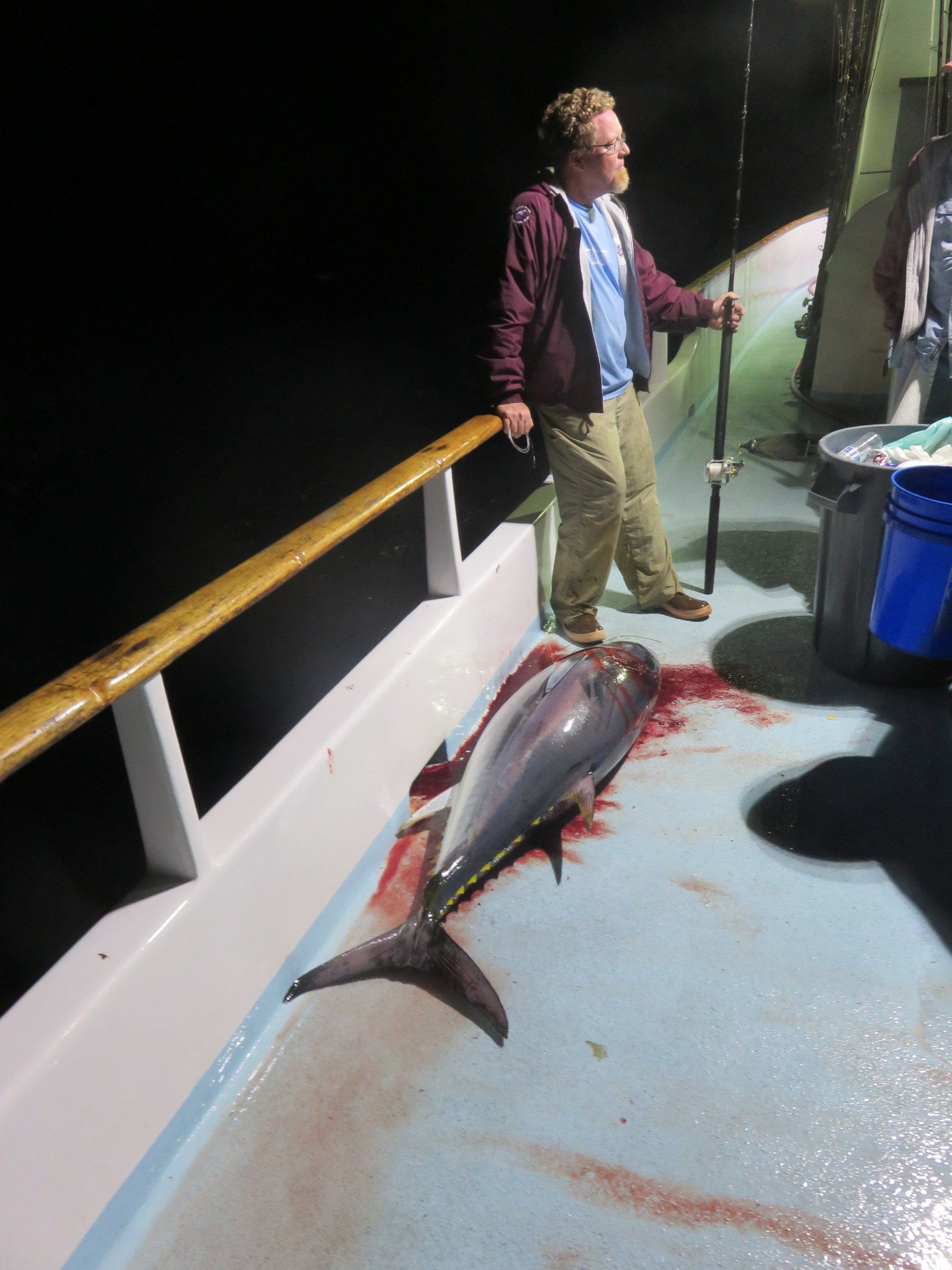 Captain Jeff walks up the ramp to give us a briefing on the latest conditions. Jeff is concerned about the weather outside on the Tanner or Cortez – he thinks recent winds have hurt the conditions. He’s also concerned that the boats that have fished the banks the past 10 days have been getting less fish each trip. The trend doesn’t look good.