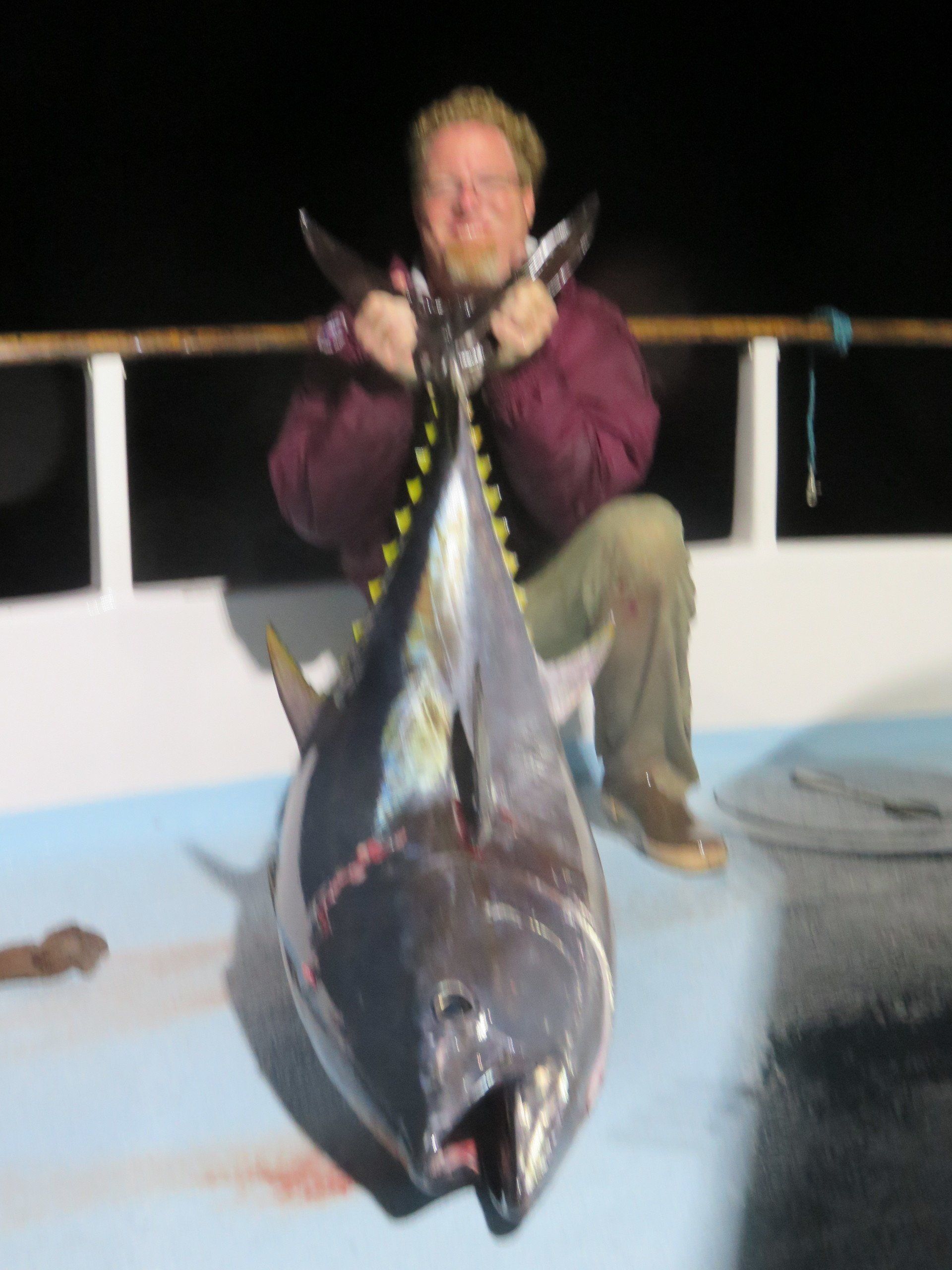 At 2:30 we’re on the hunt heading back offshore to look for big tuna. Jeff wants to stick to the plan.