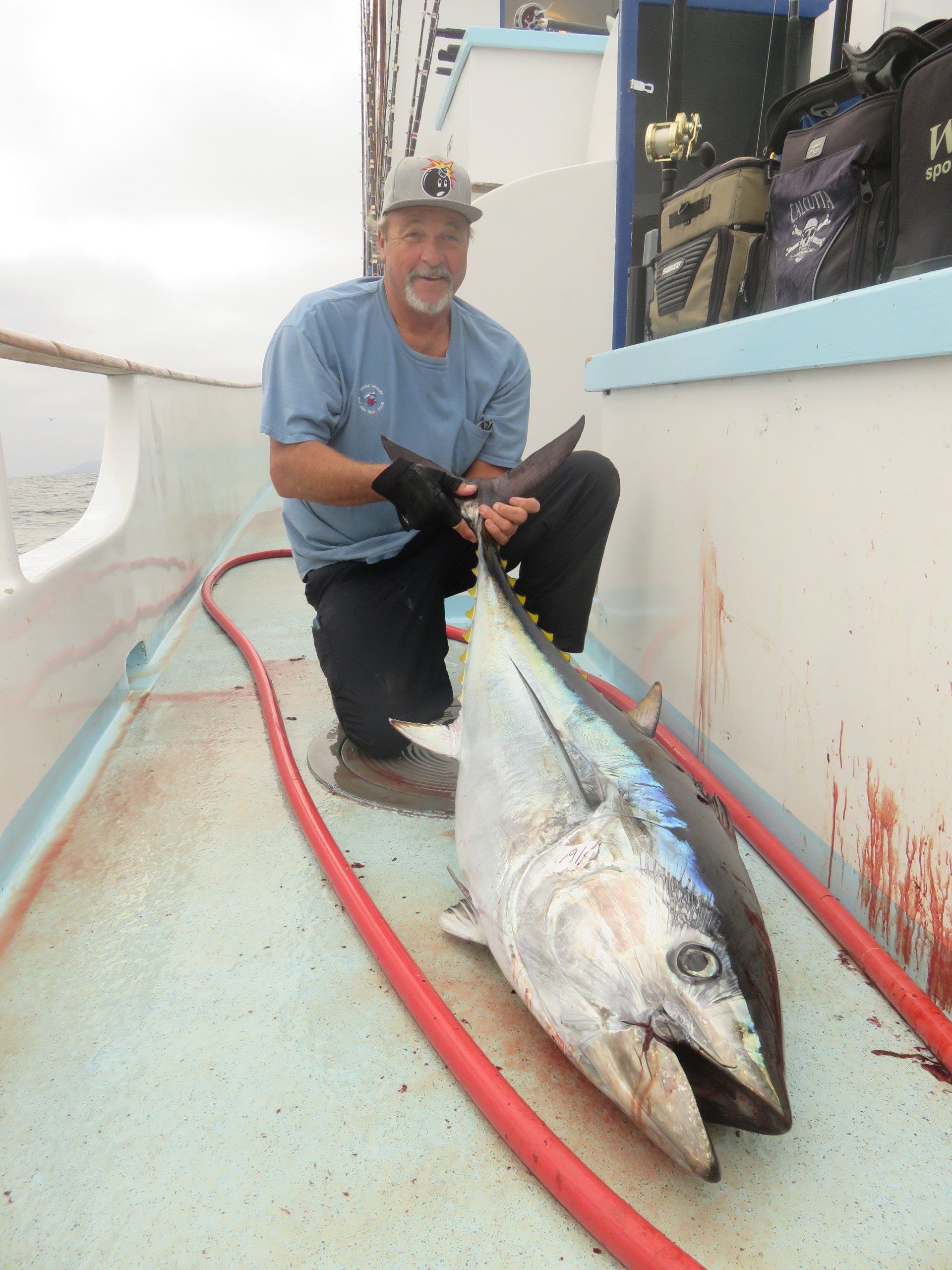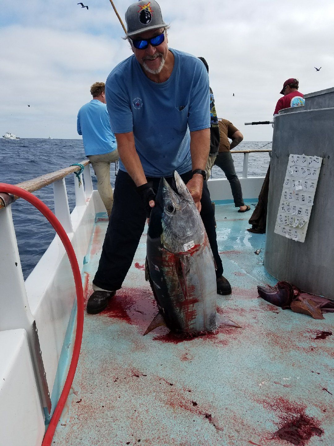 Trip #3: Boat: Thunderbird 2 day Departs: Thursday July 24 Fishing: July 25 and 26 Returns: July 26 pm Trip 3 started as usual with people arriving at Newport Landing at all hours of the day and anticipation for fishing high. The preliminary reports from Gary Thompson were not great. Bait was going to be an issue. Anchovies were sick, too hot for squid, and no sardines. Nevertheless, everyone was ready to go. Due to some late cancellations (bummer), there were 21 passengers on the trip. Gary gave the pre-trip update before boarding with the news that we would make the ride down to Dana Wharf, where there were good sardines for bait. That was the good news. The bad news was that it was going to be a bumpy ride out and wind was going to be an issue, and we probably wouldn’t make it to San Clemente Island. Our initial destination would be Catalina. So, at 9pm off we went. Friday morning saw us anchored at China cove at Catalina. I haven’t been with the club long, but my understanding from some of the older members is that the club hasn’t fished Catalina in many years. I was up at 3:30ish and there were a few hearty souls trying to make squid bait. 2-3 at a time on squid jigs, and eventually we had a decent amount of squid to go along with the sardines. Possibly a good sign. Gradually all the fisherman got lines in the water, with most people dropping down by 5am, waiting for the fish to bite. Well, the yellowtail and white seabass were a no show. We did have a pretty incredible black seabass bite. A total of 6 were hooked, 3 broke off, and 3 were landed (all by Jim Bertella) and released. At 7:30 Captain Chris decided to make the move over to San Clemente Island. We looked for kelp patties and bluefin on the way. Again, fish were a no show (there’s a theme happening here). Made it to Clemente about 11:30. We spent the rest of the day fighting winds at Clemente. Most of the fishing was close to the island with catch and release calico fishing, although a few nice ones were kept. A few small yellowtail were caught on bait, and one on a surface iron. On any other trip these probably would have been released, but beggars can’t be choosers. Final count for day 1 was 9 yellowtail. Gary Thompson won jackpot. We anchored at Clemente for Friday night. Overnight the squid came up and we woke to plenty of squid in the bait tanks. We started fishing early Saturday morning by dropping down for yellowtail. Once again, the fish were a no show. It wasn’t for lack of trying. All the passengers dropped lines and were giving it the best effort. Enthusiasm remained high. A small halibut was caught, along with a few barracuda. At 7:30 we pulled anchor and started looking for bluefin. At 8, a small bluefin was caught on the troll by one of our guests. No other fish were willing to bite and we kept looking. No luck. At mid-morning, Chris set us up for some rockfishing drifts. Most of the fish caught were salmon grouper, but people at least had a shot to fill their bags. After the rockfishing, we were back on the troll. We covered a wide area of ground. I believe at one point we may have entered into Mexican waters. We saw no bluefin during the troll. Finally, we had to start heading back to the landing. As we were heading north, we saw one our first and last kelp patty. It would be our last stop for the trip. On the stop, one yellowtail was caught using a colt sniper. Like the yellowtail on day 1, it wasn’t big (generous to call it 8 pounds), but it was a keeper and the jackpot fish (sad but true). Final count for day 2 was 1 yellowtail, 1 bluefin on the troll, 1 halibut, and a couple of barracuda. Brian Drazba won jackpot. Despite the rough weather and challenging fishing conditions. Captain and crew were great as always. Never gave up. And I believe all club members and guests had a good time. We can’t always have great days and it just gets us ready for the next trip. Submitted respectfully, Brian Drazba