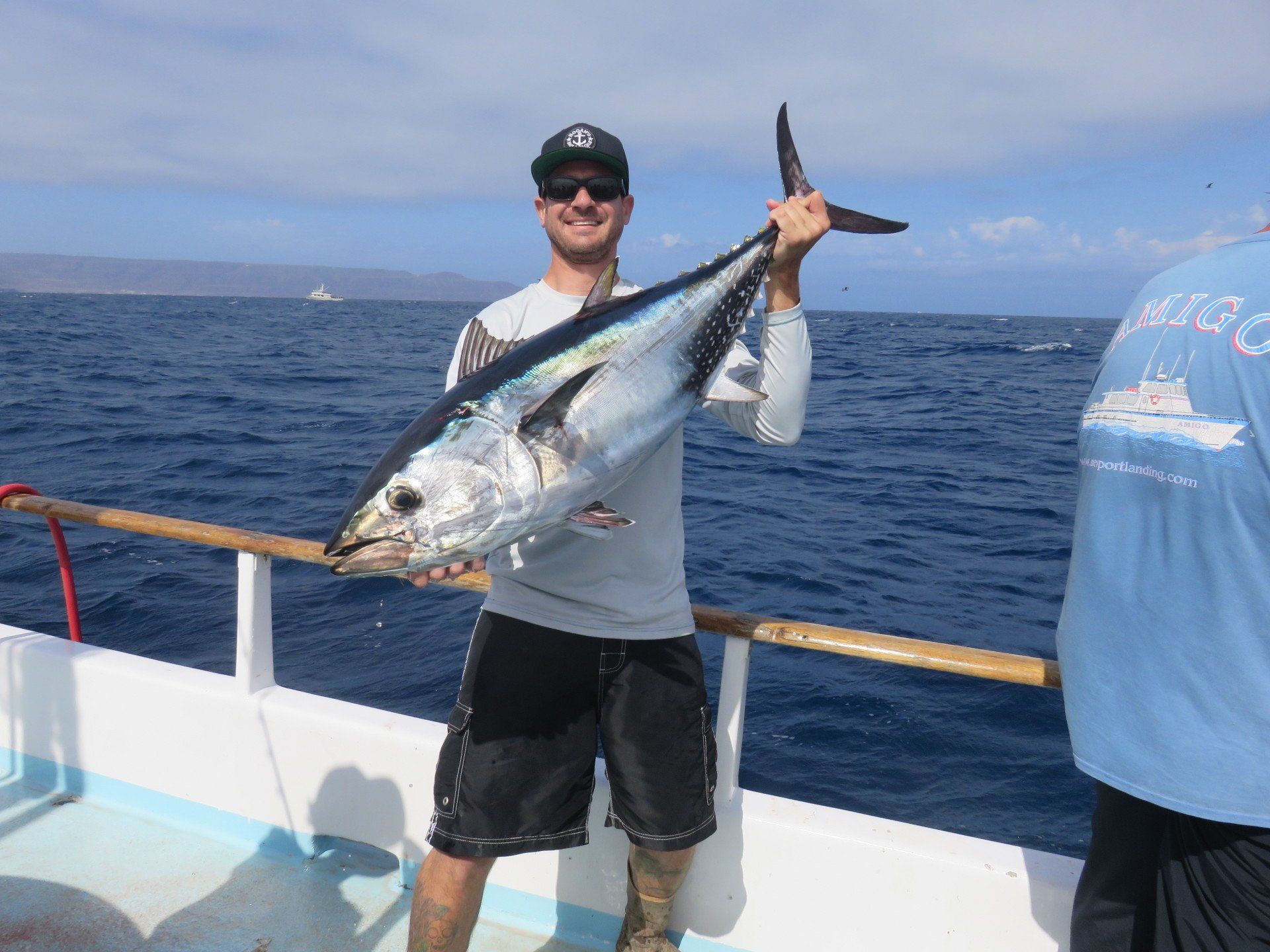 10:00 am – While rounding the point heading to the front of the island we drove past 35+ boats. While driving past we kept an eye out to see if any had fish hooked up. There were a few that were hanging fish, they were the boats closer to the island. We saw one get gaffed, looked like small 15-20lb tuna. We made one stop in front of the fleet, however nothing bit.