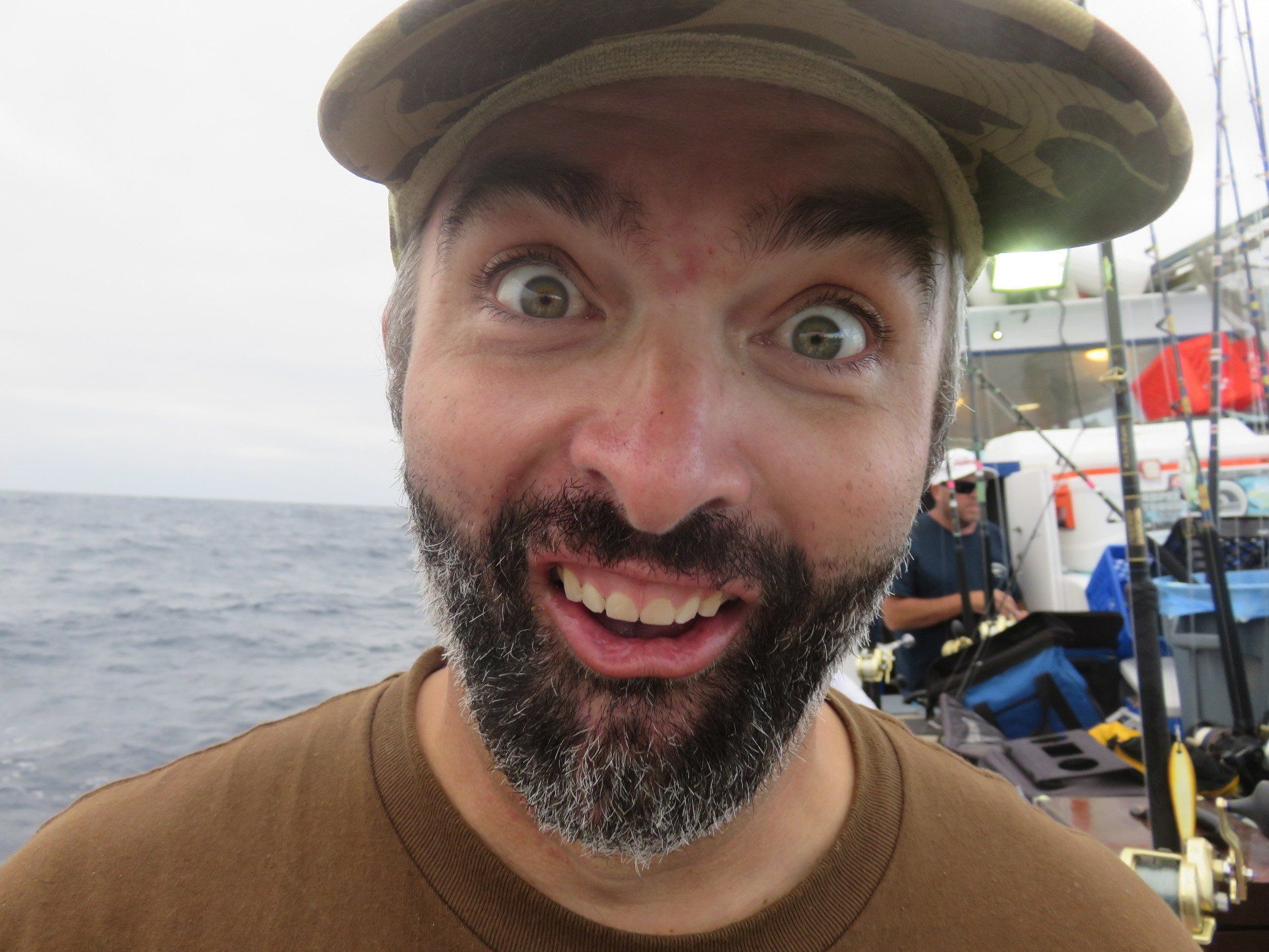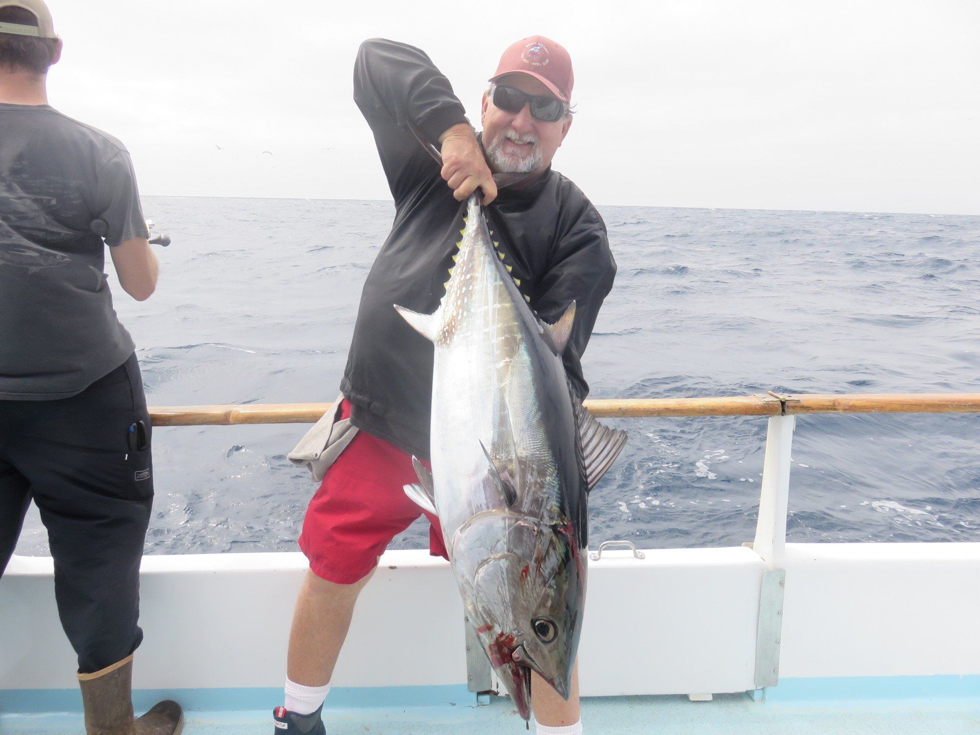 12:30 – We found a spot which metered some fish and proceeded to get the anchor down. The anchor had trouble getting set, and we had to pull it and reset. This time it stuck. For the next 1 ½ - 2 hours we would hook, and lose, 6-8 Bluefin. The first fish on the boat went to Ron Henry, a 30 lb Bluefin. The next fish landed was a 40 lb Bluefin by Mike Allen. Now we were getting with it!