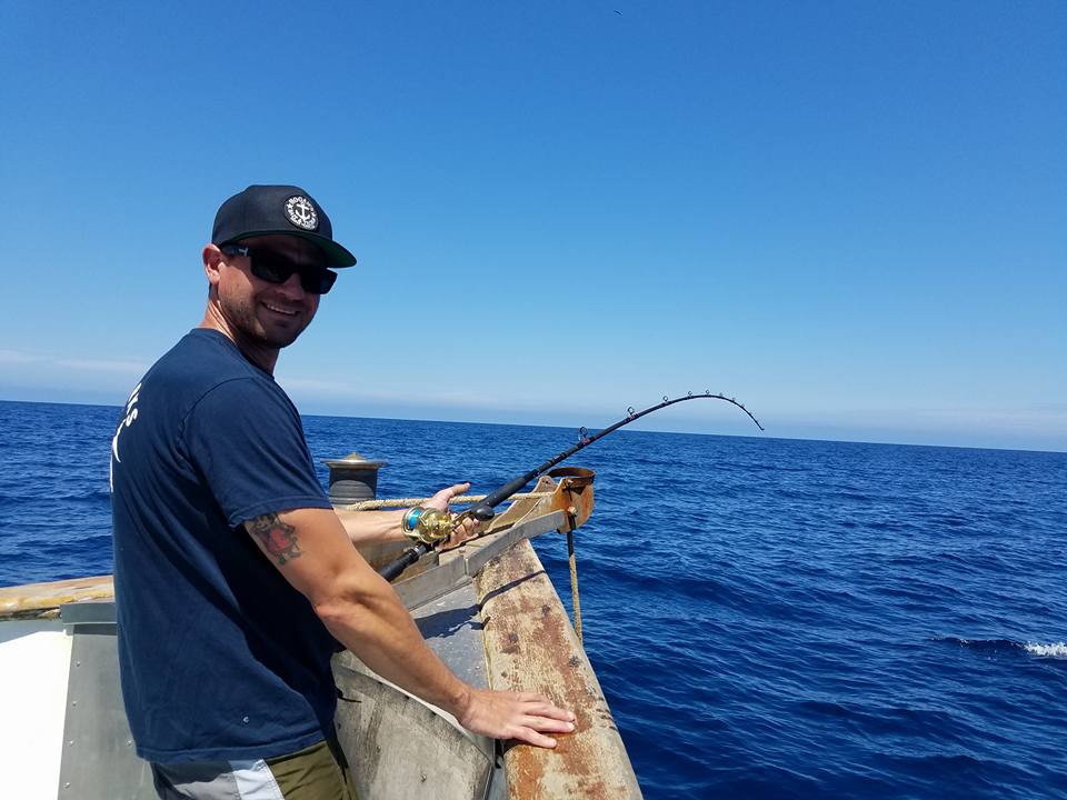 We woke with about 16 boats fishing the area we were the day before. Word had gotten out. As we were driving through Jeff didn’t meter anything worth looking at, so we proceeded to head off the island in search of the bigger grade tuna. We drove around metering fish, with making stops on 3 different marks which none of them produced even a bite. After a few hours we decided to up to the front side of the island to see what we could find. On the way, Trunk released his blowup doll to the sea. Hopefully whoever finds it will find as much enjoyment with it as Trunk did.