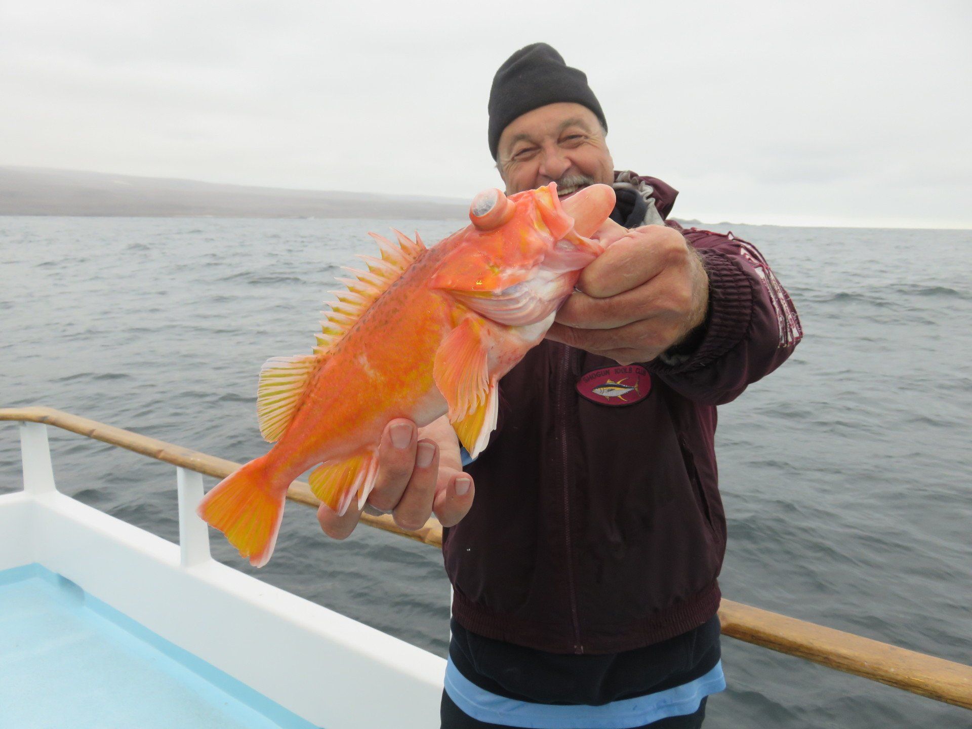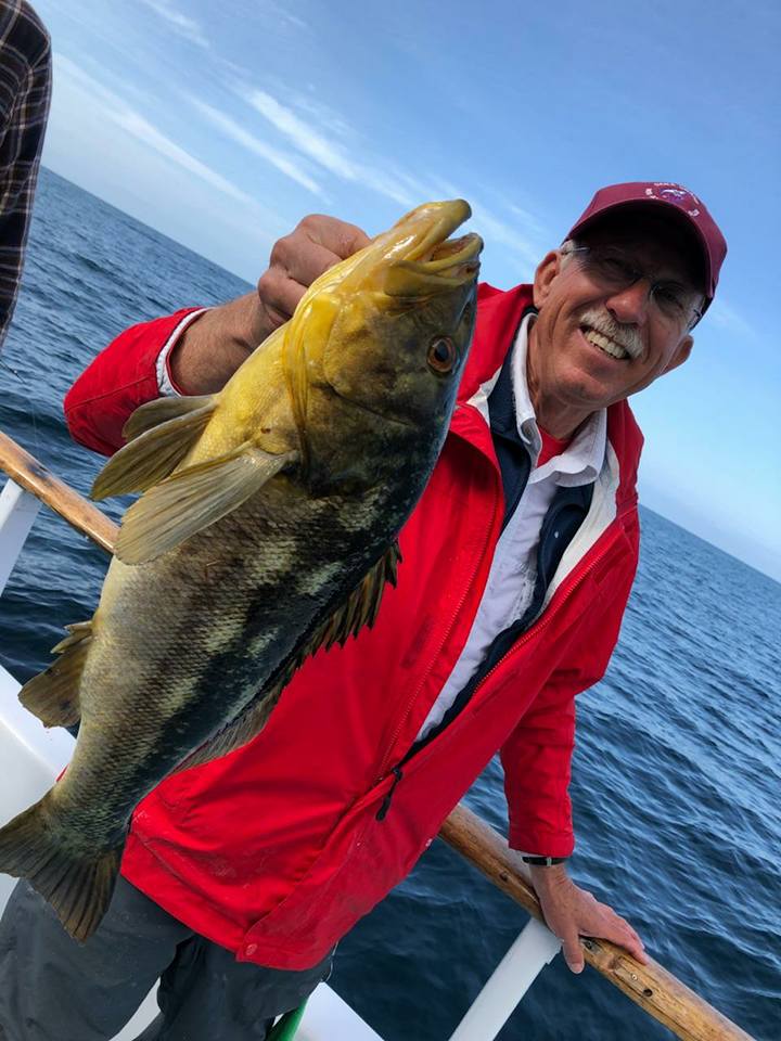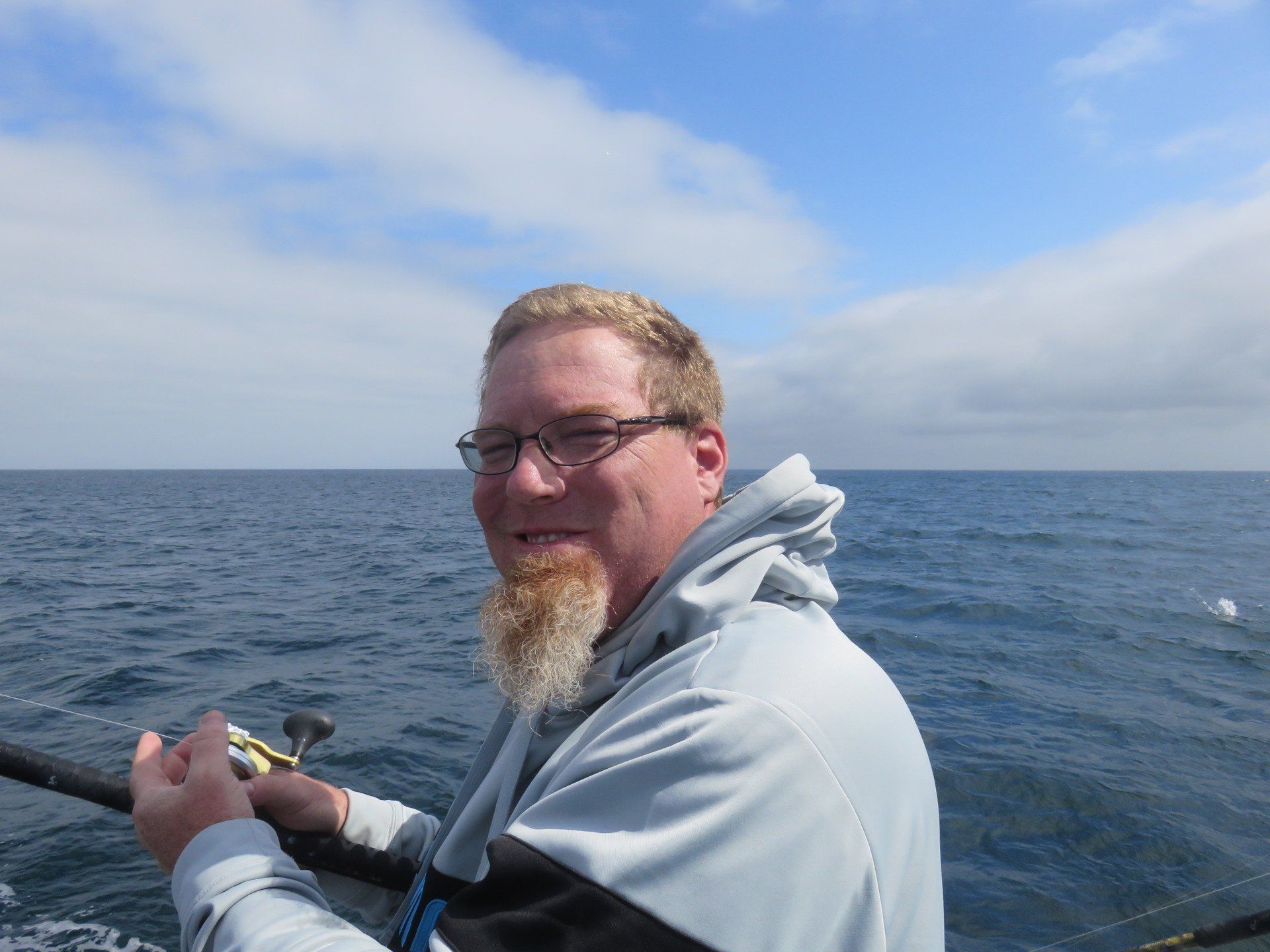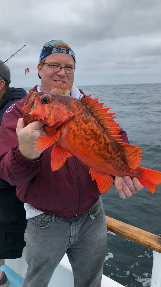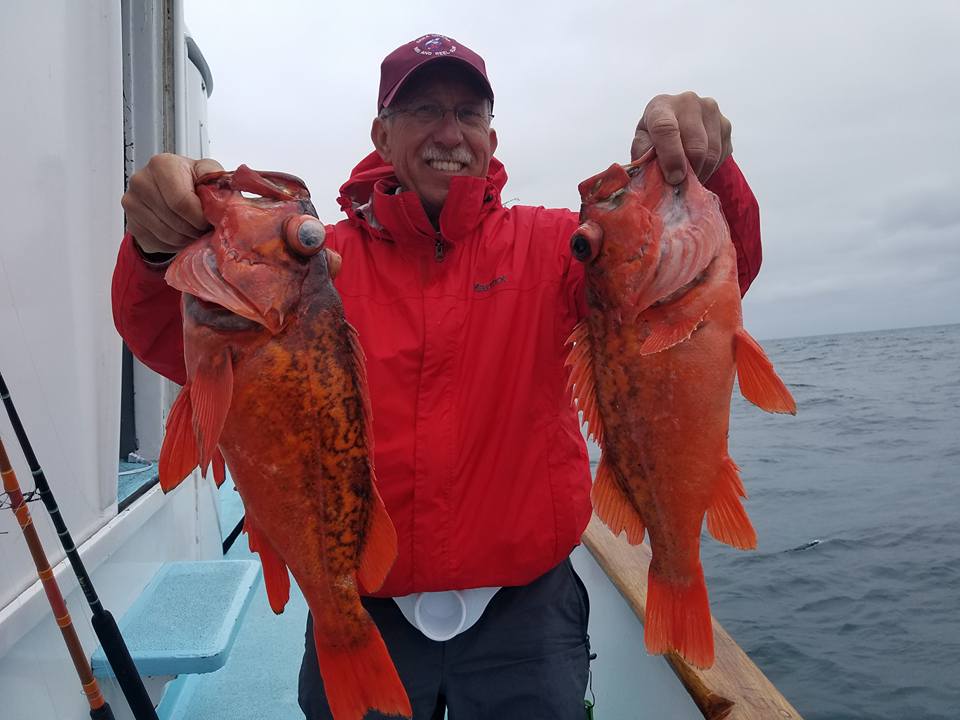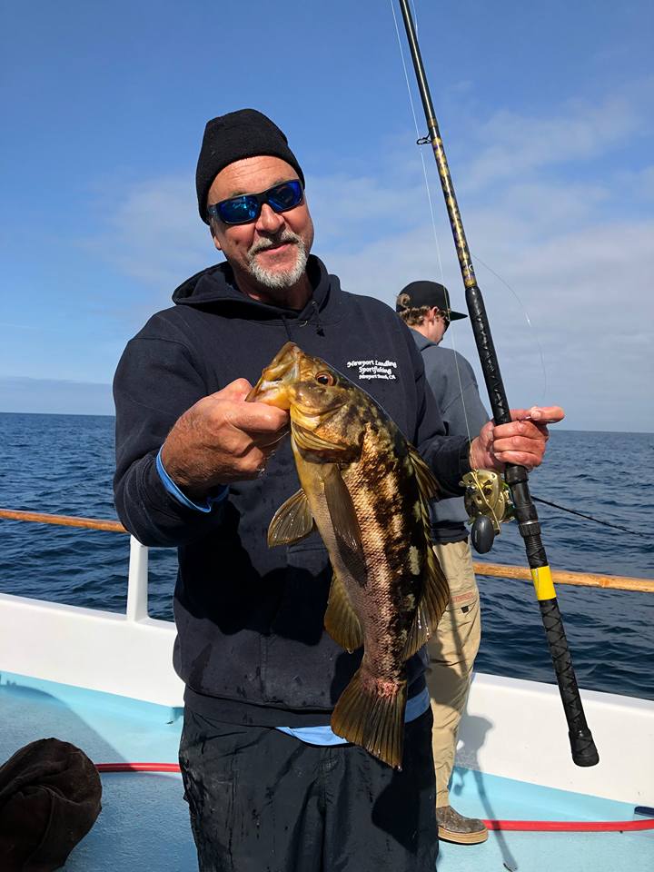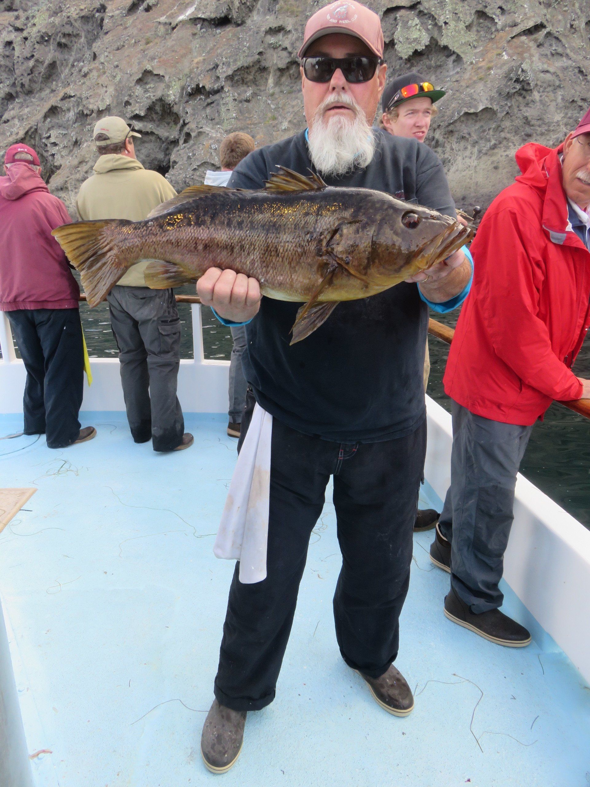 Jeff decided to go a little deeper, and put us on some spots right at “60 fathoms”, the legal depth limit. We found some very good fishing for Reds a few Chuckleheads an Brian Wynne produced a beautiful 16-pound Lingcod. (Jackpot and patch honors.)