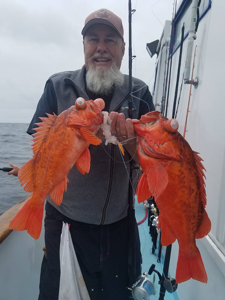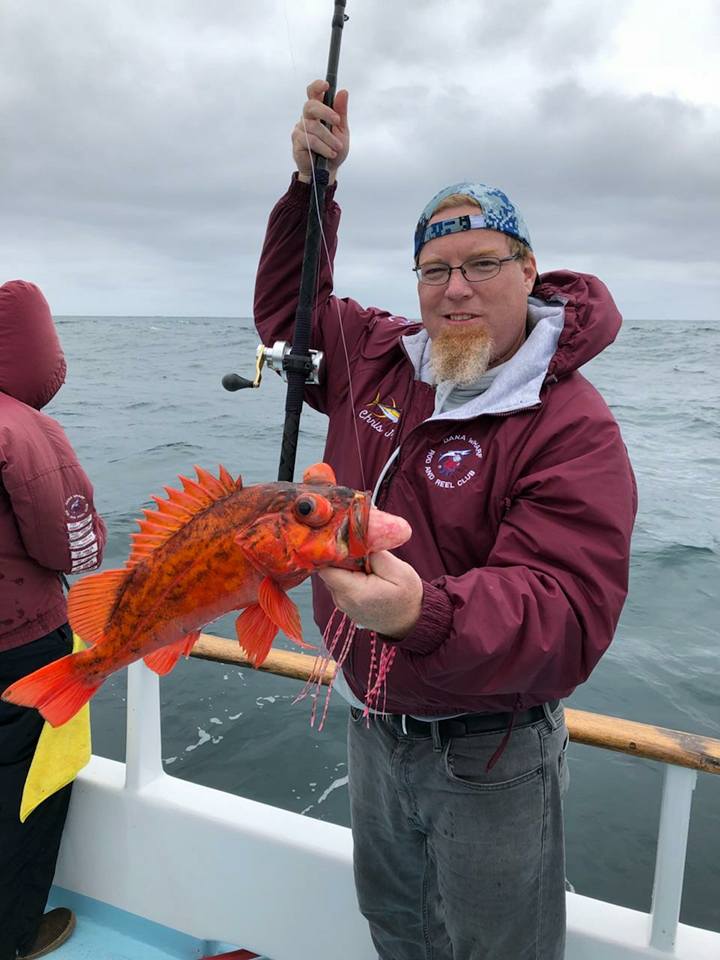The outside weather was breezy but fishable. The wind and current were going in opposite directions and made it relatively easy to get down to the depths we needed to fish. The first couple of drops in 300 feet of water produced a few size compromised rockfish.