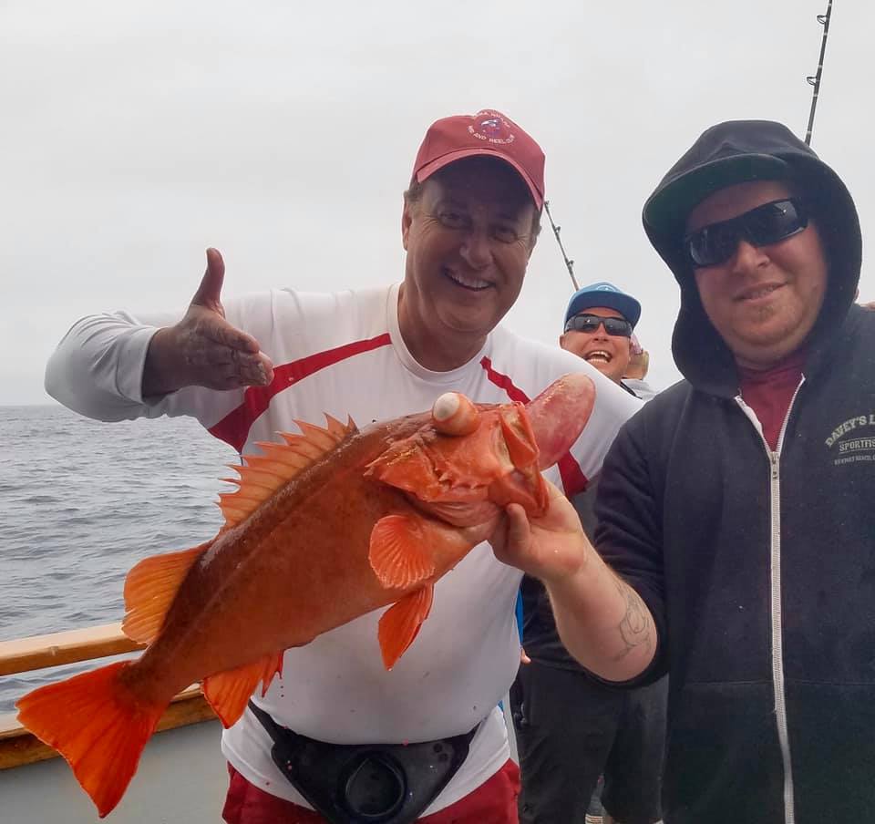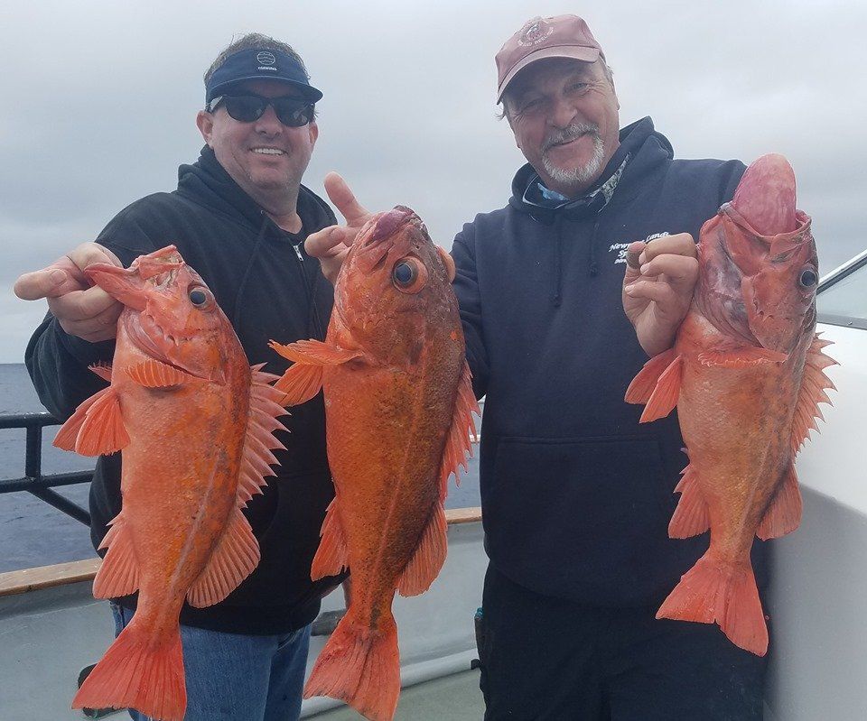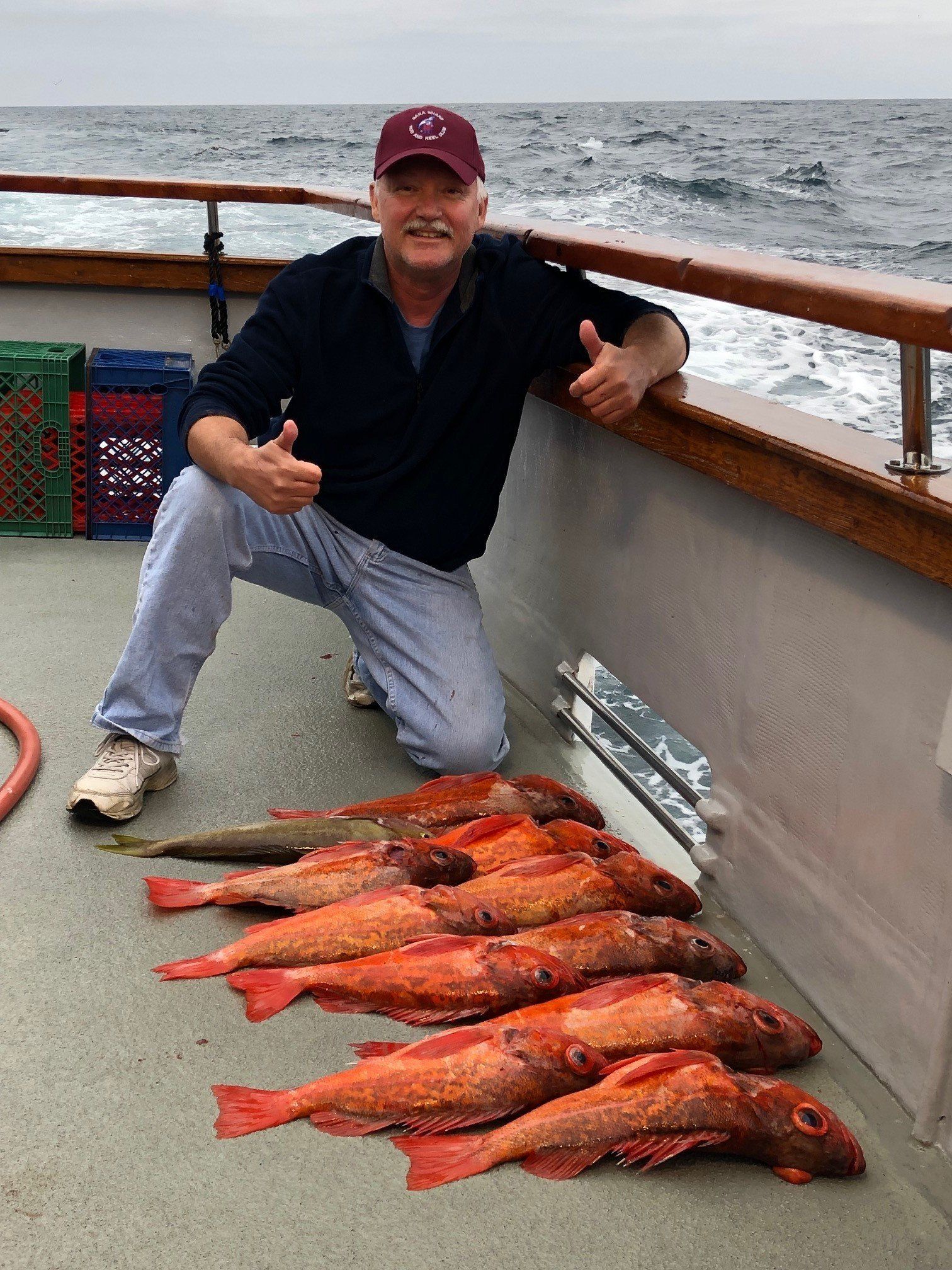 We fished several spots in deep water in various areas, and did well. Drift was very good in the calm water and made fishing deep pretty easy. Very few tangles. We ended up very well with a large quantity of nice Reds, some Chucks and Boscos, and miscellaneous other bottom dwellers. We also added 4 nice ling cod, one each for Parks, Ryan B., Tom H., and yours truly. And those lings were mean. Both Ryan’s ling and mine pulled drag!