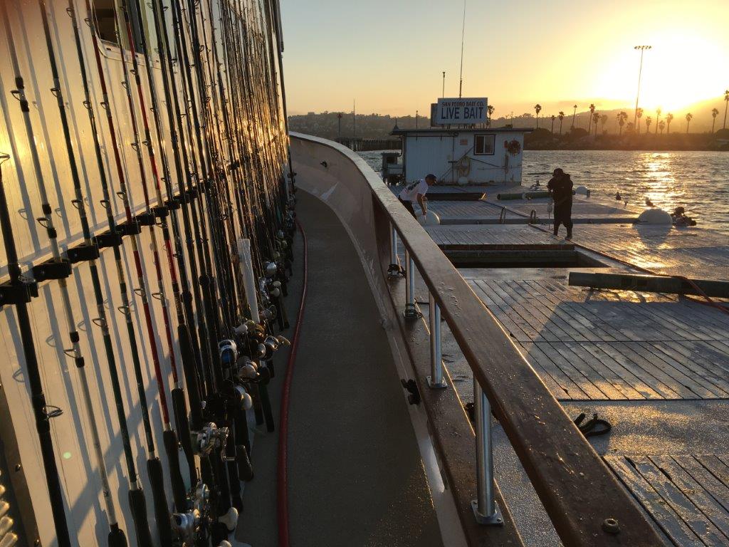 I returned on deck at 5am and heard that all types of bottom feeders had been hooked and released along with one lonely 12” WSB. So all broke down their gear, stored tackle, and sat down for Steve’s breakfast of pancakes and sausage served at 6am as we headed for San Pedro.