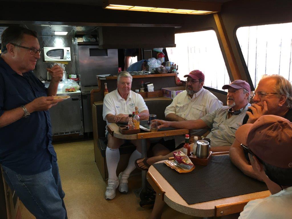 As we pulled away from the dock and headed to the bait barge, Steve provided “Lite Snacks” with emphasis on Lite. This was a bit of a surprise given the pleasant memories of the chilidogs with cheese and onions on the first Fortune Trip. But certainly no one was going hungry and no one would be struggling to survive to breakfast in the morning – I guess Steve wanted us lean and hungry – well at least hungry for breakfast!!
