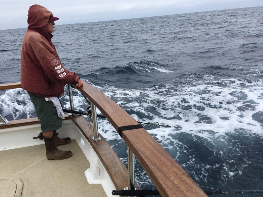 So off we went to the Depression Reef area. During the move all enjoyed Steve’s breakfast of eggs-to-order, bacon, and biscuits’n’bourbon gravy with plenty of coffee on the flat seas of the Lake Pacific. Then humorous and not-so-humorous jokes by Mike Z and Stewart entertained all as many thoughts of YFT and BFT were contemplated.