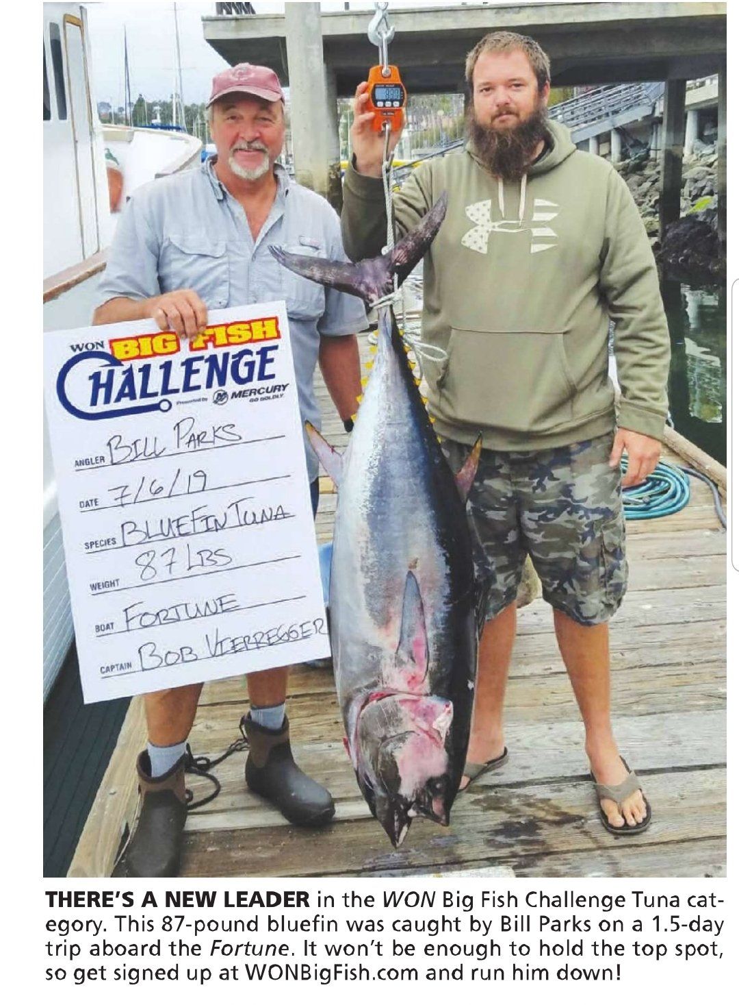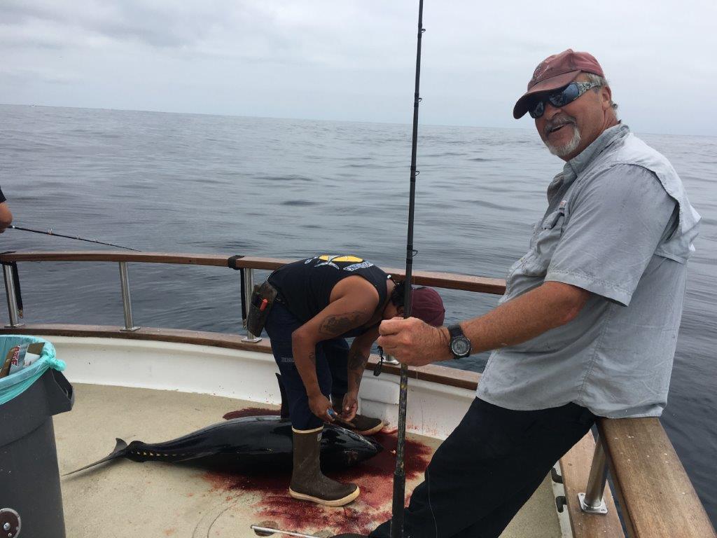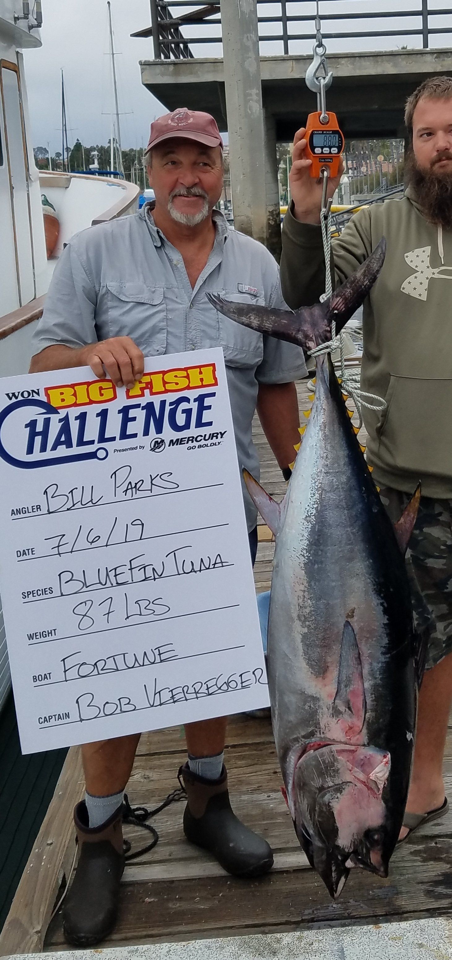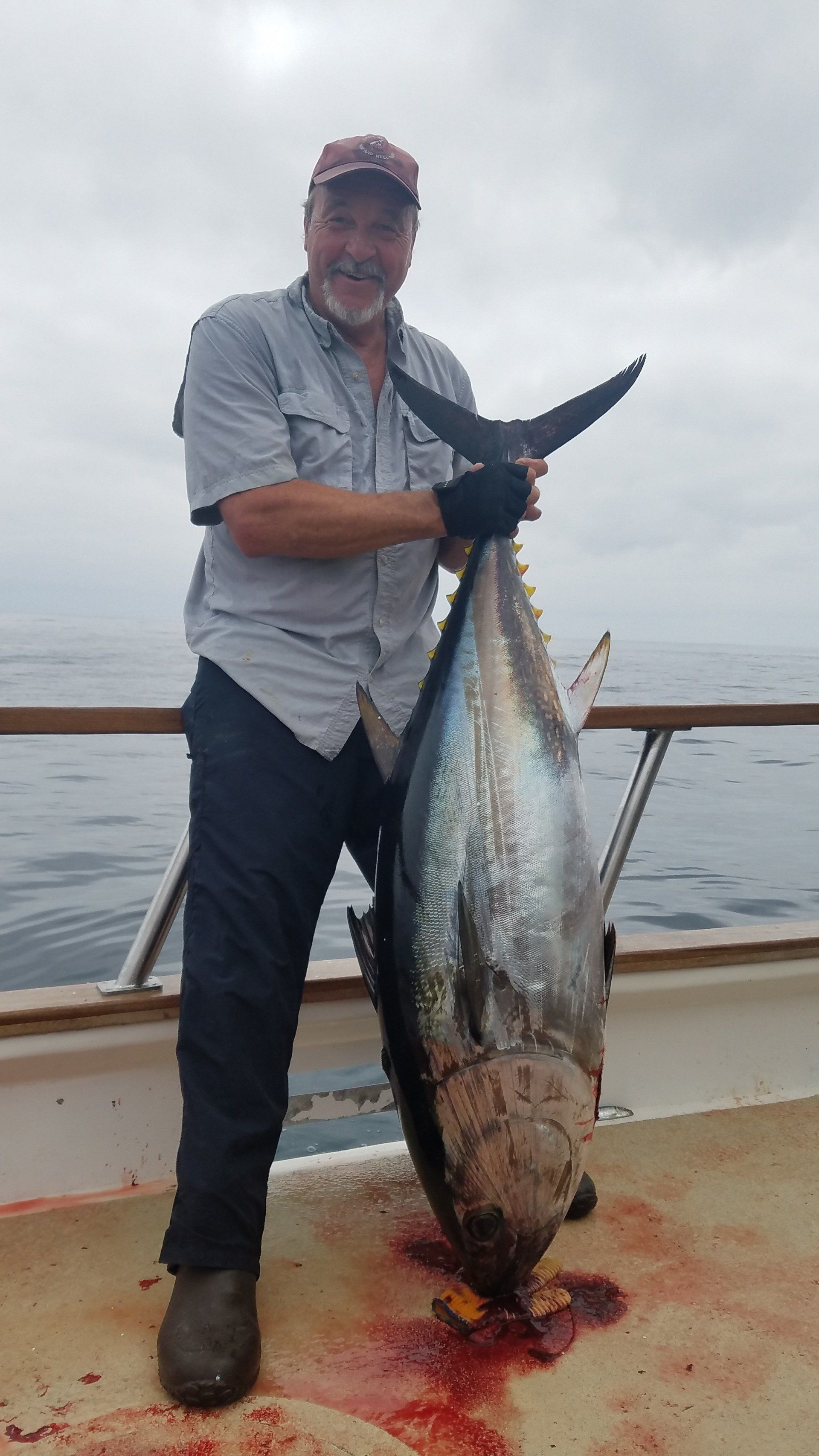 Bill Parks kept his BFT whole for the weigh-in (actually 87.0 lbs – just ½ lb below the formula.) at the dock for the contest . Nick’s BFT was filleted on the way back.