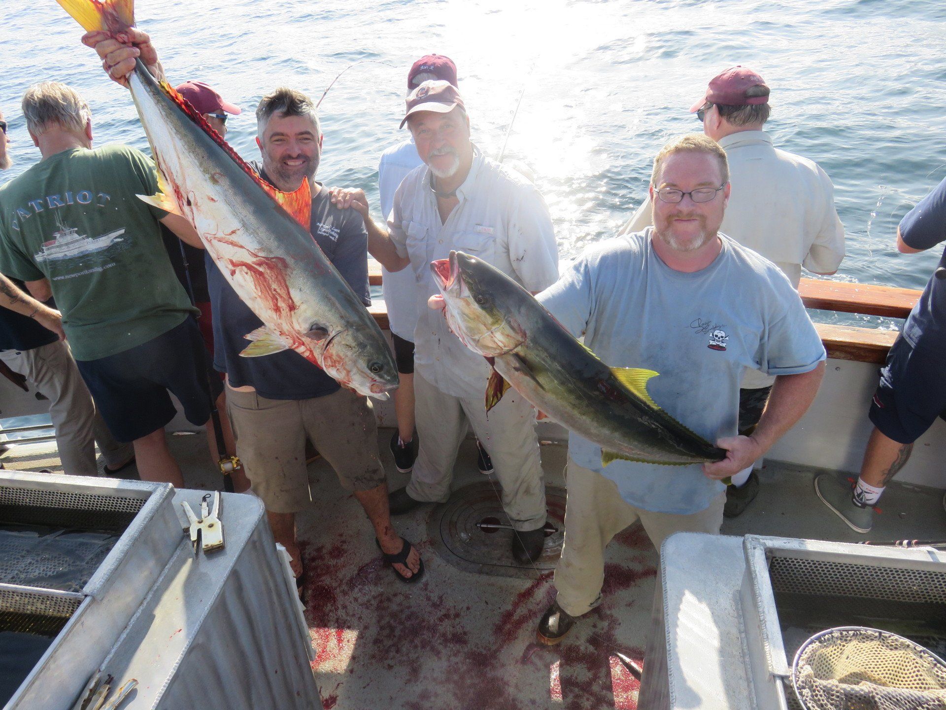 The Yellows started biting the dropper loop with squid, and boy were they some mean fish. They were all around 20-25 lbs, with a few standouts around 30 lbs. By 7:30 am we had about 30 fish on deck, all good grade yellows.