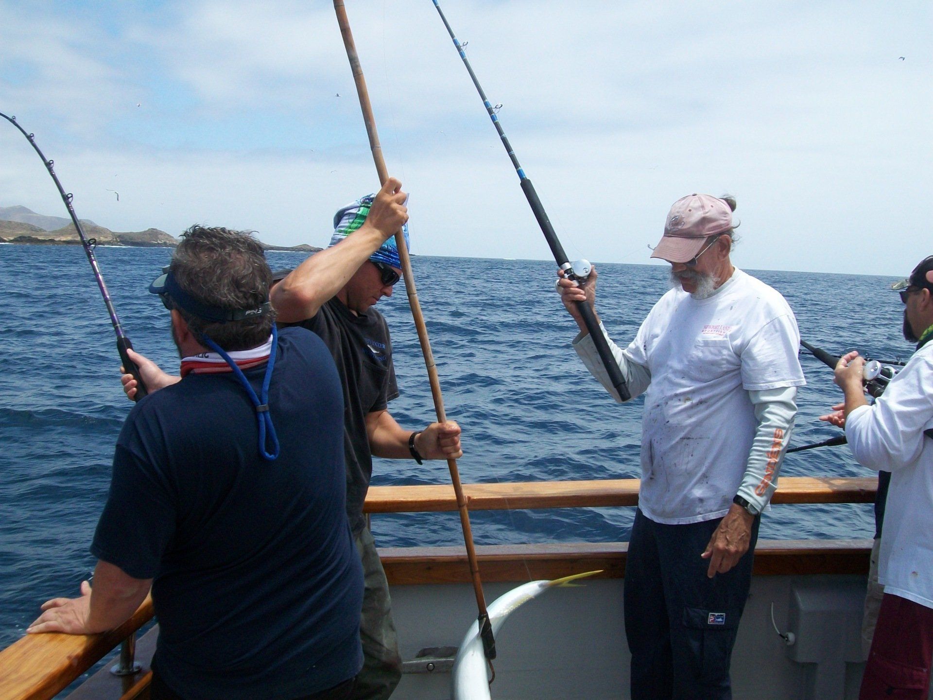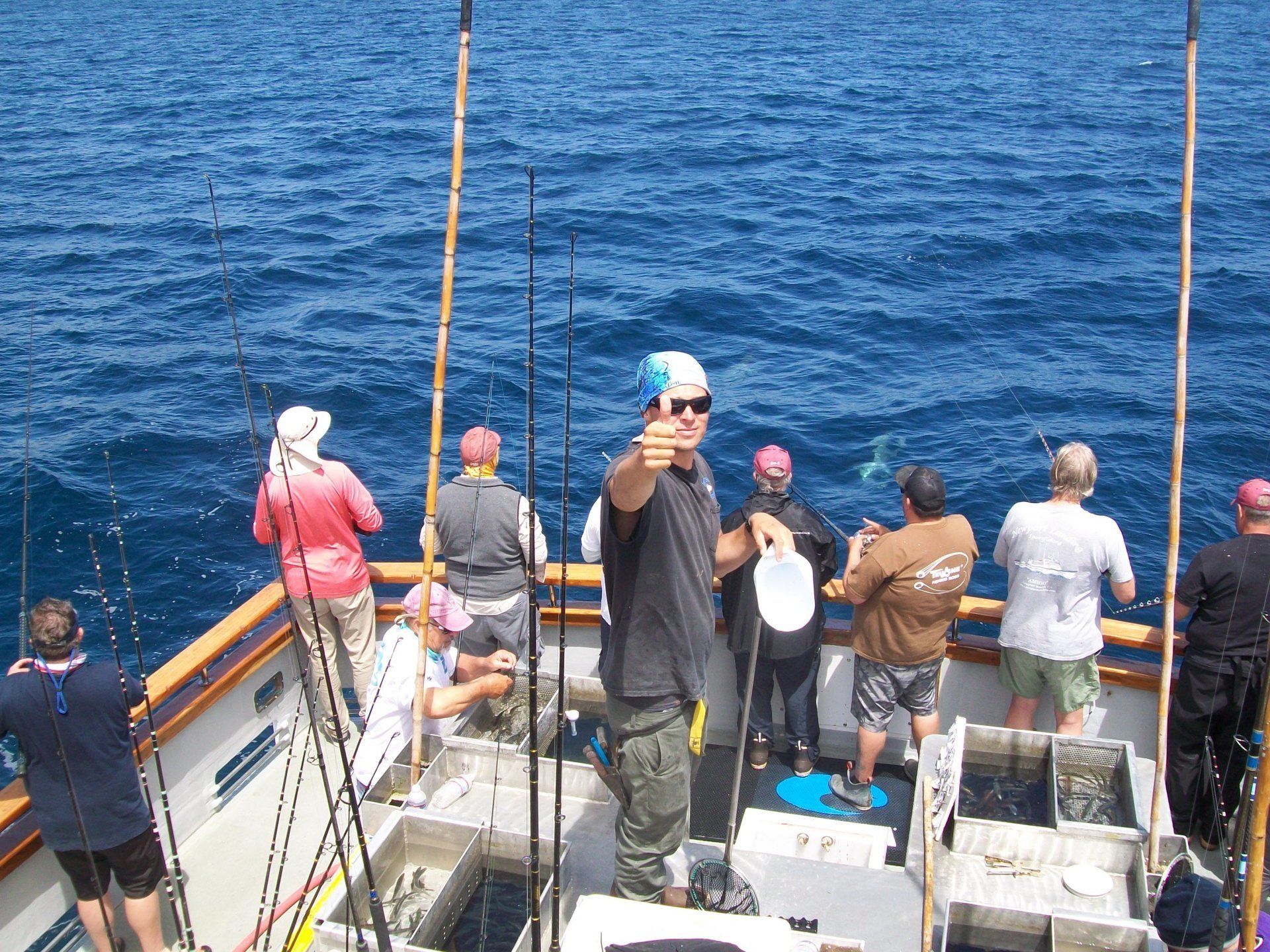 Trip #7: Boat: Thunderbird 2.5 day Departs: Tuesday, September 16th Fishing: September 17th, 18th Returns: September 19th am Thunderbird Crew: Jeff Markland- Captain Steve Raby- 2nd Captain Carmelo in the Galley Jose & Nate on deck The fishing schedule for 2025 has two 2 1/2 day trips and Trip #7 was the second one. Historically the 2 1/2 dayers fill quickly at the Annual Sign-Up Meeting. This was not the case this year as this trip only filled to about half during the Lottery and the rest of the spots were taken by guests. Here are the members who were on the trip: Gary Thompson, Steve Morgan, Mike Barton, Alex Mesko, Mike Higa, Bill Parks, John Lenker, Steve Lenker, Kyle Shimigawa, and Luke Burson (trip scribe). That is 10 members and the other 13 were all guests. The Club owns the following a big thank you for committing guests to this trip because without them this trip would have put a financial burden on the Club of $8,125. And the Club simply does not have those funds so the trip would have been cancelled. A special thank you to Mike Barton with 5 guests, Steve Lenker with 3, Mike Higa with 2, guests, Steve Morgan with 1 guest, Bryan Upcraft with 1 guest, and Luke Burson with 1 guest. And all the guests fit in perfectly and made it a good group to fish, sleep, and eat with for 2 1/2 days. As the trip approached Gary sent out information a week before with information about the trip. At that point the weather looked good and the fish counts were encouraging. As the trip got closer Gary sent out more information with the weather holding plus the Thunderbird getting limits on their weekend 2 1/2 dayer. All were feeling pretty optimistic about two things that had been missing on previous trips……nice weather and good fishing. On the day of departure, the usual members arrived early to ensure that they would board first to secure the tackle spots that are important to them, Others started to drift in throughout the afternoon. All were challenged with parking because of the local Wednesday street sweeping. Some were luckier than others but everyone found a parking spot. And then to our surprise the Thunderbird arrived close to 4 PM and it was obvious why…..very good fishing. To be specific they had back-to-back multi-day trips with limits of BF. And the buzz for all on the dock was pretty strong. They caught the fish at the Cortez, some at night near SCI but most during the day on bait. We asked about the bait and the group did not have good things to say. We quickly put two and two together that the fishing must be pretty good to do that well with poor bait. And another important item……NO STINKING FULL MOON! Jeff indicated we were headed back to Cortez and to save a little time we were going to take the direct course line around the east end of SCI. We’re expecting a flat smooth ride, we quickly learn that our course line had us in the rolley trough. It turned out to be anything but smooth. Our crew for the 2 1/2 trip was Jeff as our Captain, Steve as the 2nd Captain, Carmelo in the galley with Jose and Nat on deck. We have fished with them many times before so we knew we were in good hands for the 2 1/2 days. We stopped to load bait and to our surprise, that bait looked pretty good. The size could have been bigger as it was all medium to small-medium baits but it looked good. That even increased the anticipation of what was to come. As it turned out about 60% turned red while the rest was good bait. For the next two days, you really had to pick through what was in the hand wells to find the good ones. As we rolled into the “Bank” there was a pretty good electrical show to the west from about 3 AM to 5 AM plus some slight rain. And we could see some boats in the distance. We would learn that we would not be alone at Cortez Bank but because of the way the fish were spread out it would not make a difference. Jeff got the anchor down close to the position that they had success on the last trip and it took a little time for the fish to find us……and they did. It was a slow pick for the next 4 or 5 hours. Occasionally we would have 2 for 3 going but most of the time it was one at a time. The conditions were perfect, a strong current in the right direction and some breeze to keep the boat a little crossways to the current. Jeff said the conditions were perfect. As the morning continued there were two ways to get a bite: 1) hot bait close to the boat, or 2) long soak behind the boat. Although detailed records were not kept it seems that the hot baits close to the boat got 4 to 5 times the bites compared to the long soak. This getting bit close to the boat with hot baits was shared with all as it was working great for a few: light line (20#), small hooks (#6 or #8), the best bait in the well, and then give that bait 30 seconds, and if no bite wind in and do it again. And if the bait did not “swim” then cut your losses and wind in to do it again. Some fished that way and were rewarded, others continue to soak their baits. It was a little frustrating that so many were locked into soaking baits when the other method was working so well. It just must be too much work to change baits every 30 seconds and it is easier to soak them behind the boat. The few anglers who changed baits quickly did pretty very well while others did not……that’s fishing. The fish seem to leave us around 2 PM so Jeff decided to go looking in the direction of SCI. By heading back toward SCI we would have a shot at bigger fish at night. We ran all the way back to within 5 miles of SCI and never saw anything on the electronics. When it got dark the effort changed to working the area where the BF had been at night but after about 5 hours of looking without a single mark on the electronics Jeff decided to head back to Cortez to fish the same location we were in that morning. Carmelo prepared an excellent dinner of marinated chicken, basmati rice, and a Greek-style salad. And of course, it was finished 