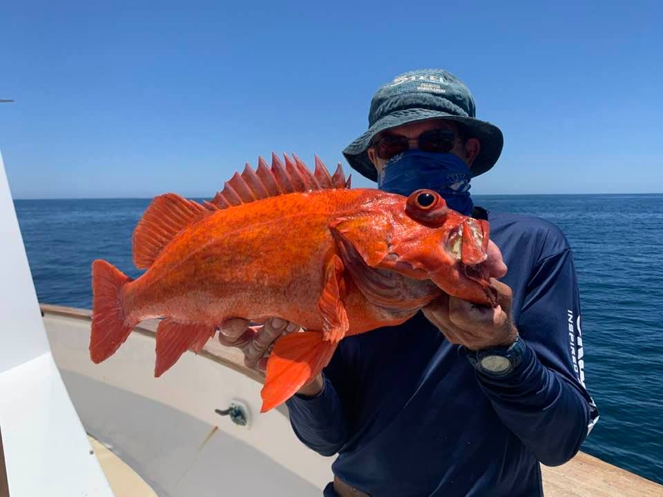 Hayden may have had breakfast on the dock, as he arrived to get in que around 9 a.m. The remaining 17 boys arrived with all the normal BS. The masked excitement was about the previous week of white sea bass fishing which Bruce had been doing real well on.We're told he didn't do so well today.