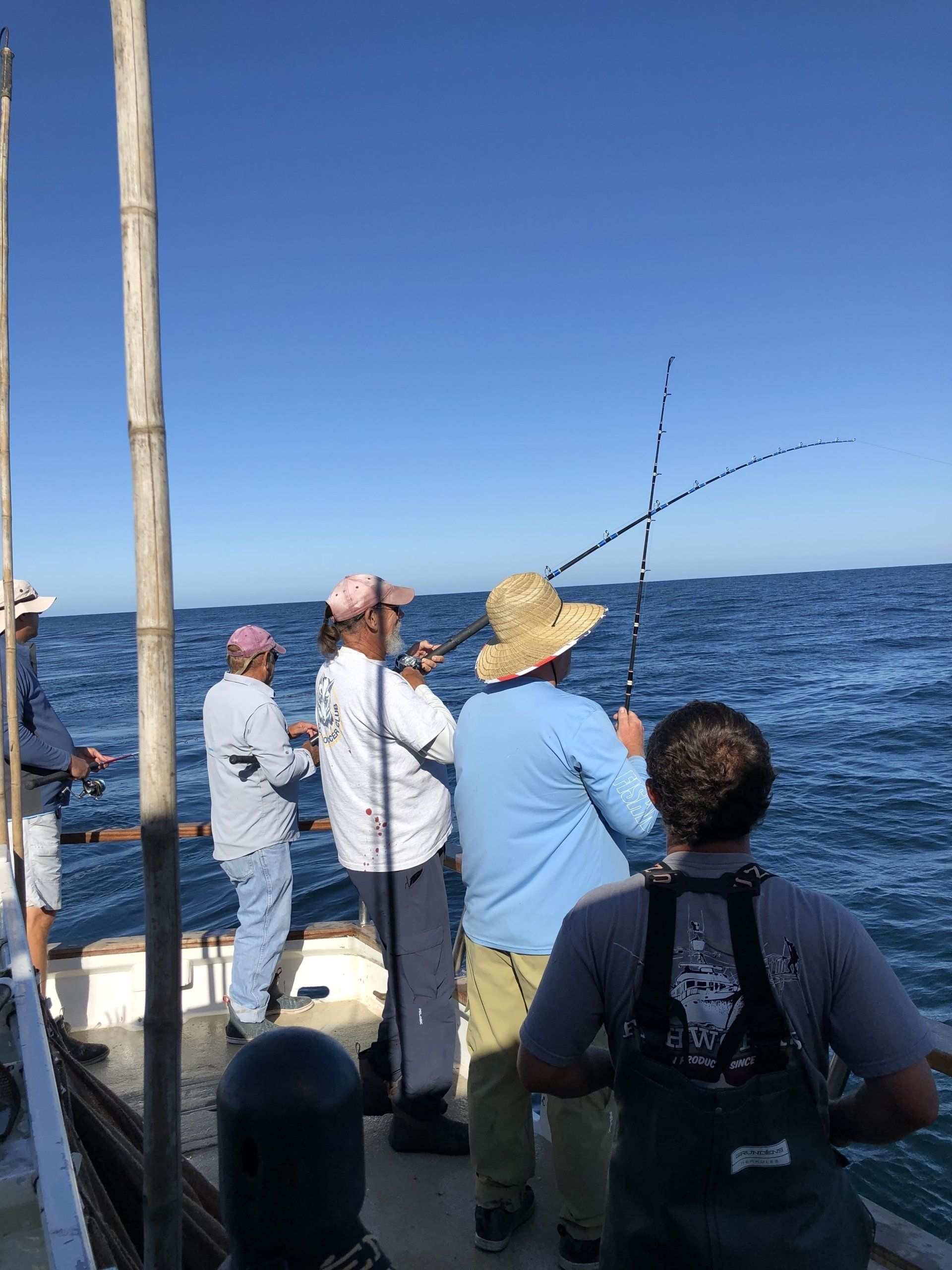 Trip #7: Boat: Thunderbird 2.5 day Departs: Tuesday, September 16th Fishing: September 17th, 18th Returns: September 19th am Thunderbird Crew: Jeff Markland- Captain Steve Raby- 2nd Captain Carmelo in the Galley Jose & Nate on deck The fishing schedule for 2025 has two 2 1/2 day trips and Trip #7 was the second one. Historically the 2 1/2 dayers fill quickly at the Annual Sign-Up Meeting. This was not the case this year as this trip only filled to about half during the Lottery and the rest of the spots were taken by guests. Here are the members who were on the trip: Gary Thompson, Steve Morgan, Mike Barton, Alex Mesko, Mike Higa, Bill Parks, John Lenker, Steve Lenker, Kyle Shimigawa, and Luke Burson (trip scribe). That is 10 members and the other 13 were all guests. The Club owns the following a big thank you for committing guests to this trip because without them this trip would have put a financial burden on the Club of $8,125. And the Club simply does not have those funds so the trip would have been cancelled. A special thank you to Mike Barton with 5 guests, Steve Lenker with 3, Mike Higa with 2, guests, Steve Morgan with 1 guest, Bryan Upcraft with 1 guest, and Luke Burson with 1 guest. And all the guests fit in perfectly and made it a good group to fish, sleep, and eat with for 2 1/2 days. As the trip approached Gary sent out information a week before with information about the trip. At that point the weather looked good and the fish counts were encouraging. As the trip got closer Gary sent out more information with the weather holding plus the Thunderbird getting limits on their weekend 2 1/2 dayer. All were feeling pretty optimistic about two things that had been missing on previous trips……nice weather and good fishing. On the day of departure, the usual members arrived early to ensure that they would board first to secure the tackle spots that are important to them, Others started to drift in throughout the afternoon. All were challenged with parking because of the local Wednesday street sweeping. Some were luckier than others but everyone found a parking spot. And then to our surprise the Thunderbird arrived close to 4 PM and it was obvious why…..very good fishing. To be specific they had back-to-back multi-day trips with limits of BF. And the buzz for all on the dock was pretty strong. They caught the fish at the Cortez, some at night near SCI but most during the day on bait. We asked about the bait and the group did not have good things to say. We quickly put two and two together that the fishing must be pretty good to do that well with poor bait. And another important item……NO STINKING FULL MOON! Jeff indicated we were headed back to Cortez and to save a little time we were going to take the direct course line around the east end of SCI. We’re expecting a flat smooth ride, we quickly learn that our course line had us in the rolley trough. It turned out to be anything but smooth. Our crew for the 2 1/2 trip was Jeff as our Captain, Steve as the 2nd Captain, Carmelo in the galley with Jose and Nat on deck. We have fished with them many times before so we knew we were in good hands for the 2 1/2 days. We stopped to load bait and to our surprise, that bait looked pretty good. The size could have been bigger as it was all medium to small-medium baits but it looked good. That even increased the anticipation of what was to come. As it turned out about 60% turned red while the rest was good bait. For the next two days, you really had to pick through what was in the hand wells to find the good ones. As we rolled into the “Bank” there was a pretty good electrical show to the west from about 3 AM to 5 AM plus some slight rain. And we could see some boats in the distance. We would learn that we would not be alone at Cortez Bank but because of the way the fish were spread out it would not make a difference. Jeff got the anchor down close to the position that they had success on the last trip and it took a little time for the fish to find us……and they did. It was a slow pick for the next 4 or 5 hours. Occasionally we would have 2 for 3 going but most of the time it was one at a time. The conditions were perfect, a strong current in the right direction and some breeze to keep the boat a little crossways to the current. Jeff said the conditions were perfect. As the morning continued there were two ways to get a bite: 1) hot bait close to the boat, or 2) long soak behind the boat. Although detailed records were not kept it seems that the hot baits close to the boat got 4 to 5 times the bites compared to the long soak. This getting bit close to the boat with hot baits was shared with all as it was working great for a few: light line (20#), small hooks (#6 or #8), the best bait in the well, and then give that bait 30 seconds, and if no bite wind in and do it again. And if the bait did not “swim” then cut your losses and wind in to do it again. Some fished that way and were rewarded, others continue to soak their baits. It was a little frustrating that so many were locked into soaking baits when the other method was working so well. It just must be too much work to change baits every 30 seconds and it is easier to soak them behind the boat. The few anglers who changed baits quickly did pretty very well while others did not……that’s fishing. The fish seem to leave us around 2 PM so Jeff decided to go looking in the direction of SCI. By heading back toward SCI we would have a shot at bigger fish at night. We ran all the way back to within 5 miles of SCI and never saw anything on the electronics. When it got dark the effort changed to working the area where the BF had been at night but after about 5 hours of looking without a single mark on the electronics Jeff decided to head back to Cortez to fish the same location we were in that morning. Carmelo prepared an excellent dinner of marinated chicken, basmati rice, and a Greek-style salad. And of course, it was finished 