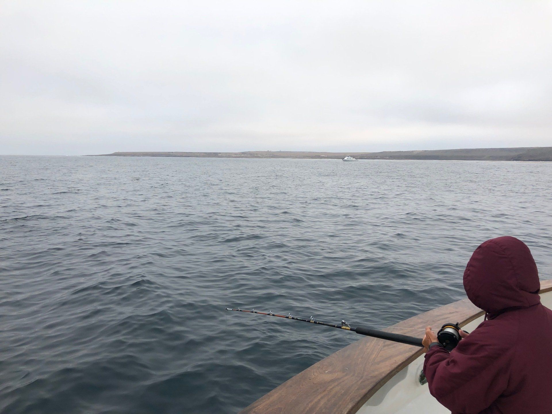 The fishing had started early, the first bite by yours truly was a fairly good size Sea Lion at the bottom on a dropper loop with live squid (did not count for the jackpot & was released).