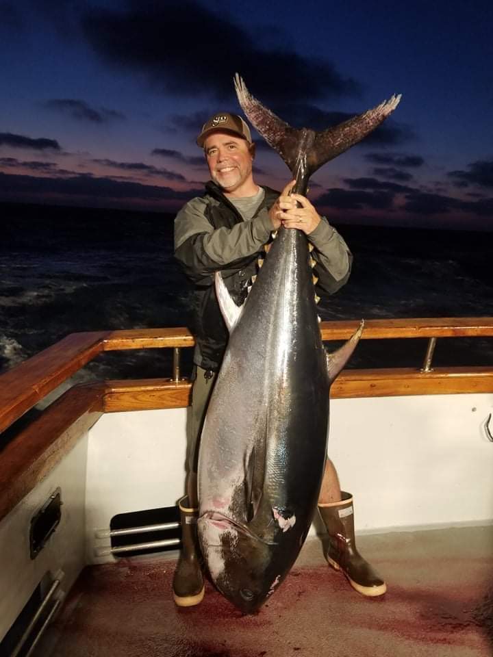 Jeff pointed the boat towards Newport Harbor around 7:30 and unlike the first night, our overnight cruise was smooth and comfortable. We arrived at the dock around 4:30 in the morning. The members agreed that any fish caught on the kite would be shared amongst the group. Everyone went home with fresh BFT to enjoy.
