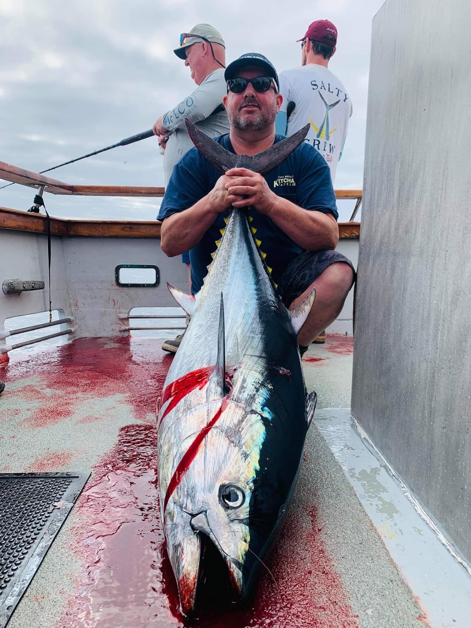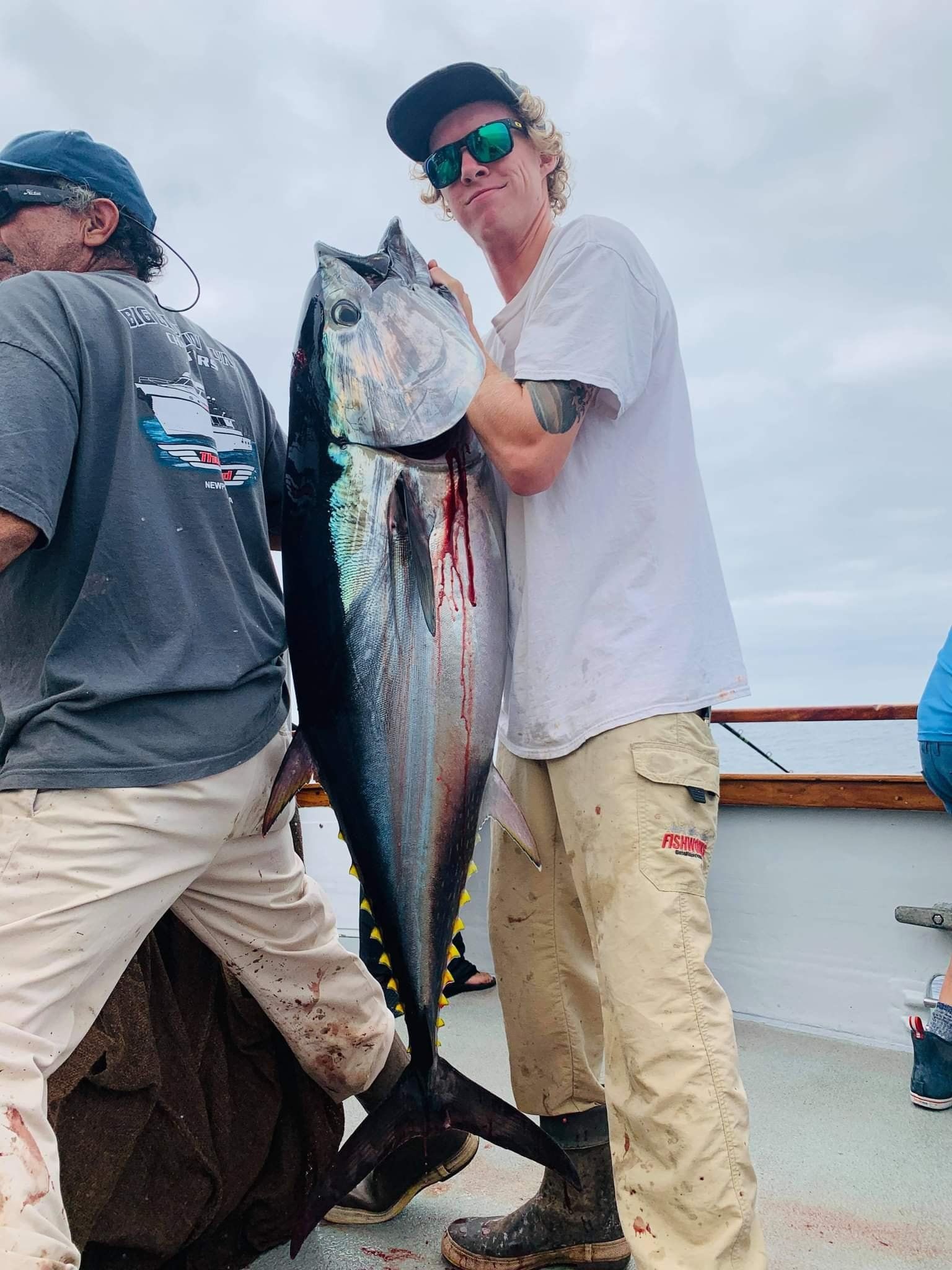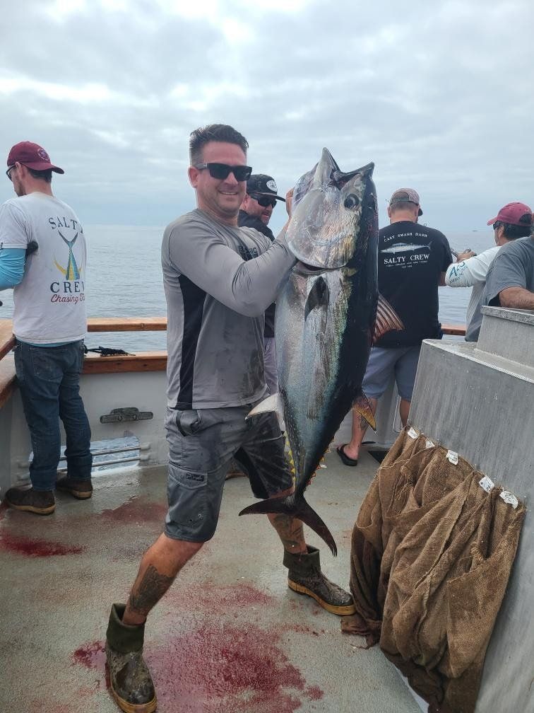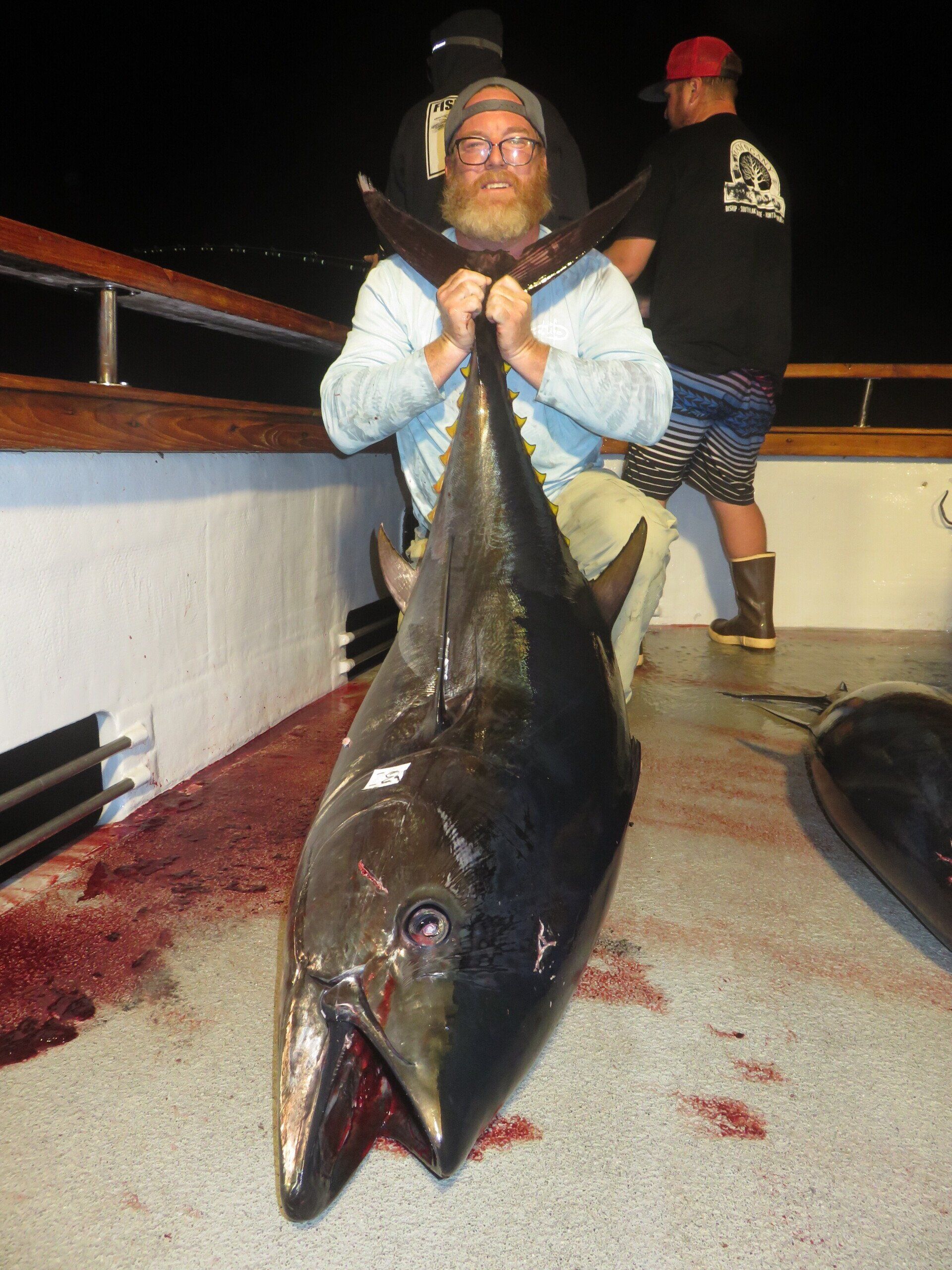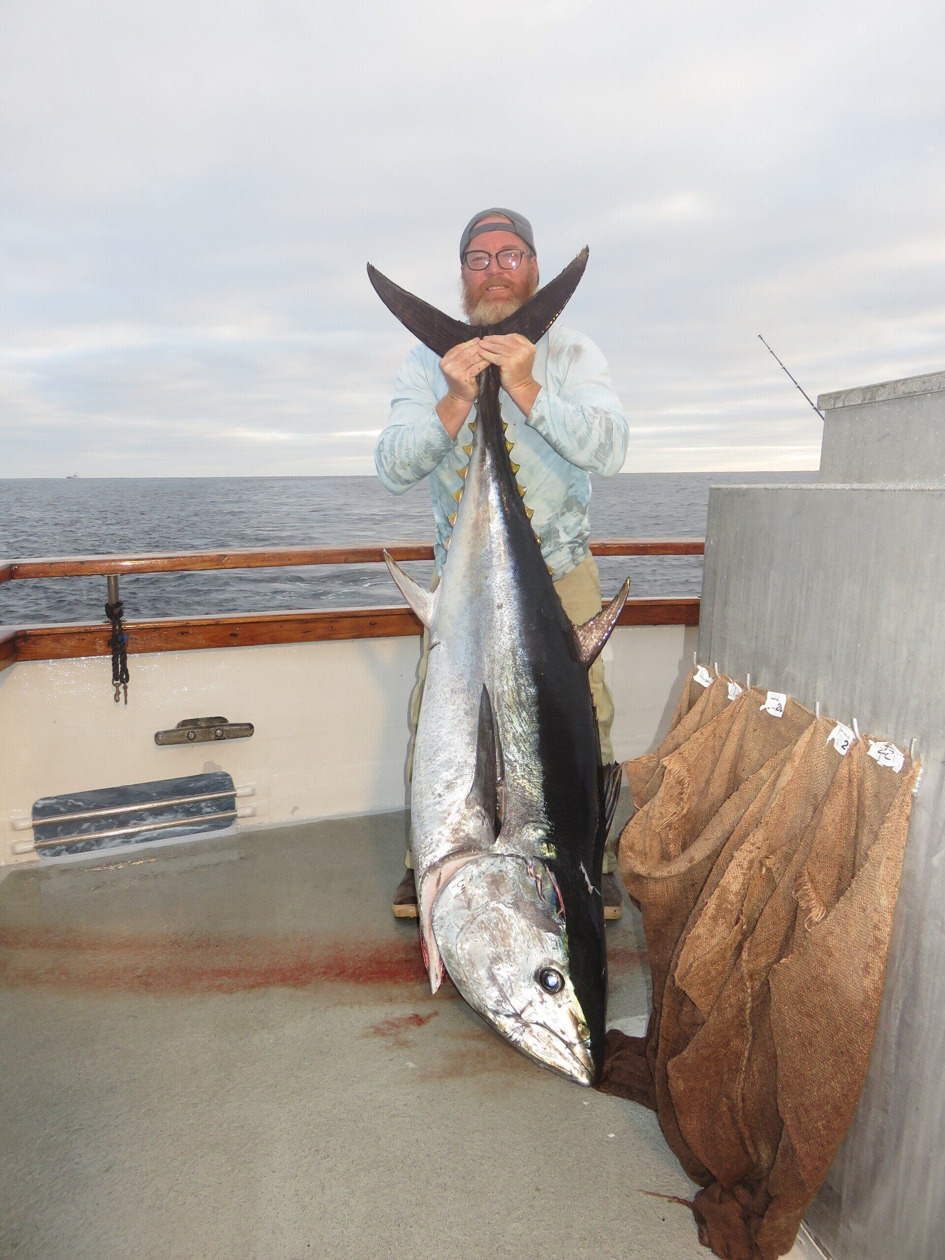 get bent and pulls in and lands a 40-50lb beautiful Bluefin Tuna. 25lb pound line. Chris Ramsey then gets